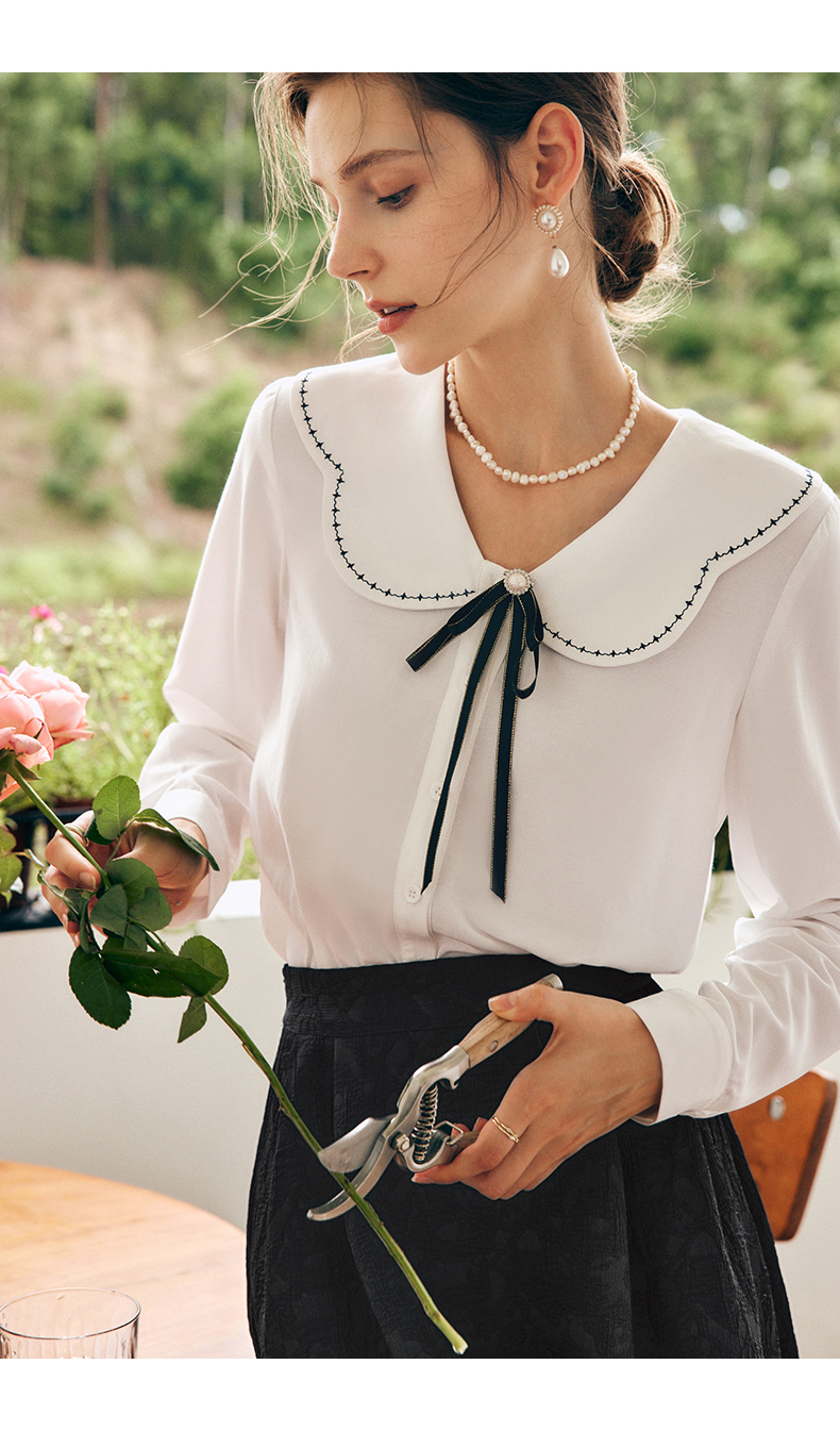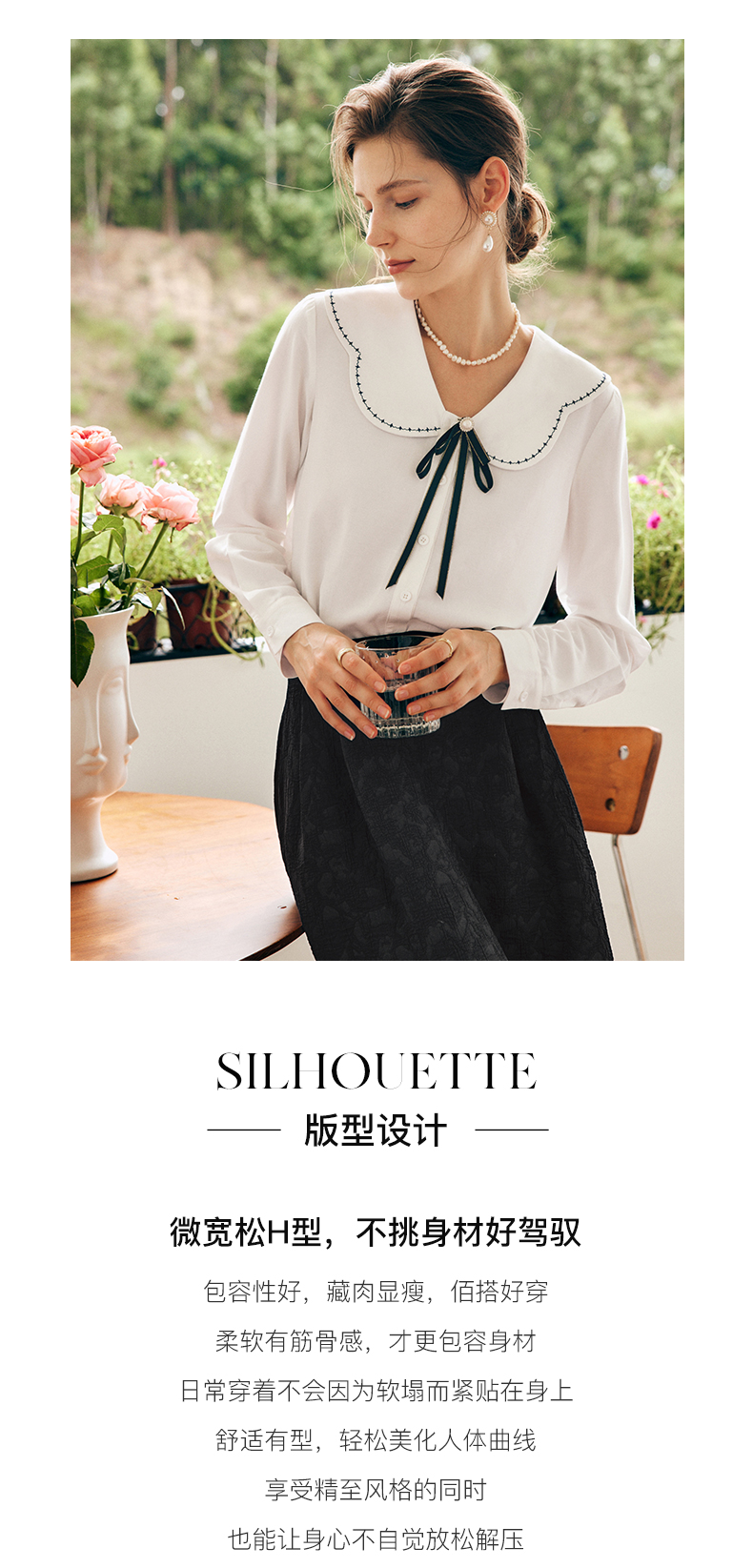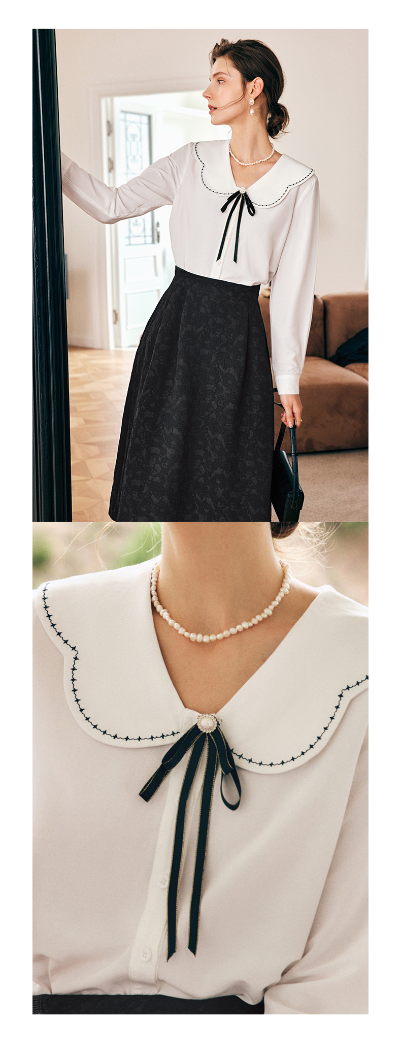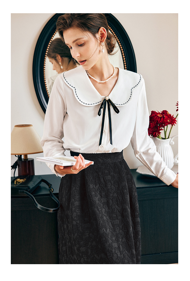 OLrain欧芮儿法式白色雪纺蕾丝衫女秋冬2022年新款甜美娃娃领小衫