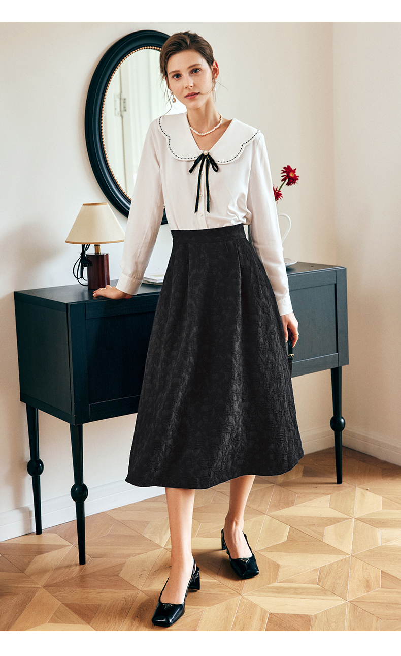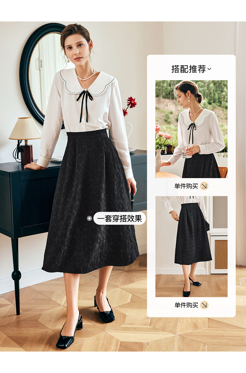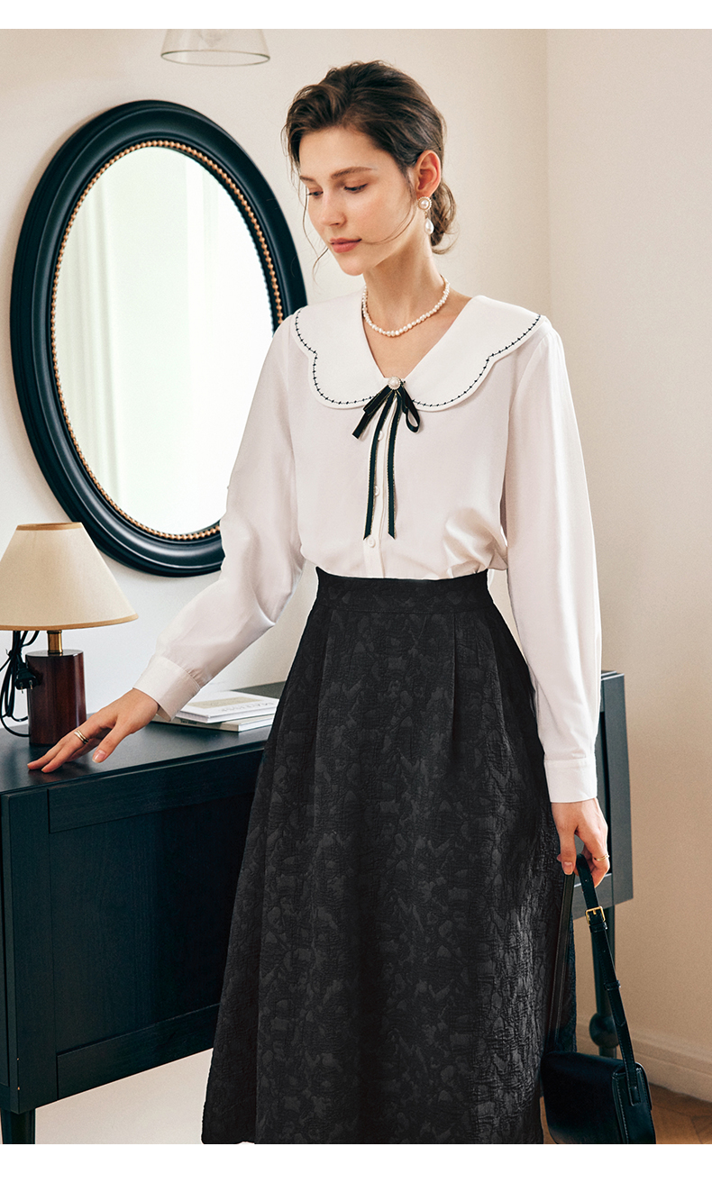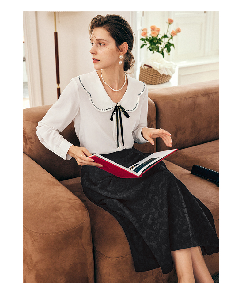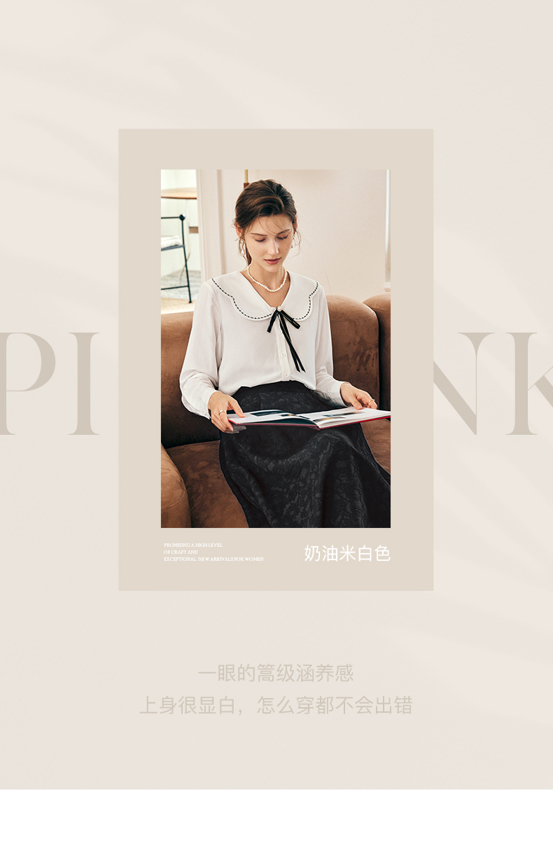 OLrain欧芮儿法式白色雪纺蕾丝衫女秋冬2022年新款甜美娃娃领小衫