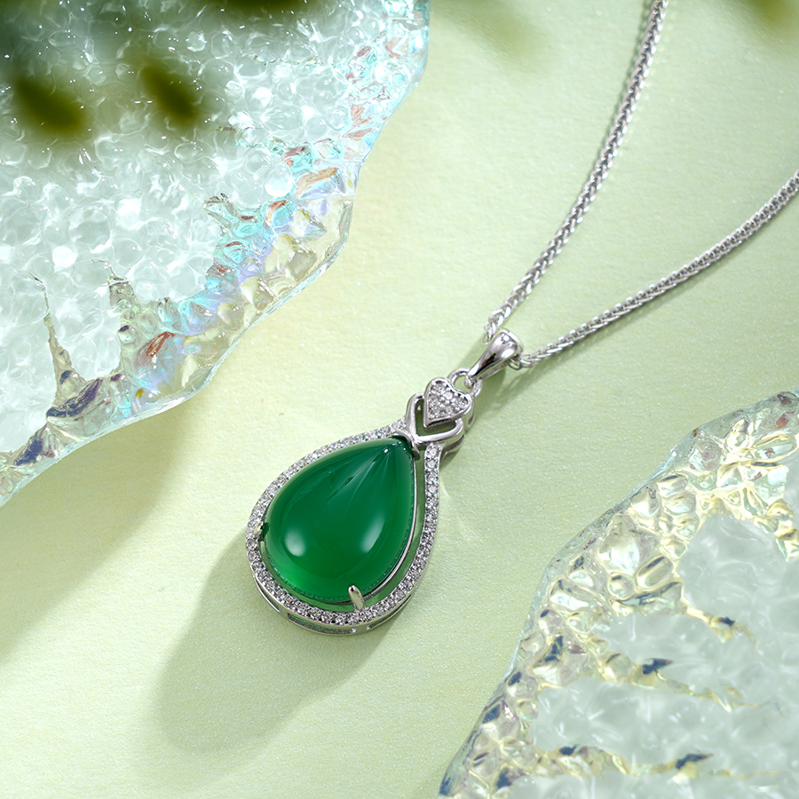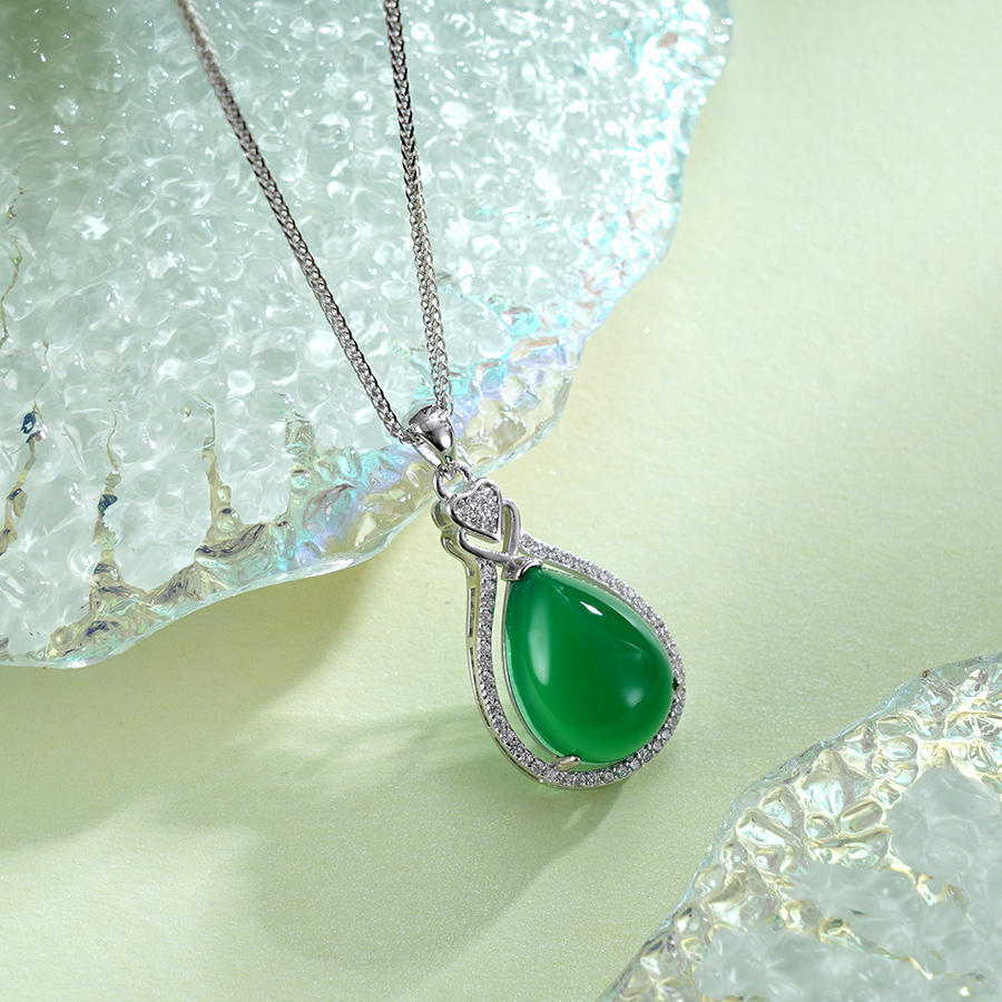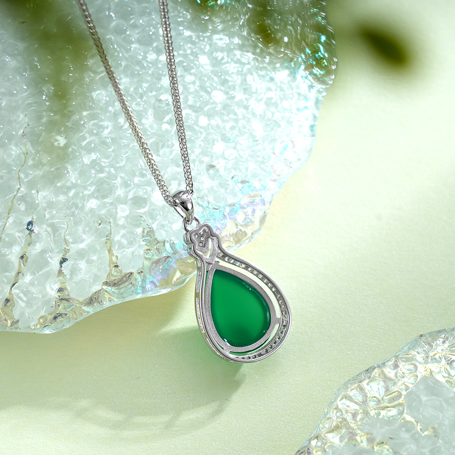子佩集S925银【春色满园】套链【DZ016869】纯银绿玉髓水滴项链2408