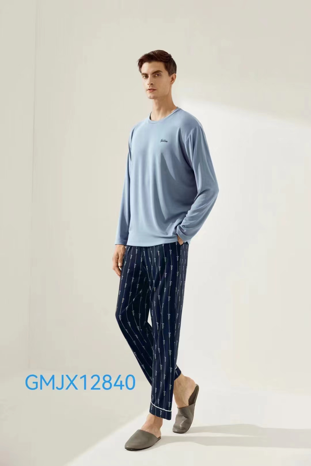 4F 金利来 印花圆领长袖长裤男套装