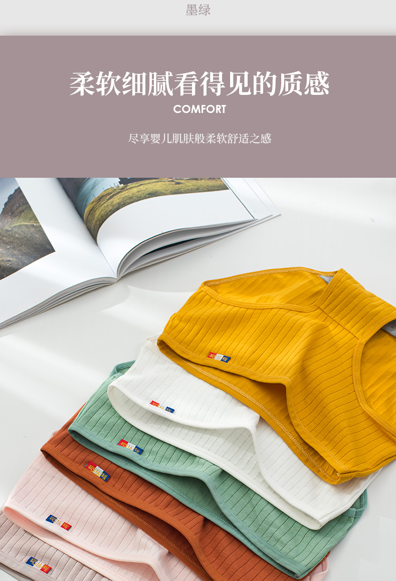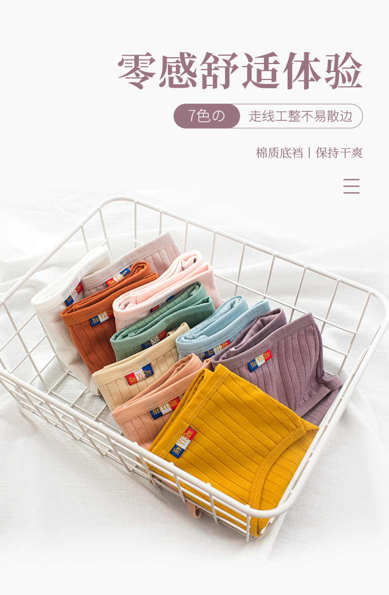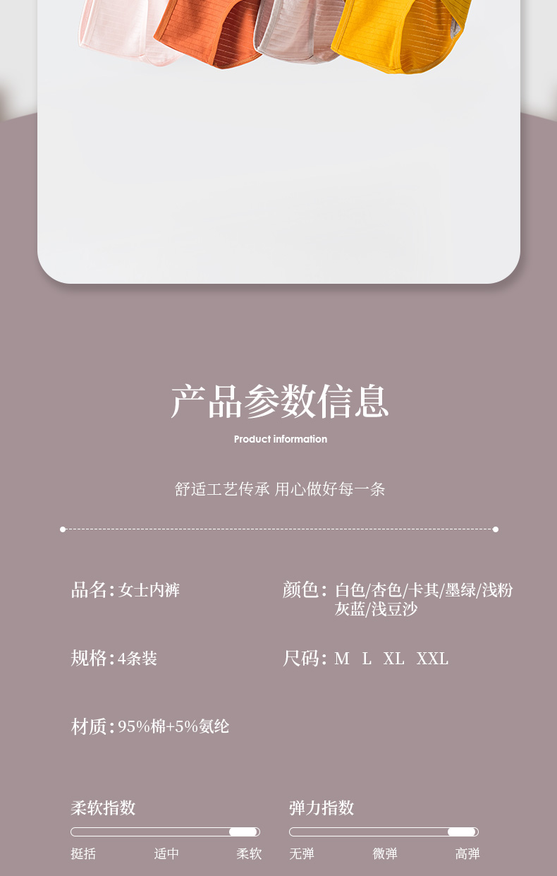 洁丽雅四条装中腰纯棉女士内裤舒适亲肤双层内裆简约色系三角裤女