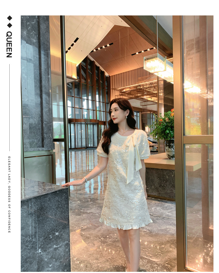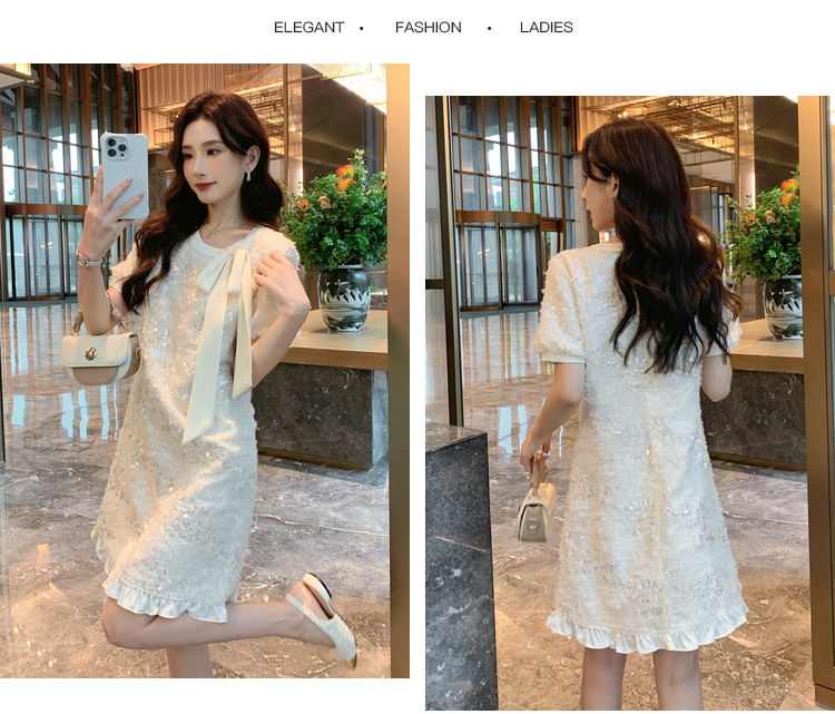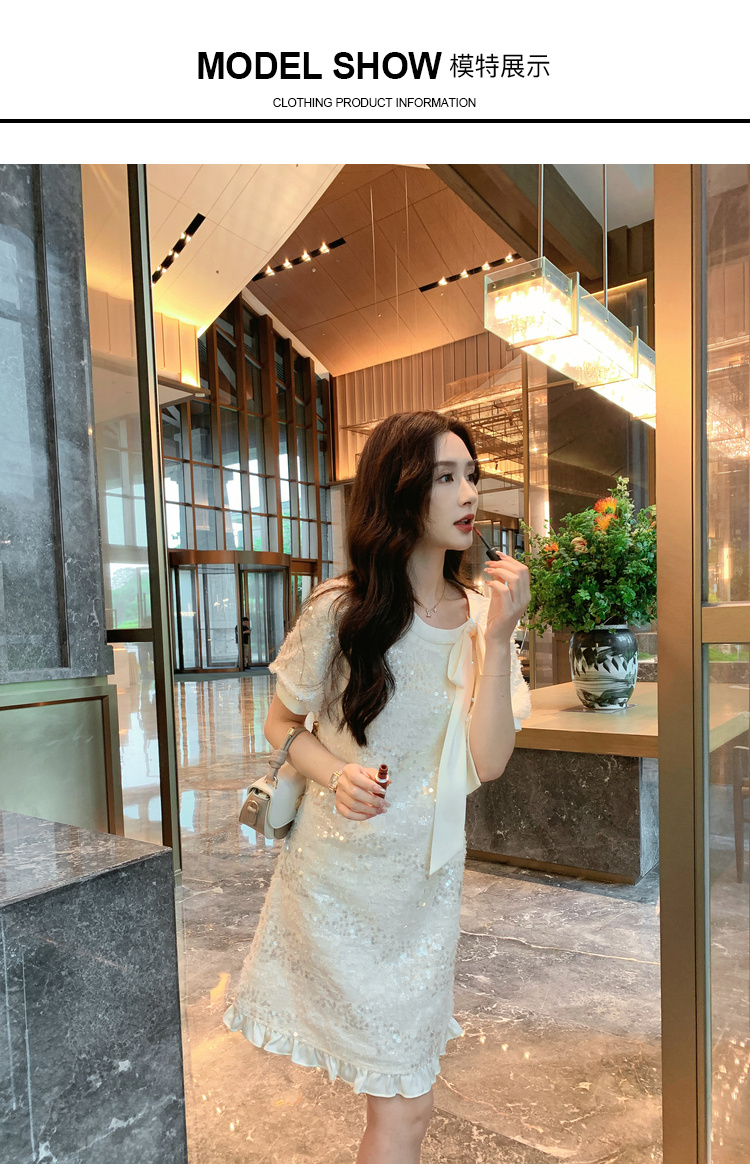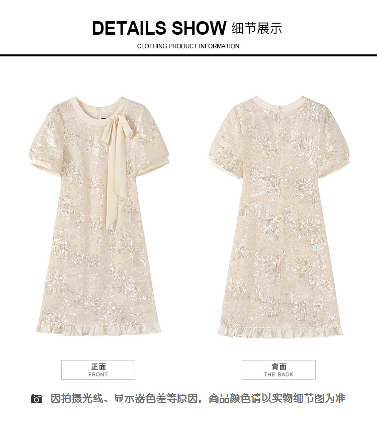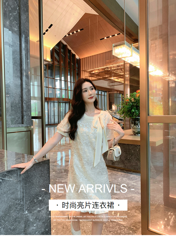 [奢姿轻奢系列]大码女装2025夏季亮片减龄连衣裙胖妹妹蝴蝶结裙子8942890085