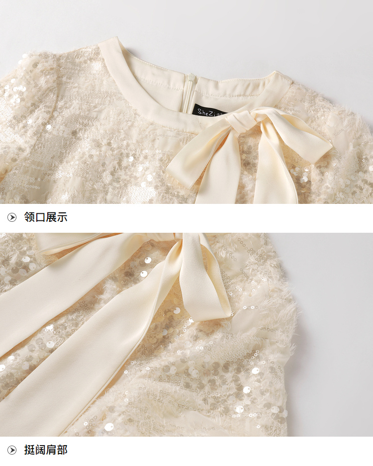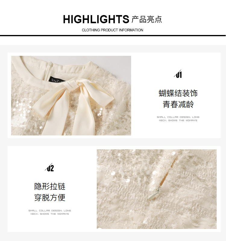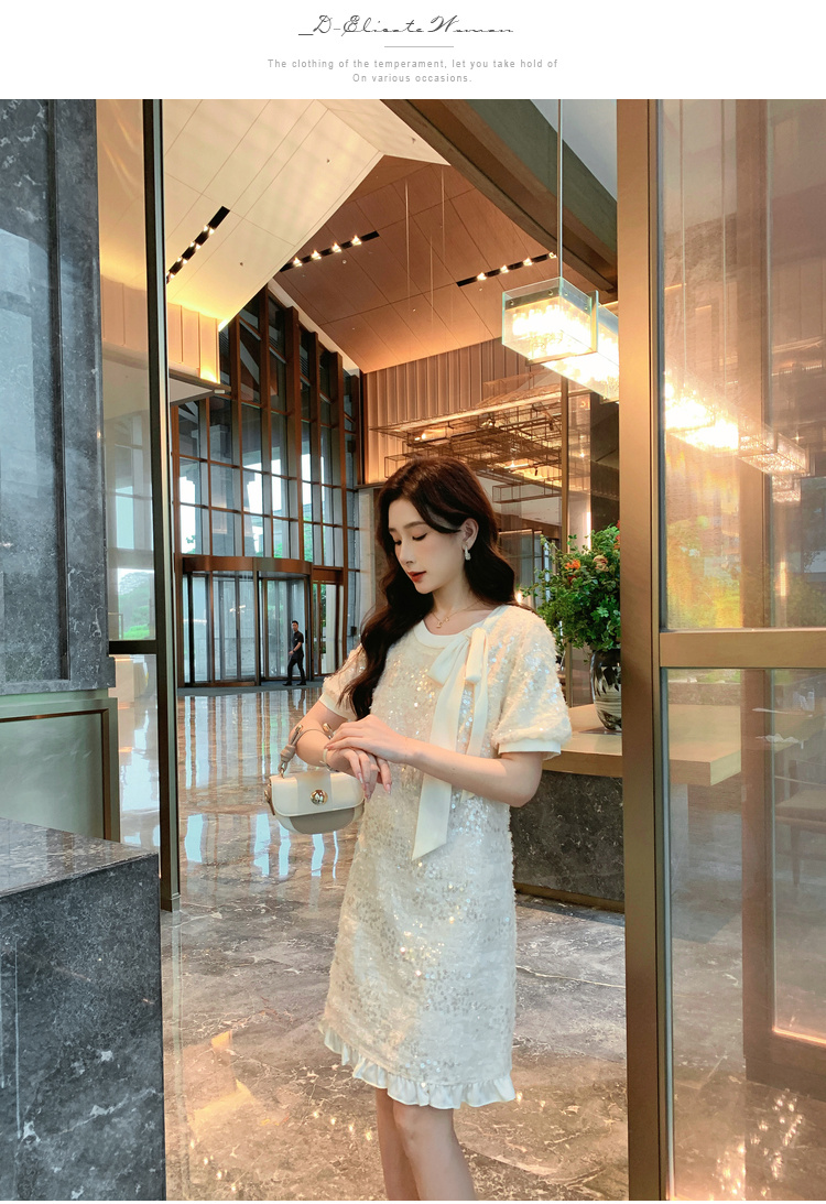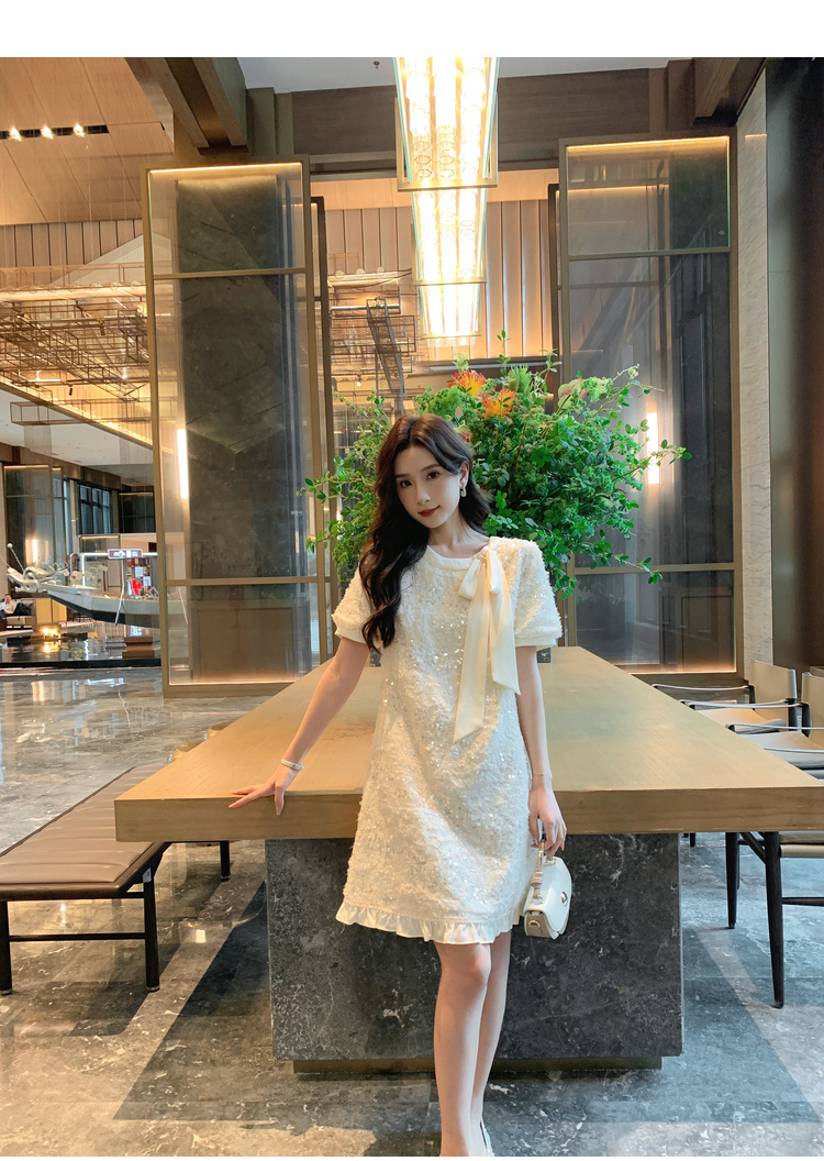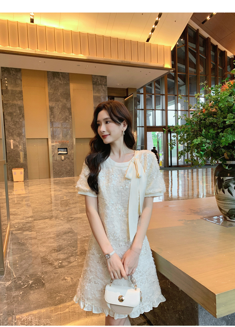[奢姿轻奢系列]大码女装2025夏季亮片减龄连衣裙胖妹妹蝴蝶结裙子8942890085