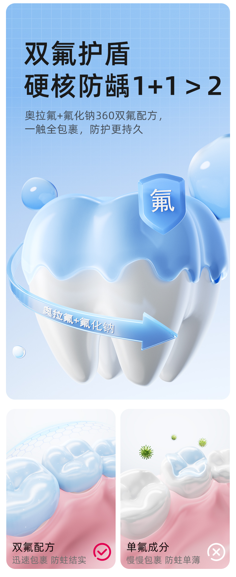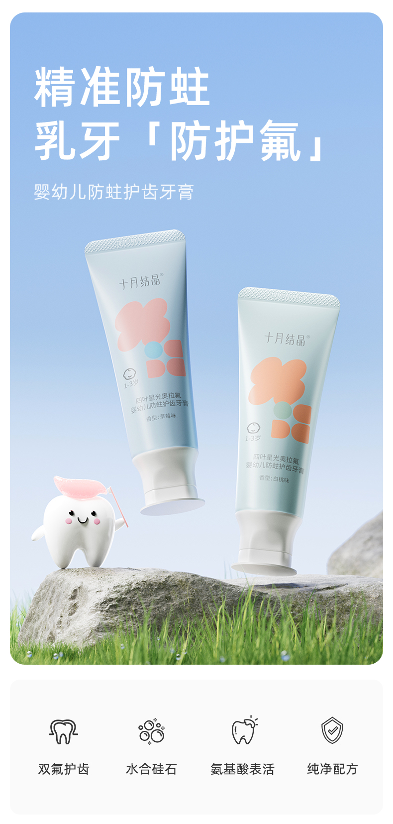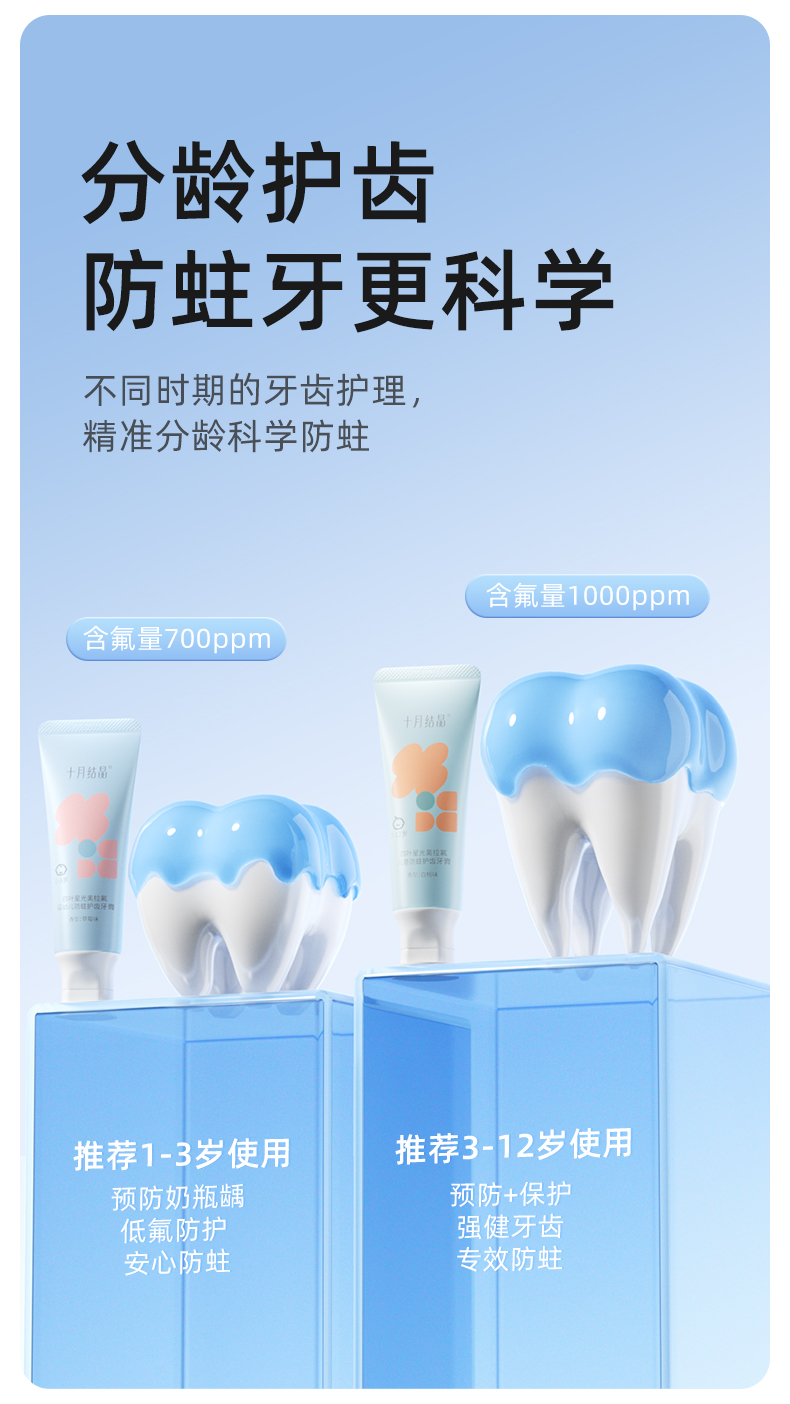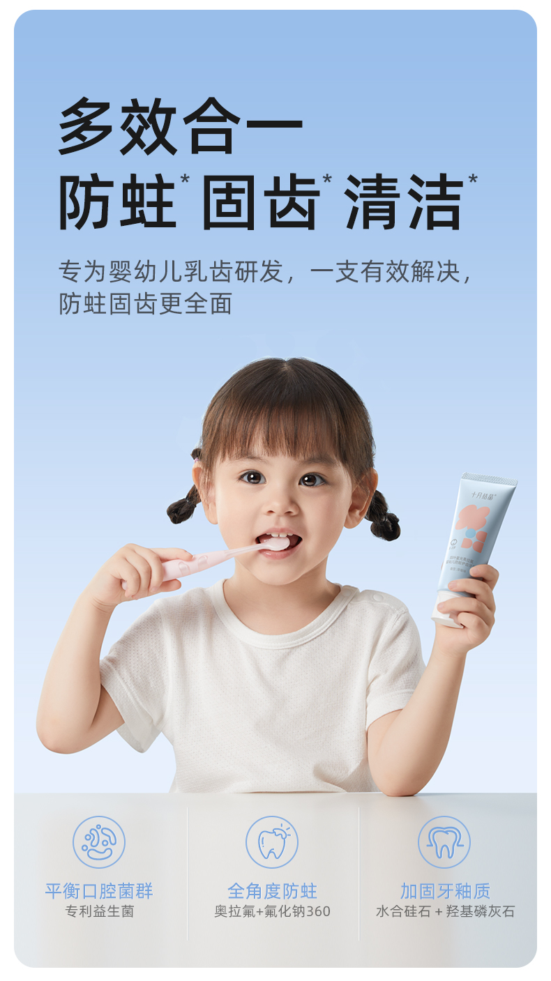 婴儿1-3岁果味不可吞咽奥拉氟换牙期防蛀牙牙膏3只装