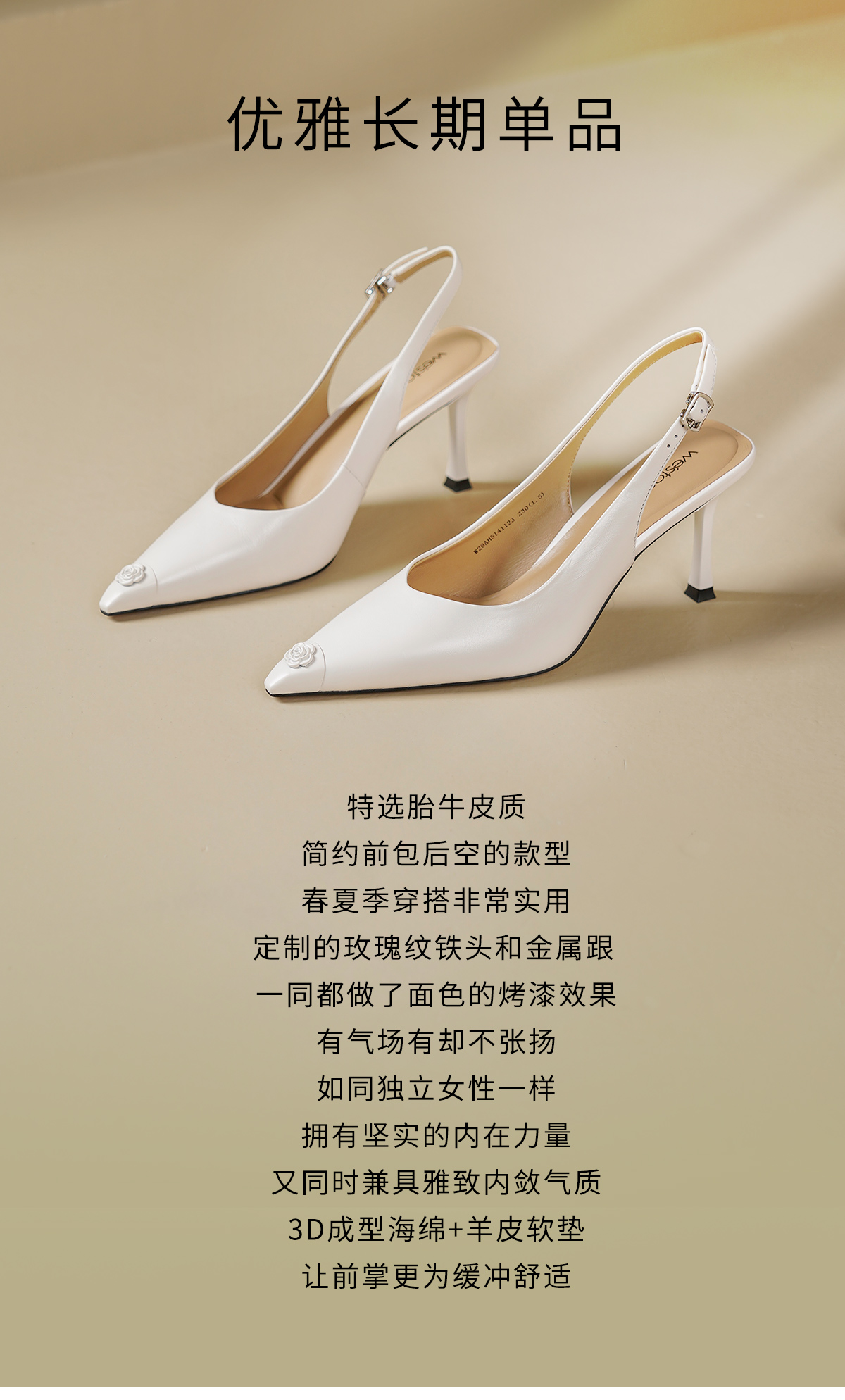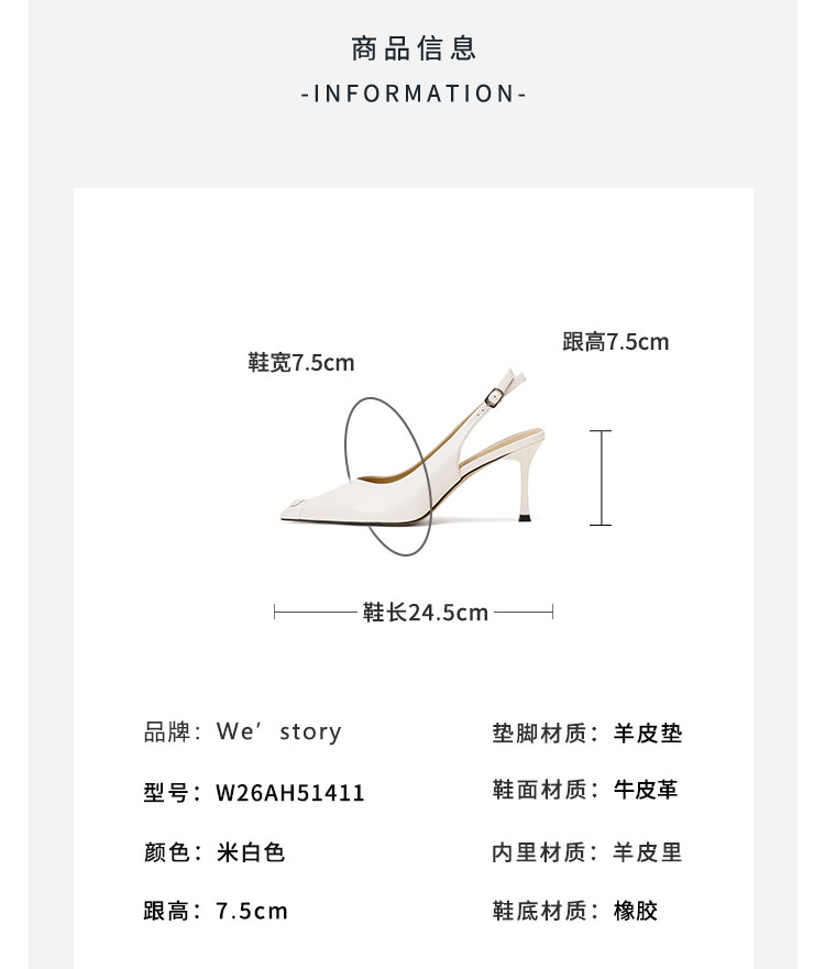 Westory2026年夏季胎牛高跟小方头后空鞋通勤百搭空凉鞋W26AH51411