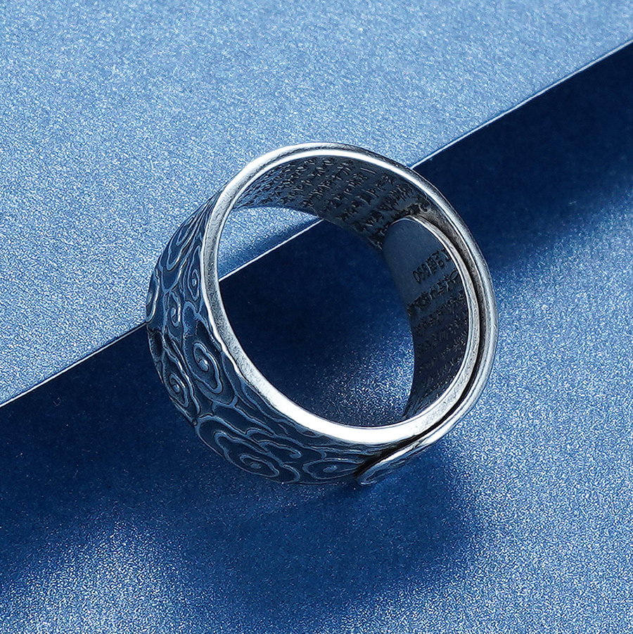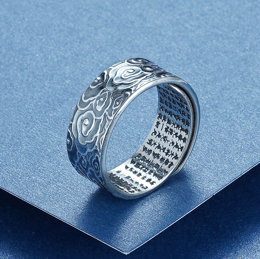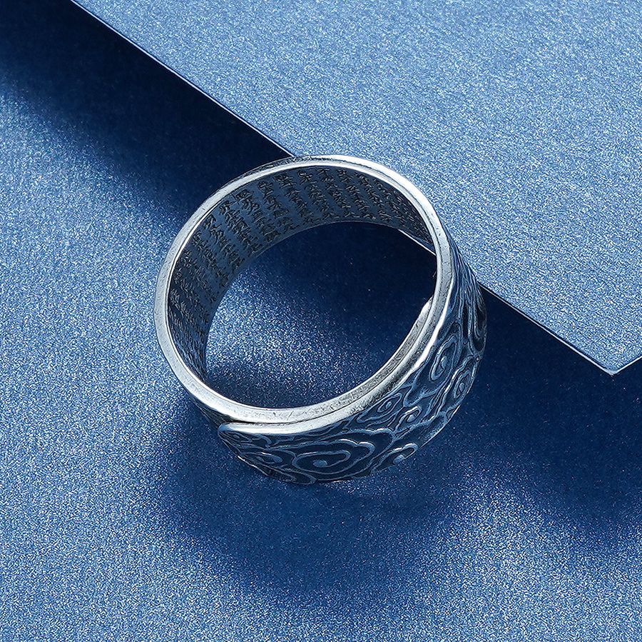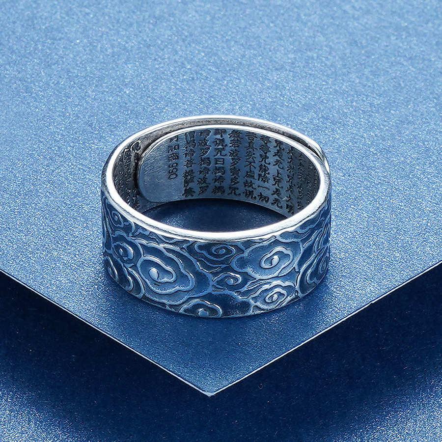 【寓意】:心经保平安,祥云寓喜庆,戒指融合两种元素,以錾刻工艺生动呈现。整体复古祥和,尽显高级品味。