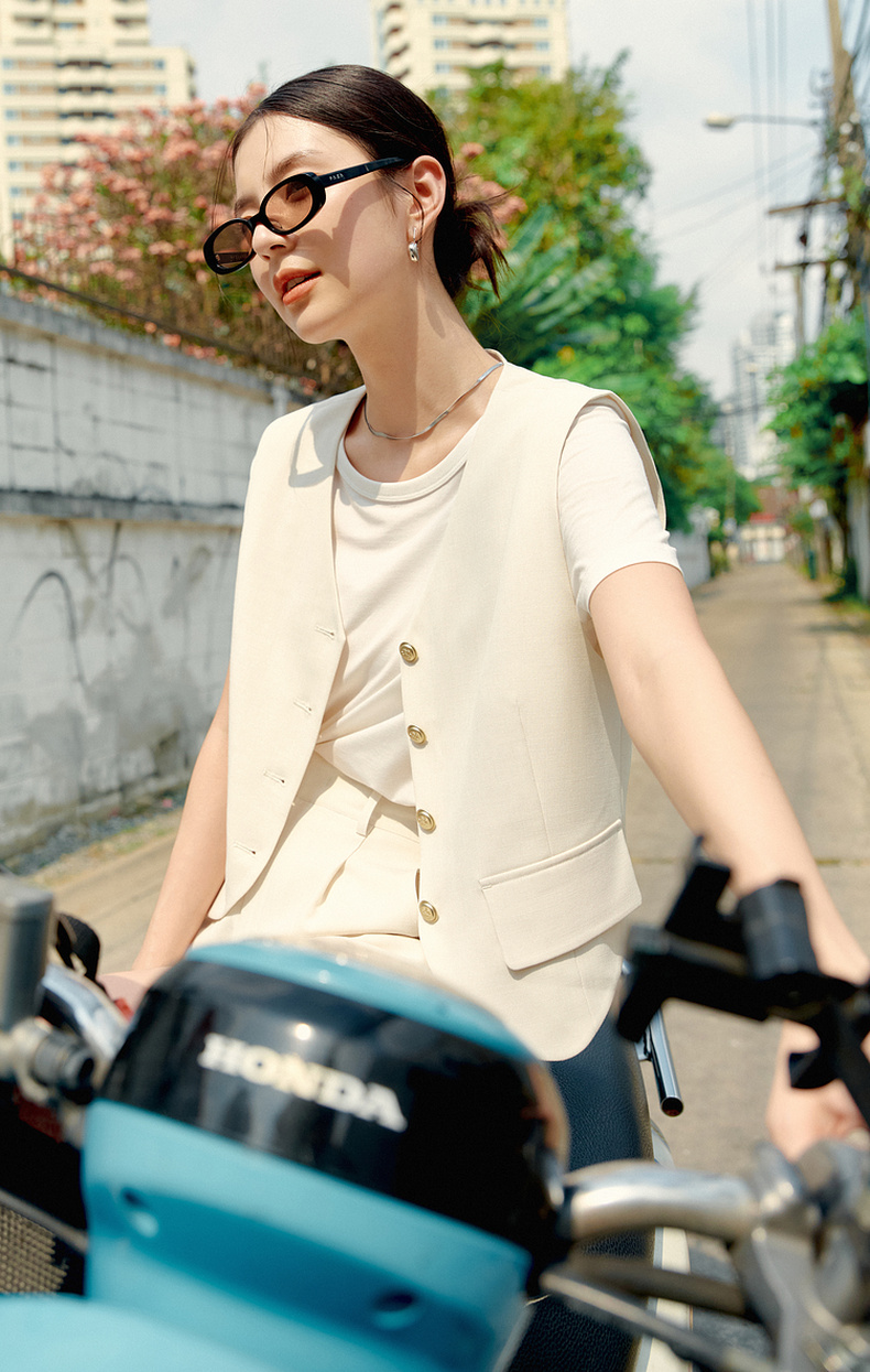 【严选】诗凡黎春精致金属扣装饰马甲SF3410161