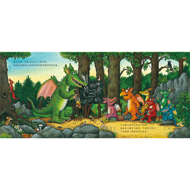 《超级虫子超级强》是聪明豆绘本•珍藏版:《咕噜牛》作者经典绘本系列中的一部经典作品。讲述了超级强的超级虫子,他擅长变身又十分热心,凭借自身特点,变幻出各种令人称奇的造型去帮助大家,是大家的超级英雄。但是超级英雄也有需要帮助的时候,面对强大的坏巫师蜥蜴,那些曾经受到超级虫子帮助过的小动物们并没有退缩,而是齐心协力地智胜坏巫师,救出超了级虫子!整部绘本继承了朱莉娅•唐纳森独特的韵律风格,特别适合朗读出来,幽默的情节和阿克塞尔•舍夫勒诙谐的话绘图,让这部作品充满灵气和趣味,同时也非常适合在课堂上和孩子一起分享阅读,提升孩子对语言韵律的感知,帮助孩子培养乐于助人的品质和温暖幽默的性格。 《小恐龙佐格上学记》:在森林学校里,小恐龙们都努力学习本领,来实现自己的理想——长大后,当个飞行专家,当个吼叫冠军,或是能喷出熊熊烈火,抓最多的公主……小恐龙佐格学习最用功,可他想做的,和大家都不一样:头上贴着创可贴、嘴里含着薄荷糖、翅膀尖上的白纱布……小恐龙佐格的理想究竟是什么呢?