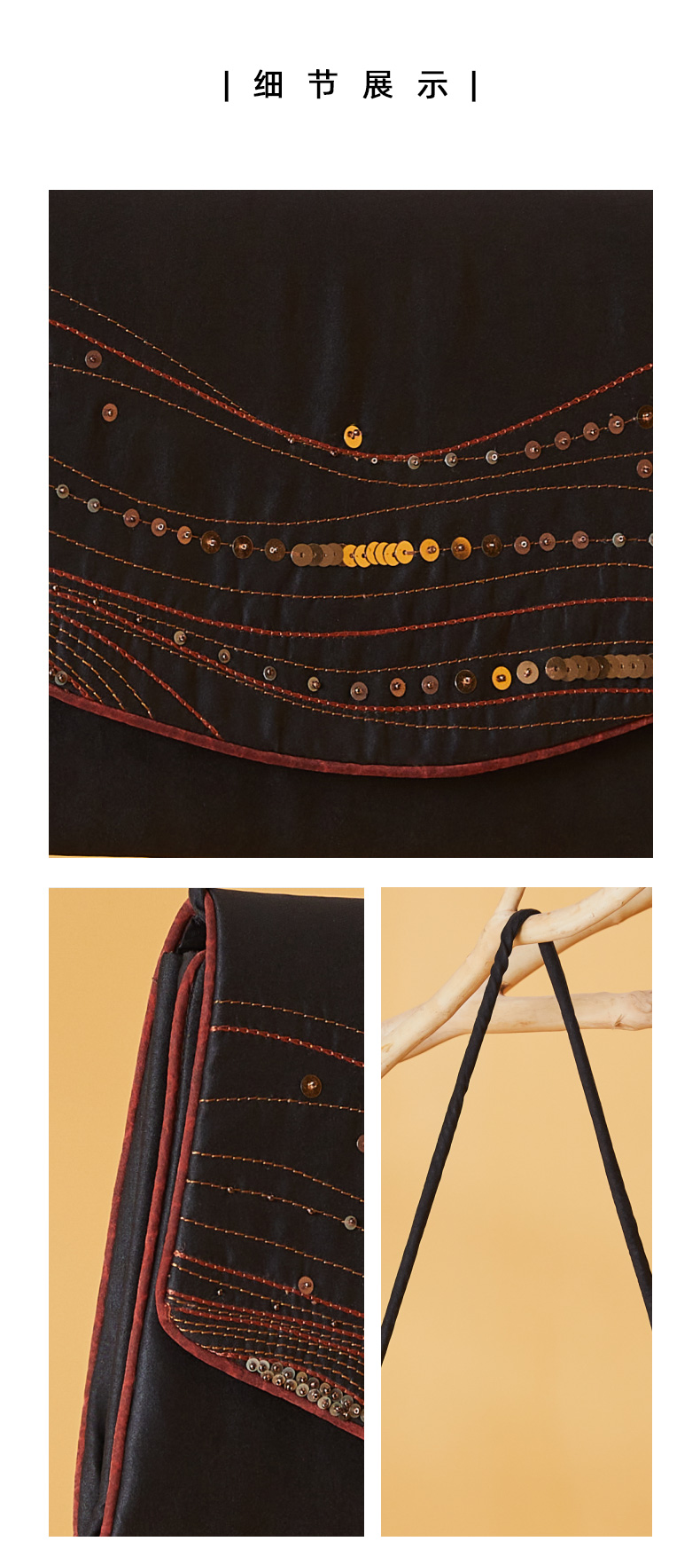 TANGY Collection/天意精品2021年秋冬新品原创线迹片珠莨绸包包