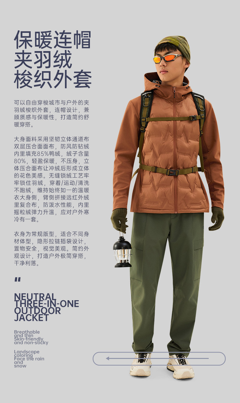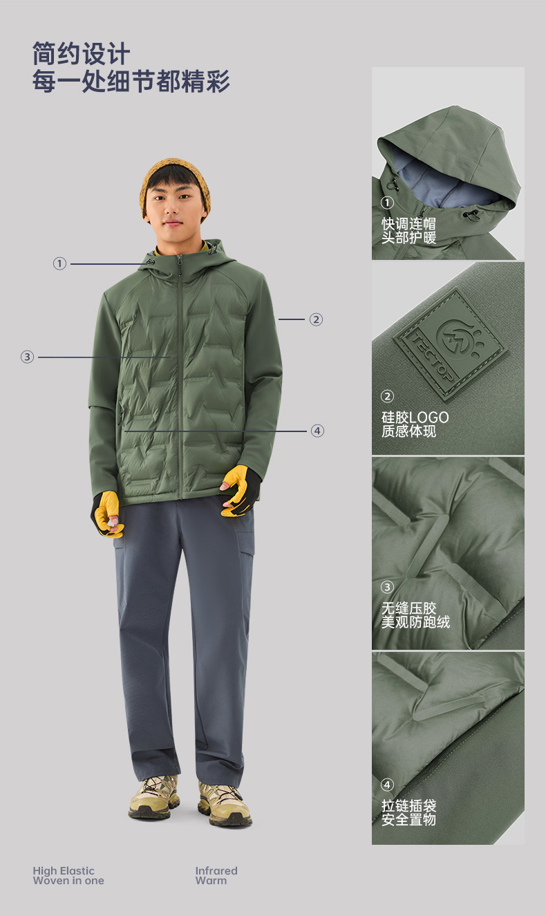 TECTOP/探拓户外轻暖羽绒服男冬季保暖鸭绒防风徒步登山连帽外套