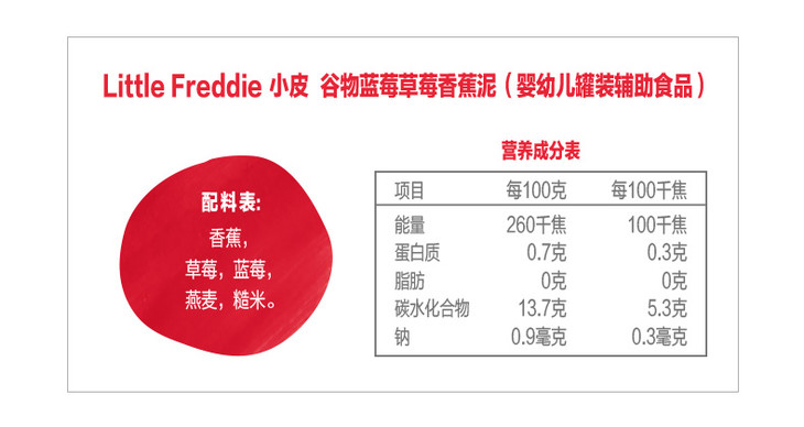英国Little Freddie 小皮多口味水果泥果汁泥辅食吸吸袋 100g/袋 6月+