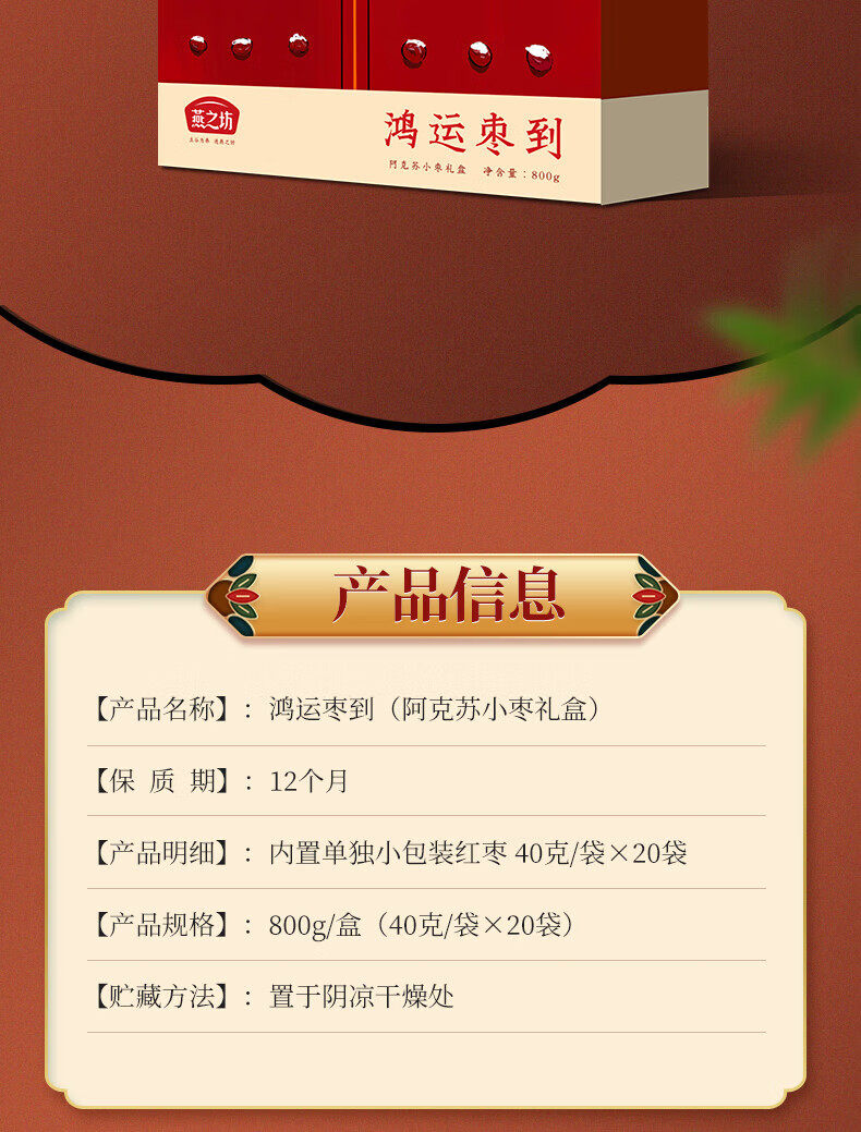 燕之坊 南北干货 鸿运枣到800g礼盒装 新疆红枣肉厚核小企业团购送礼