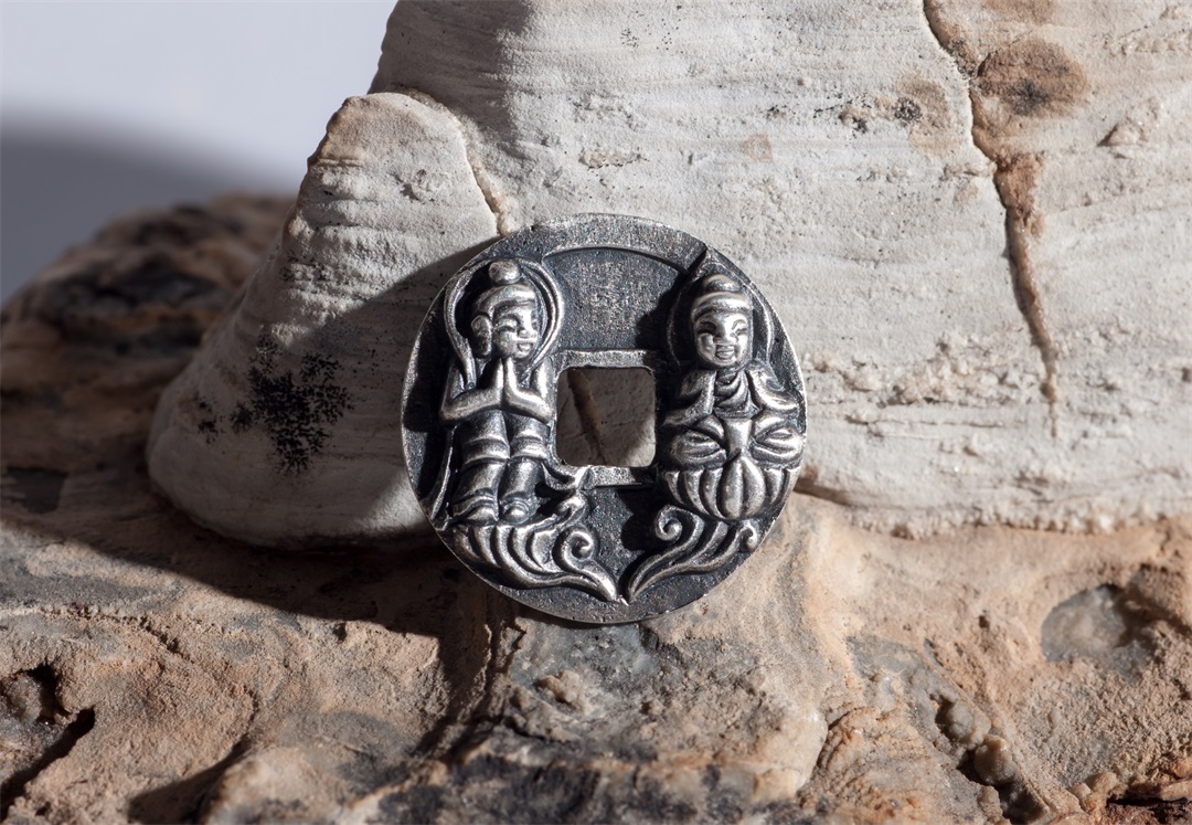 古泉书馆文创 纯银手作 淳化元宝背善财童子 供养钱