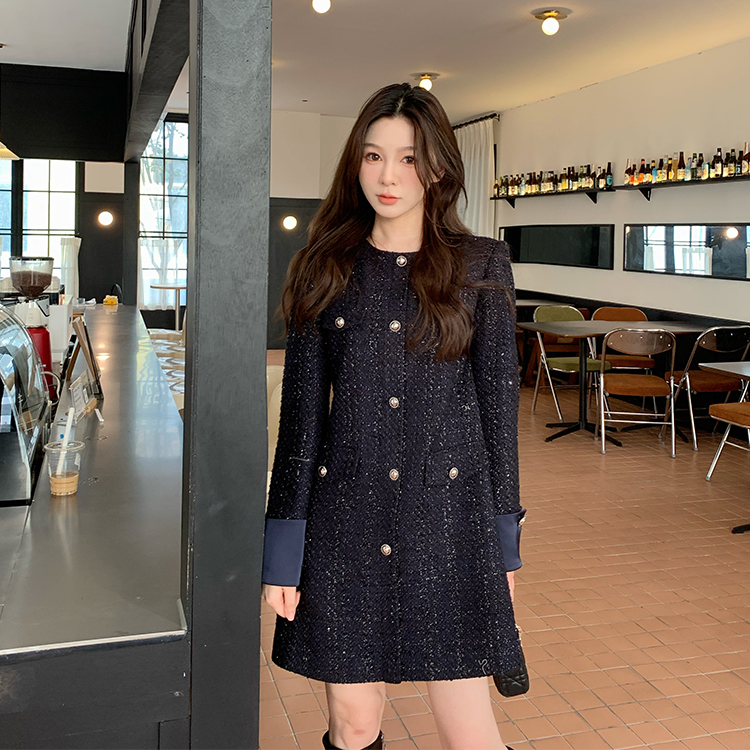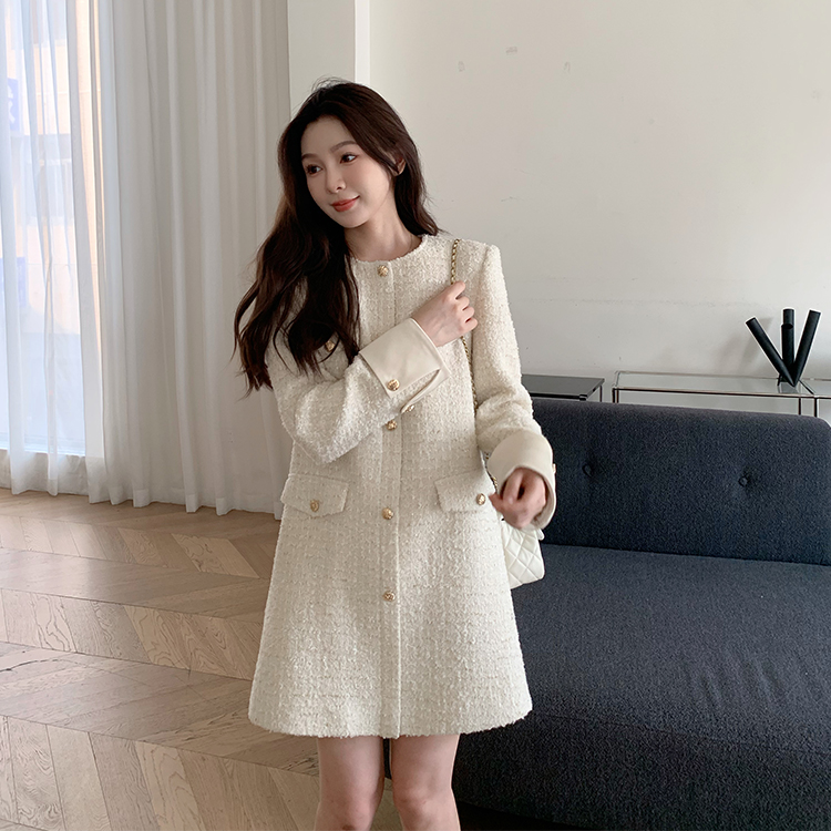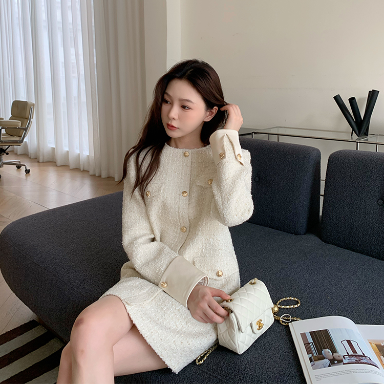 金蘑菇菇 "COCO鎏金手工坊"/ 精纺羊毛小香连衣裙