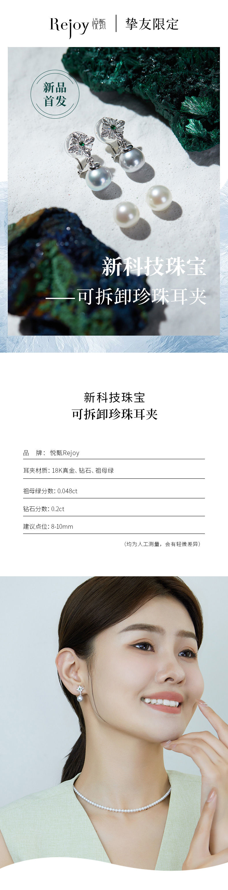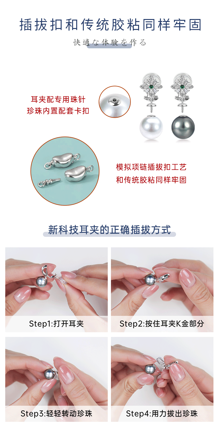 【黑科技】黑科技珠宝-可拆卸珍珠耳夹 冰菱(会员享试戴权益,定制后不支持7天无理由退换货)