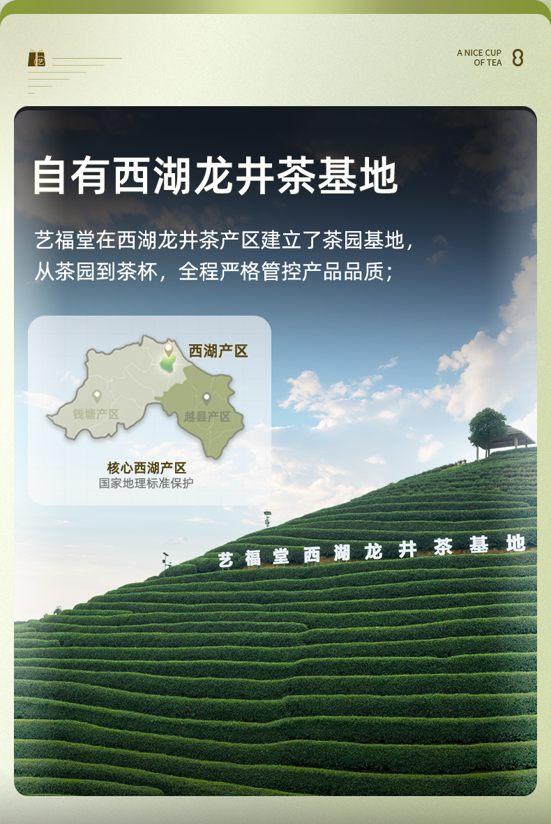 - “艺福堂茶业”创立于2008年,是一家集生产、销售、科研为一体的现代茶业企业,主打西湖龙井,兼营世界各地名优茗茶及花草茶,是中国茶行业为数不多的年销售额过5亿的品牌之一,是杭州亚运会官方指定用茶!