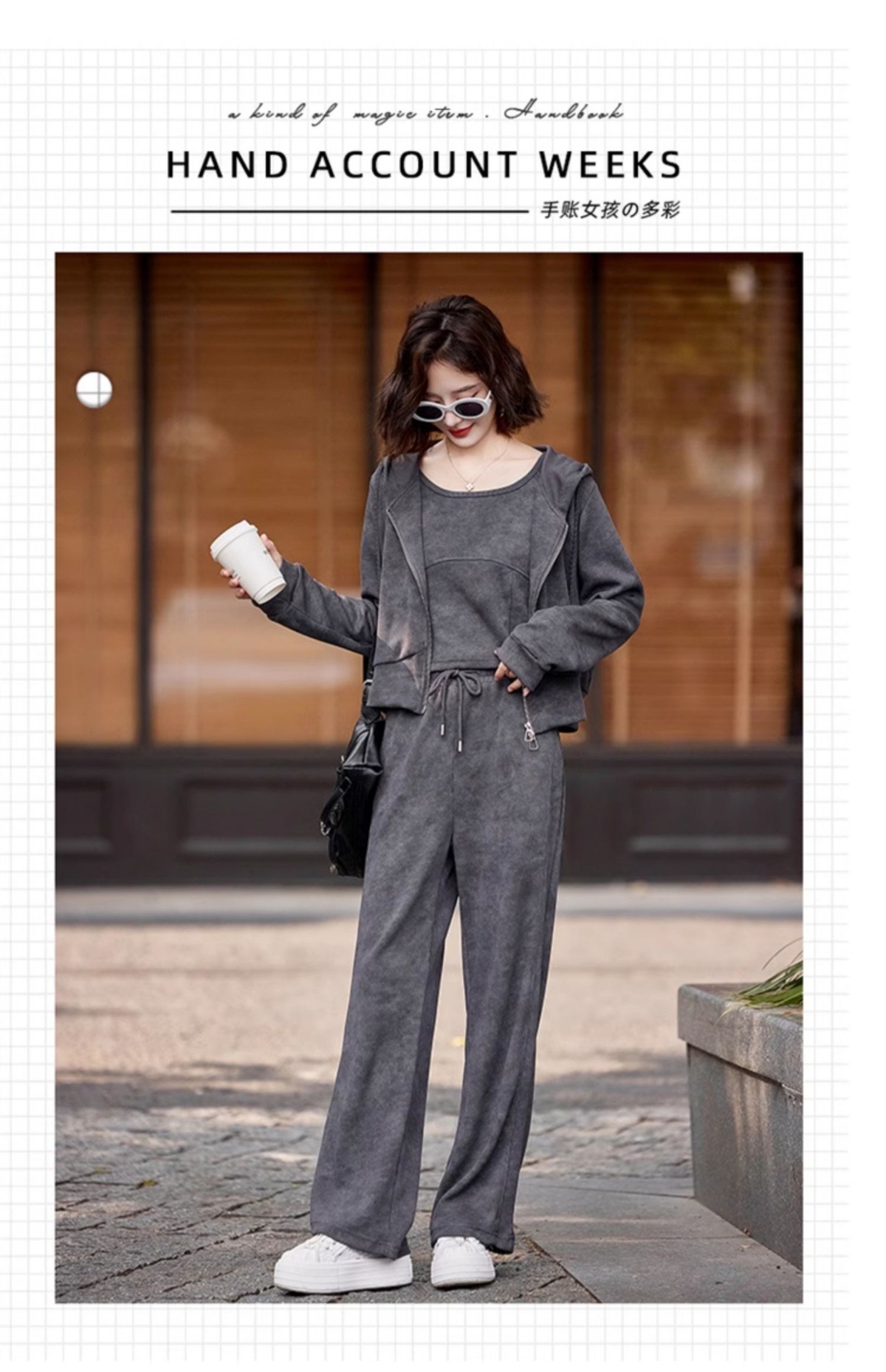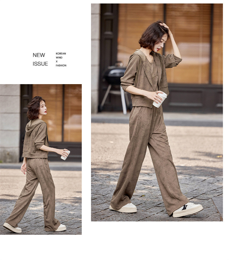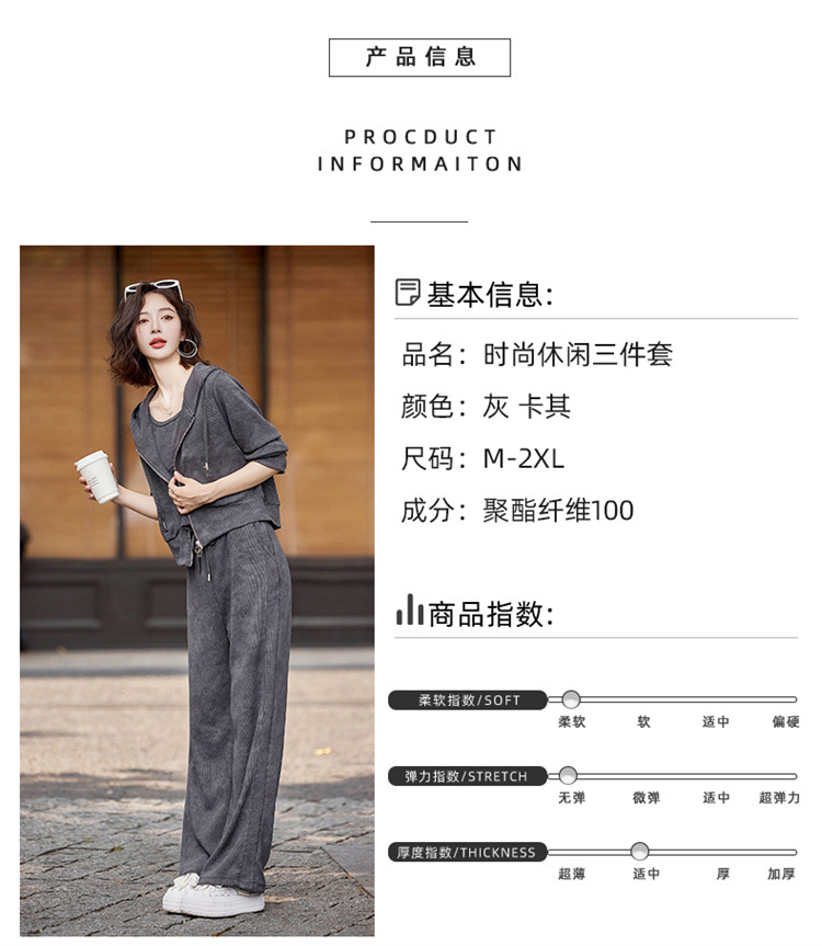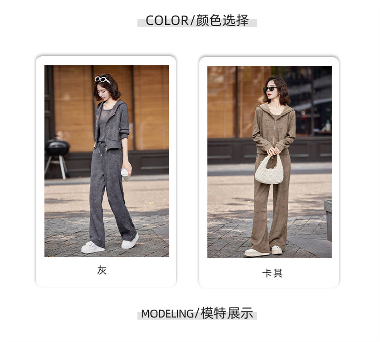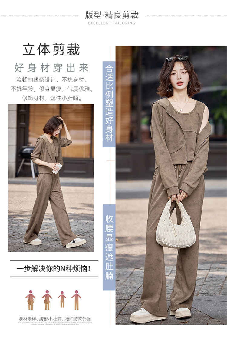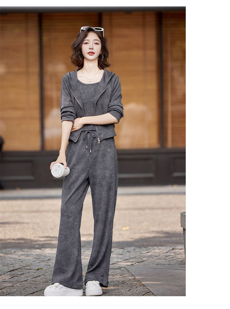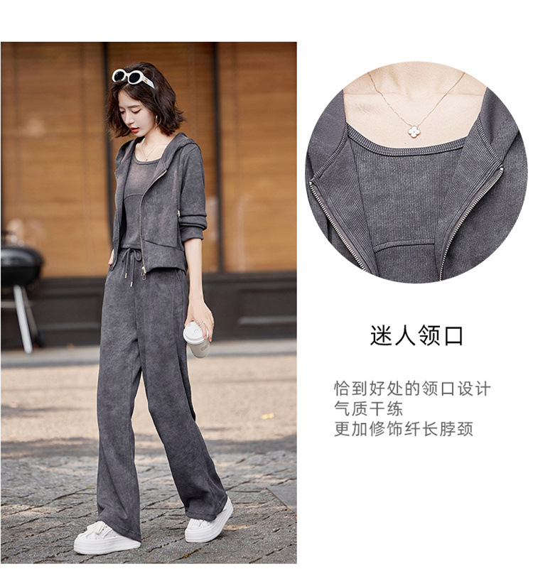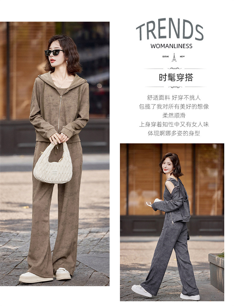 休闲时尚宽松洋气,减龄连帽卫衣吊带阔腿裤三件套套装HR-CPYY8088