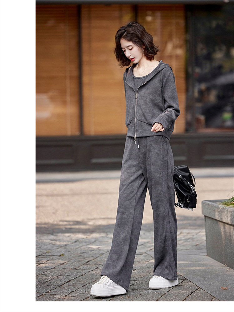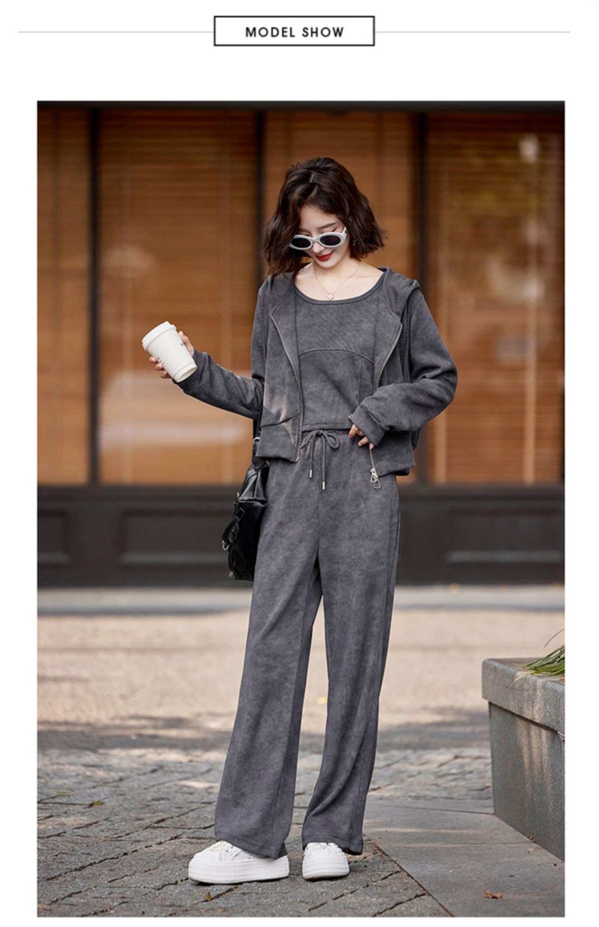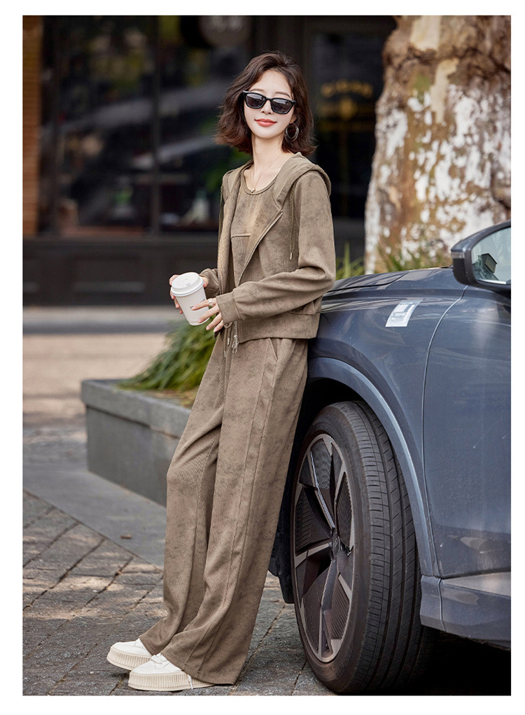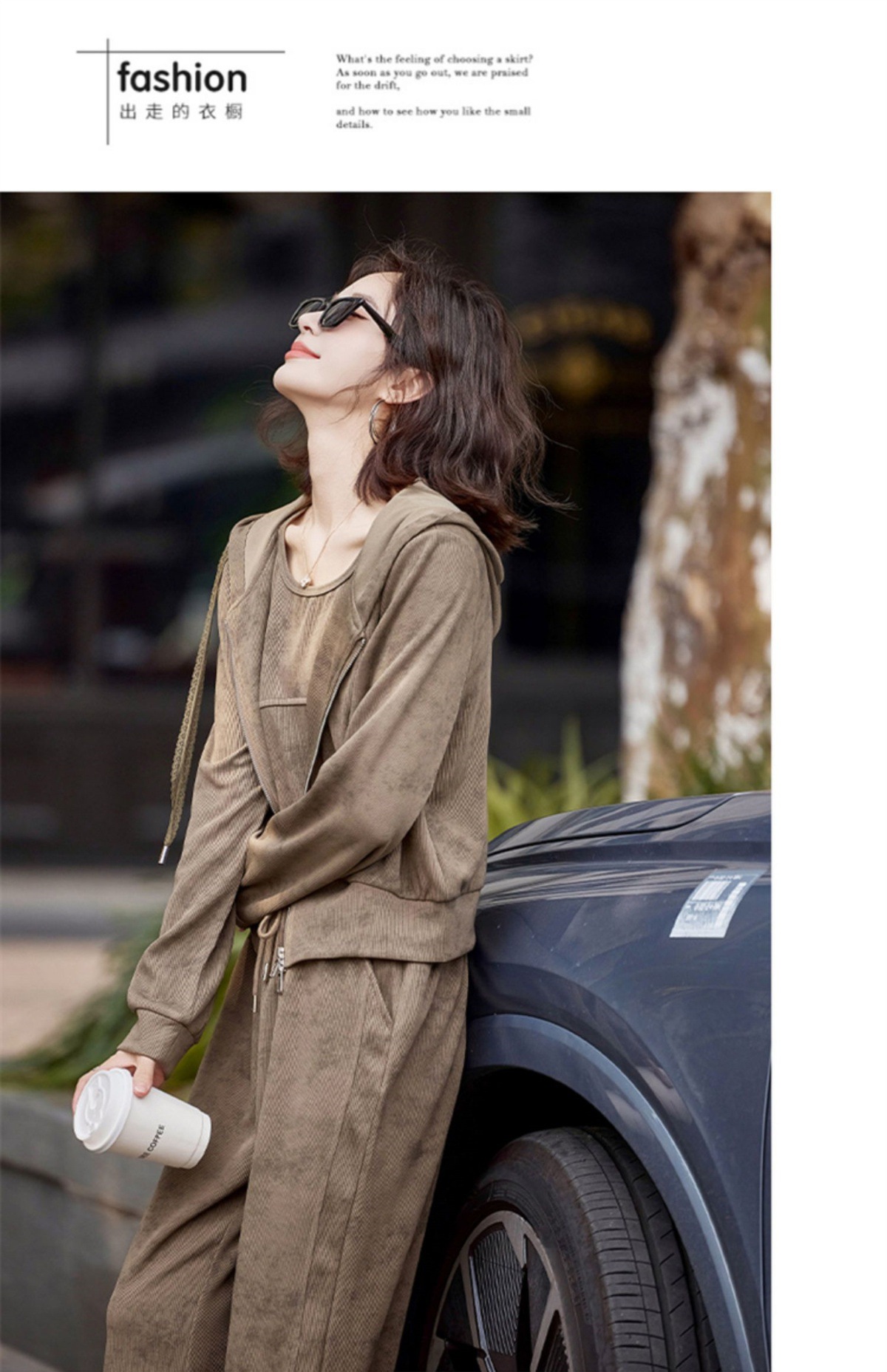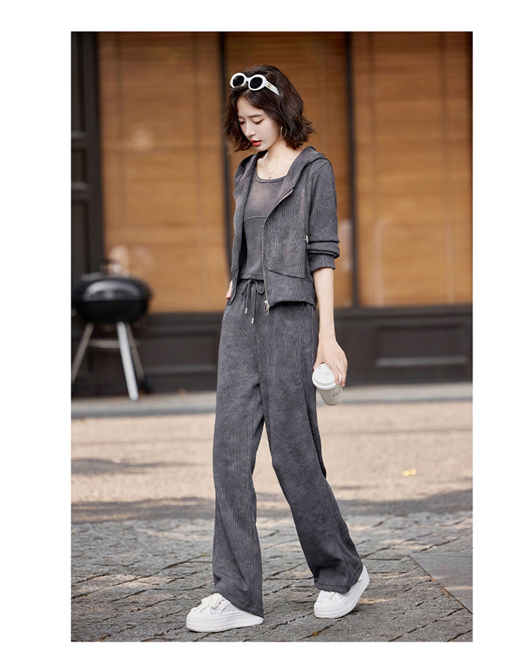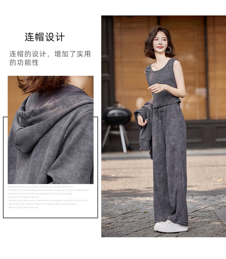 休闲时尚宽松洋气,减龄连帽卫衣吊带阔腿裤三件套套装HR-CPYY8088