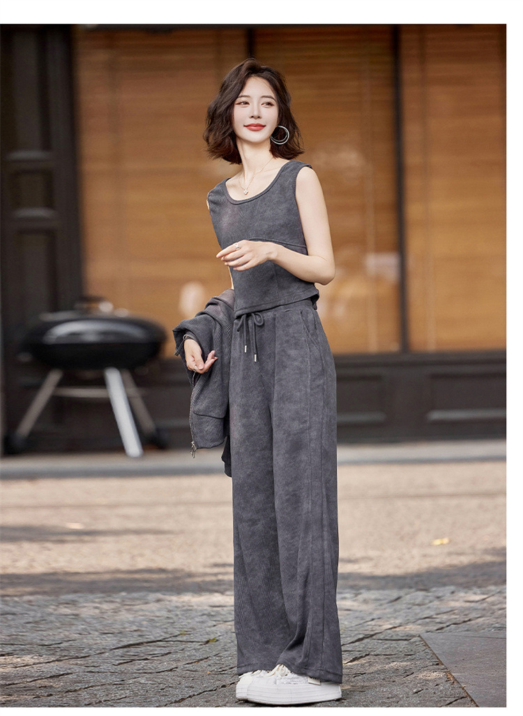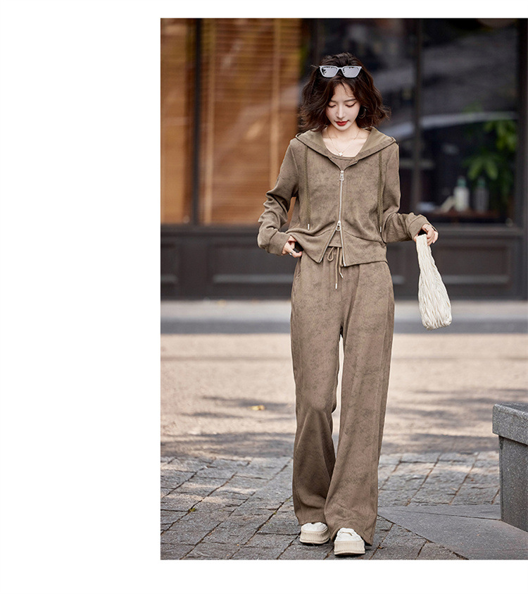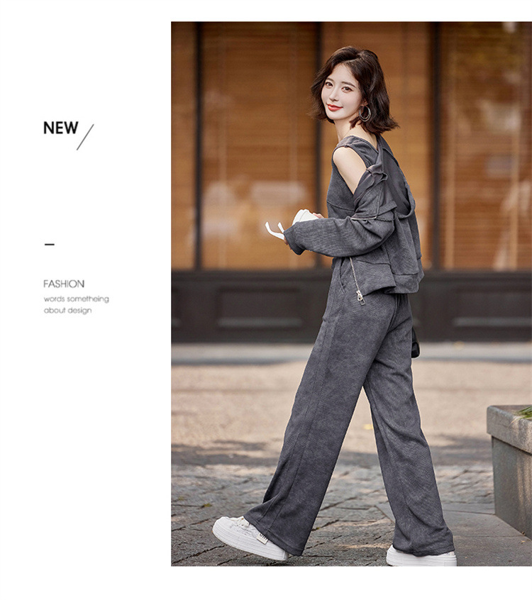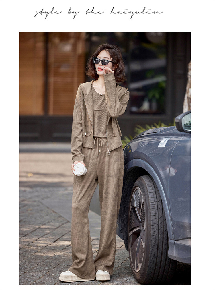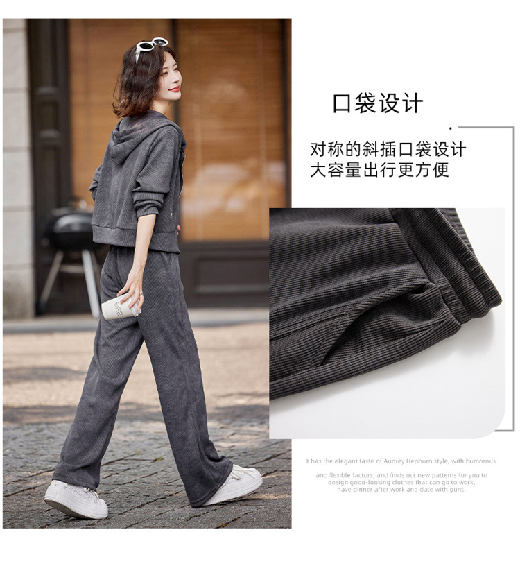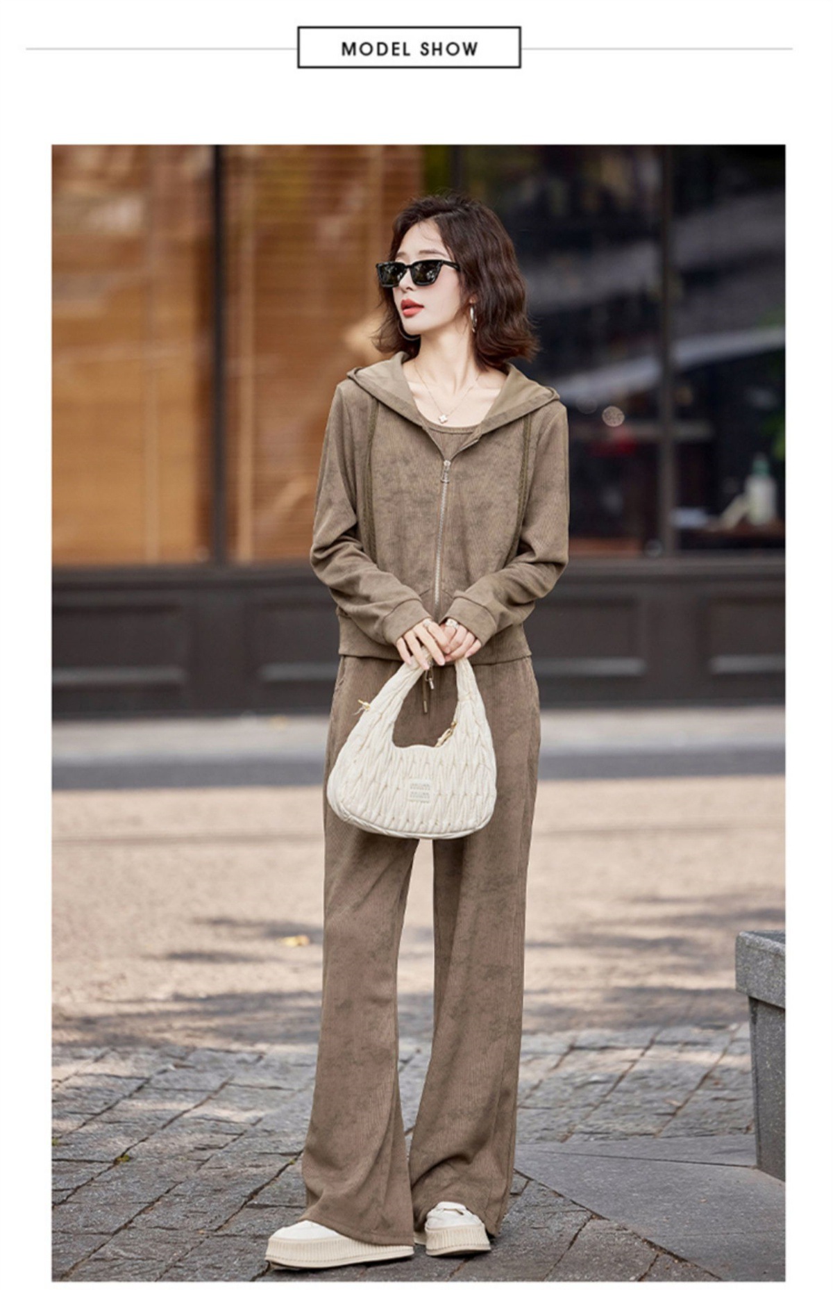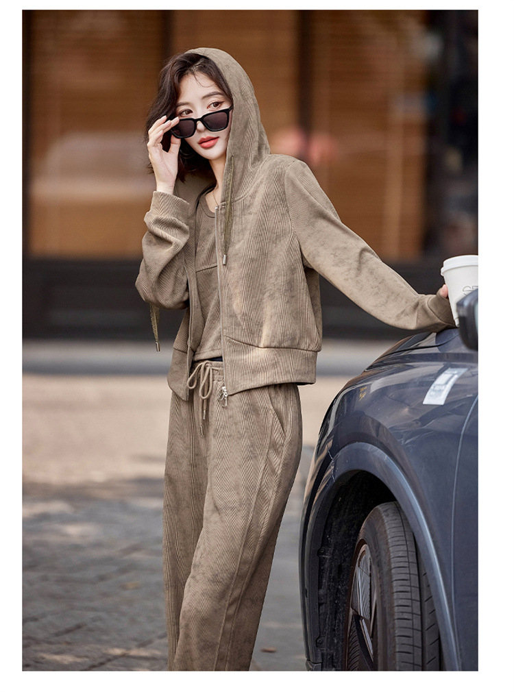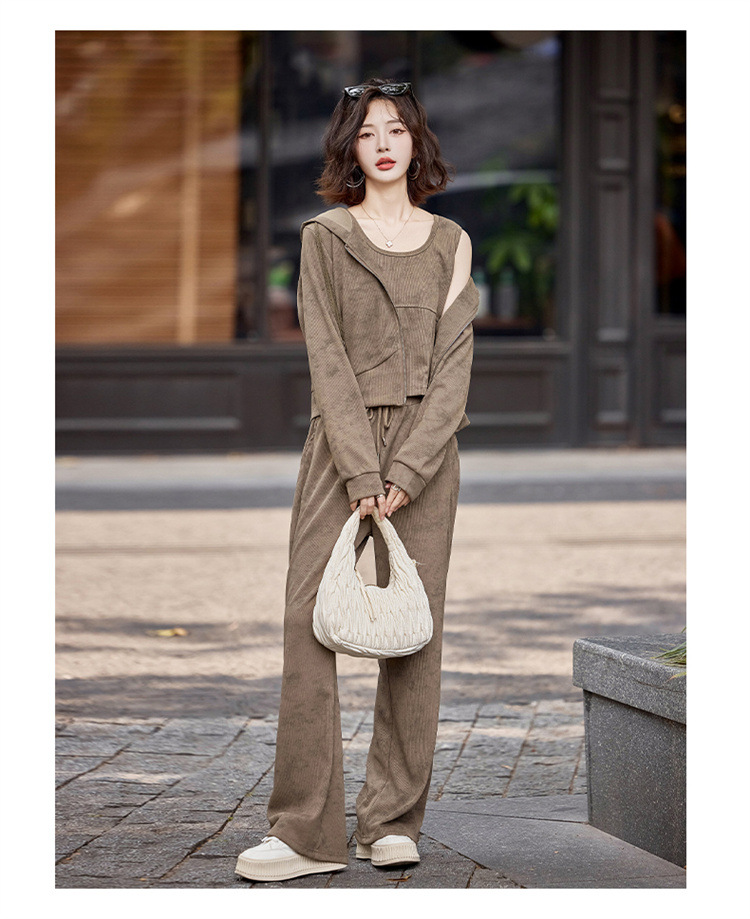 休闲时尚宽松洋气,减龄连帽卫衣吊带阔腿裤三件套套装HR-CPYY8088