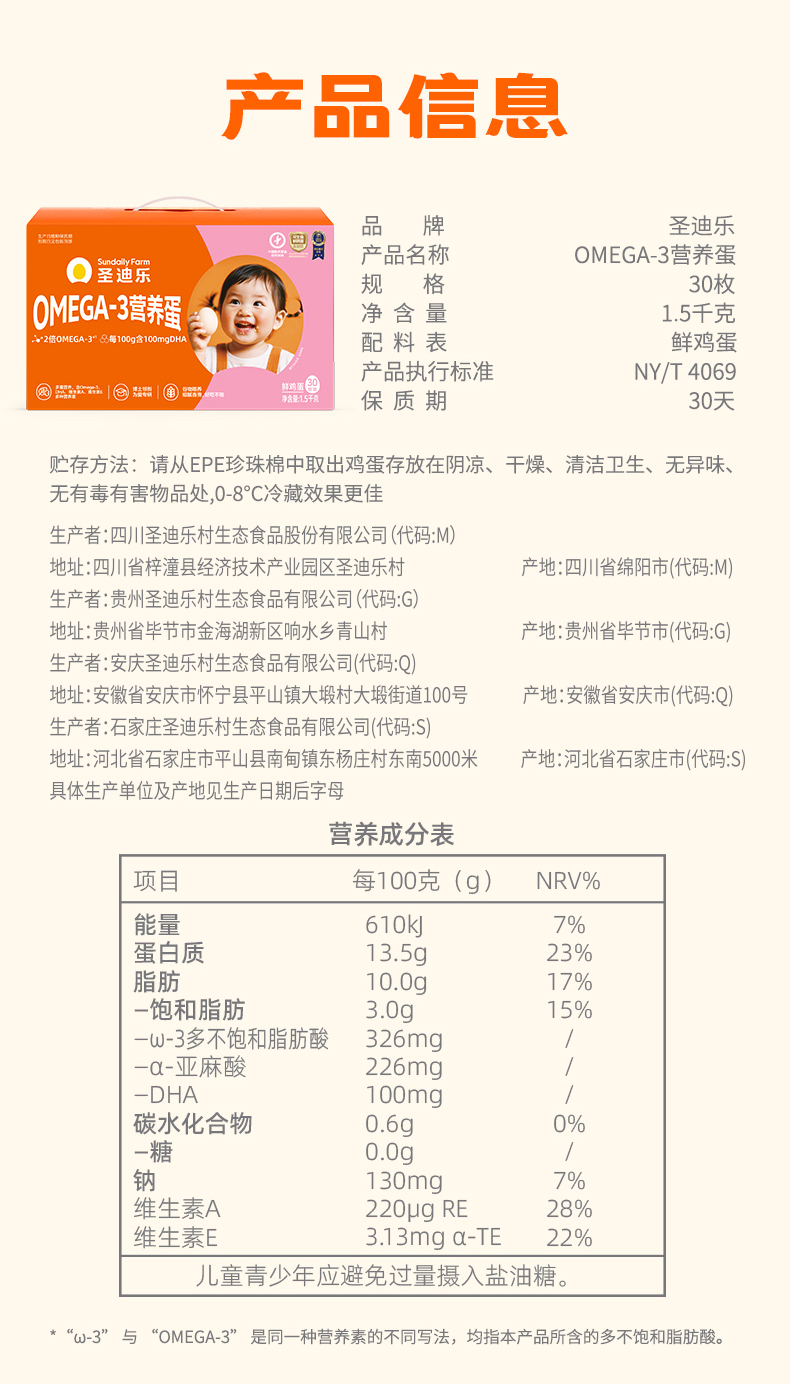 【OMEGA-3营养蛋&6盒周期购】OMEGA-3营养蛋30枚/盒电商装