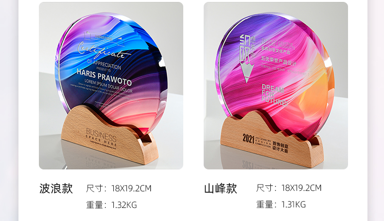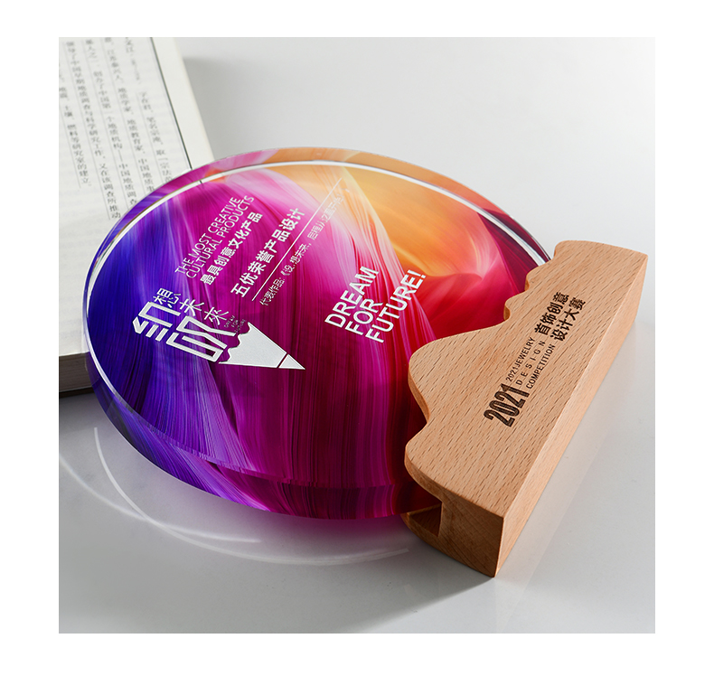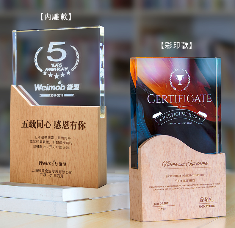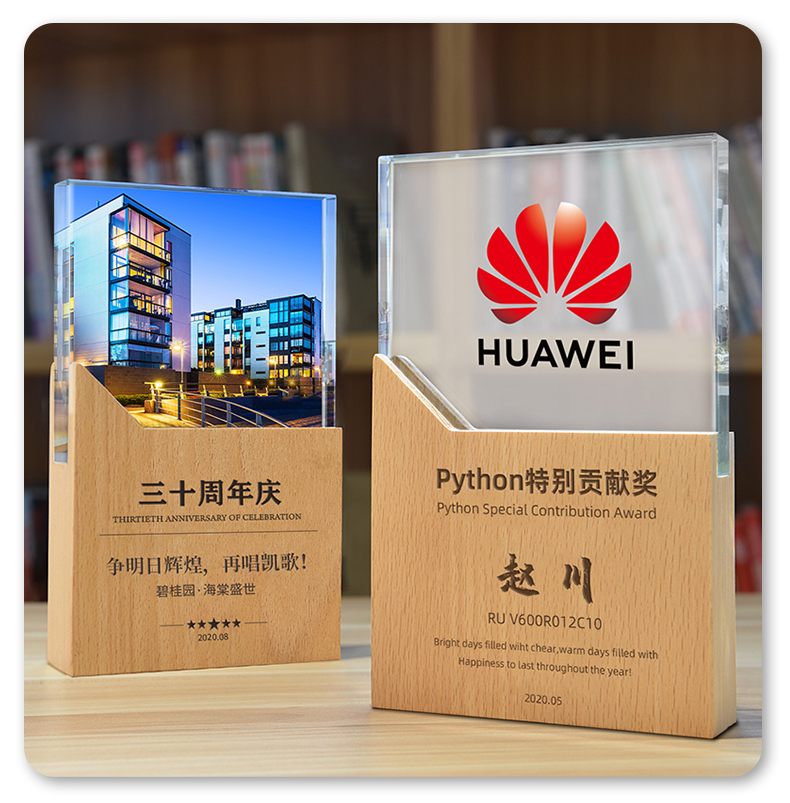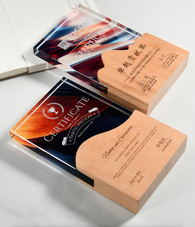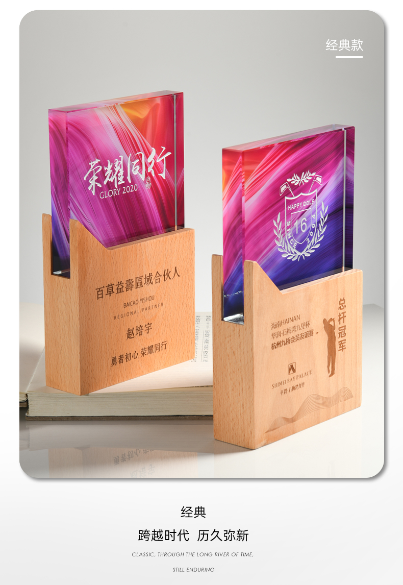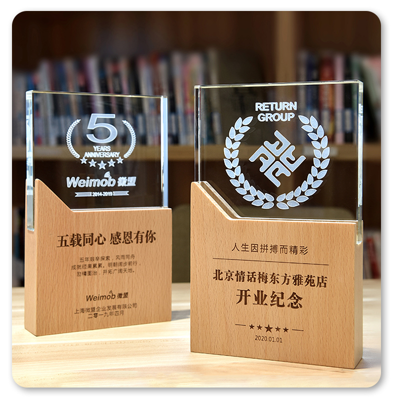 志愿者水晶奖杯定制实木创意荣誉奖牌优秀员工周年庆退休纪念品