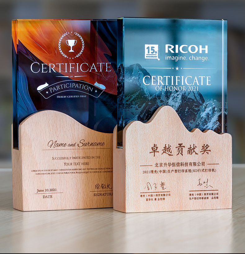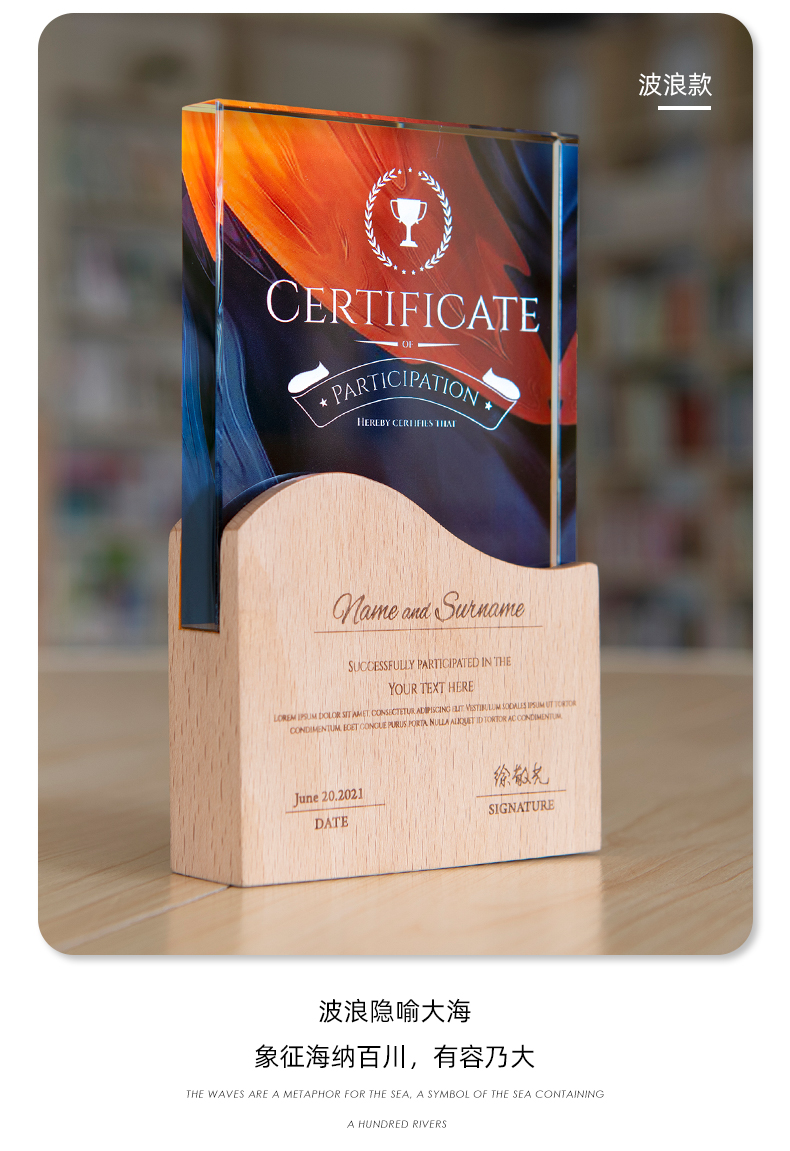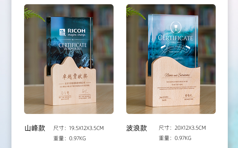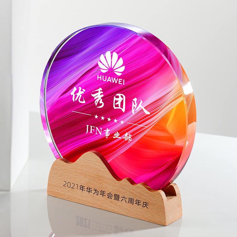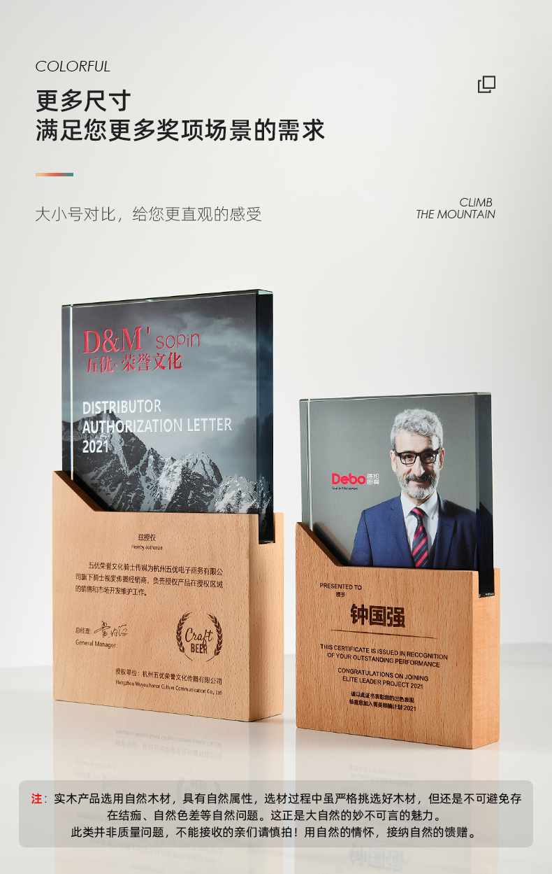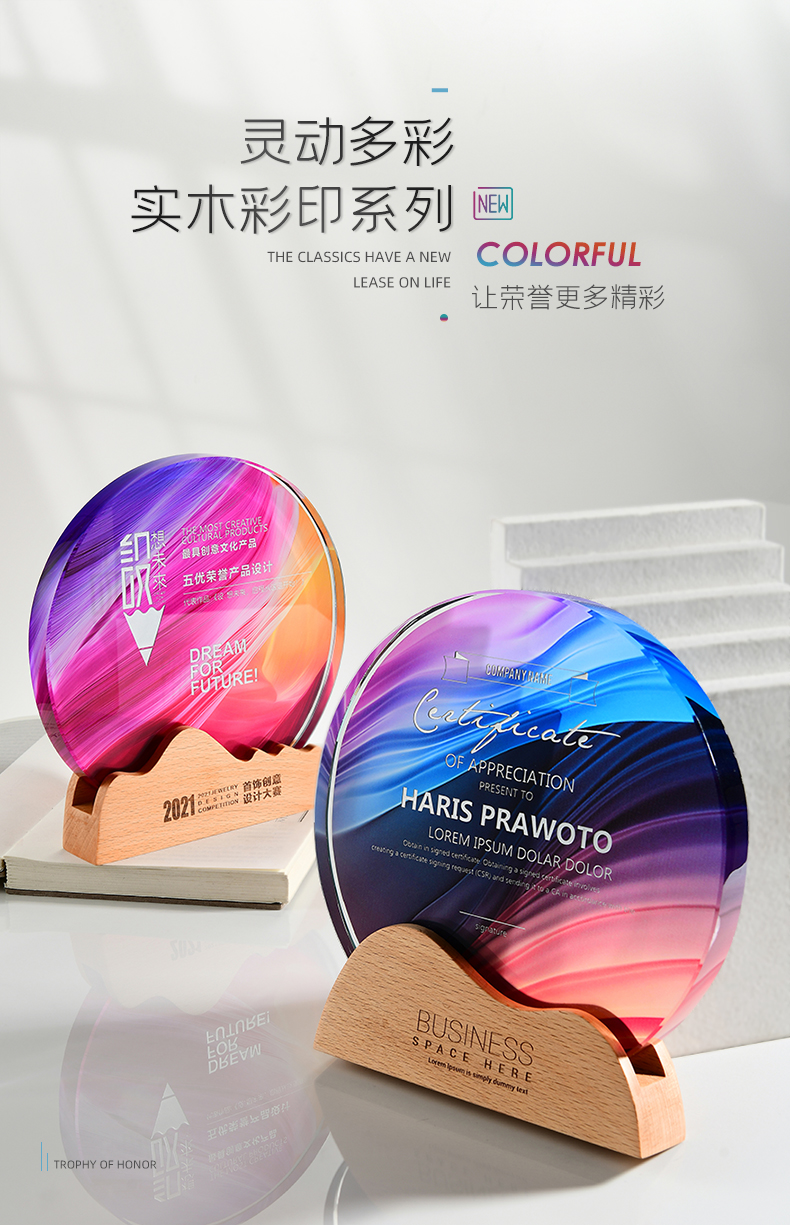 志愿者水晶奖杯定制实木创意荣誉奖牌优秀员工周年庆退休纪念品