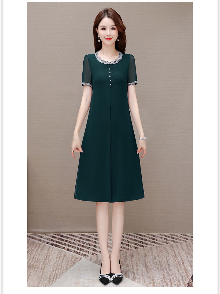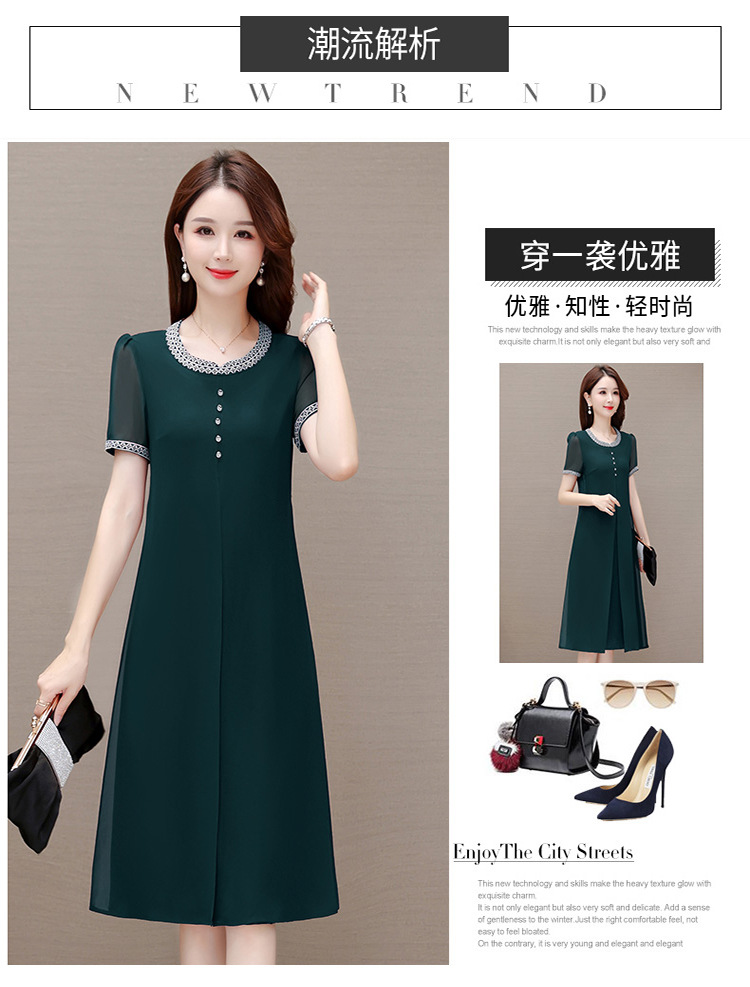 夏季简约,中长款开衩假两件休闲裙中老年妈妈装雪纺裙短袖连衣裙QYM-TYP-82A801-Y