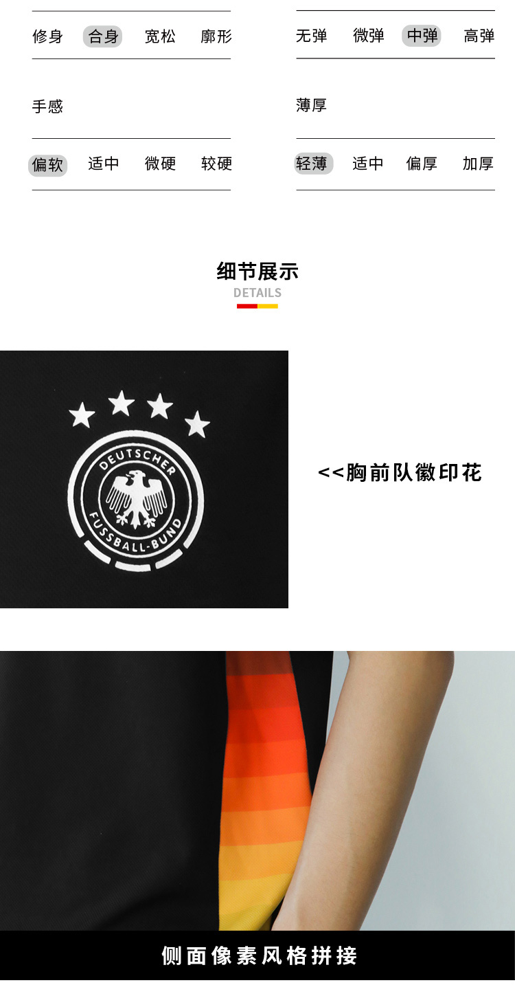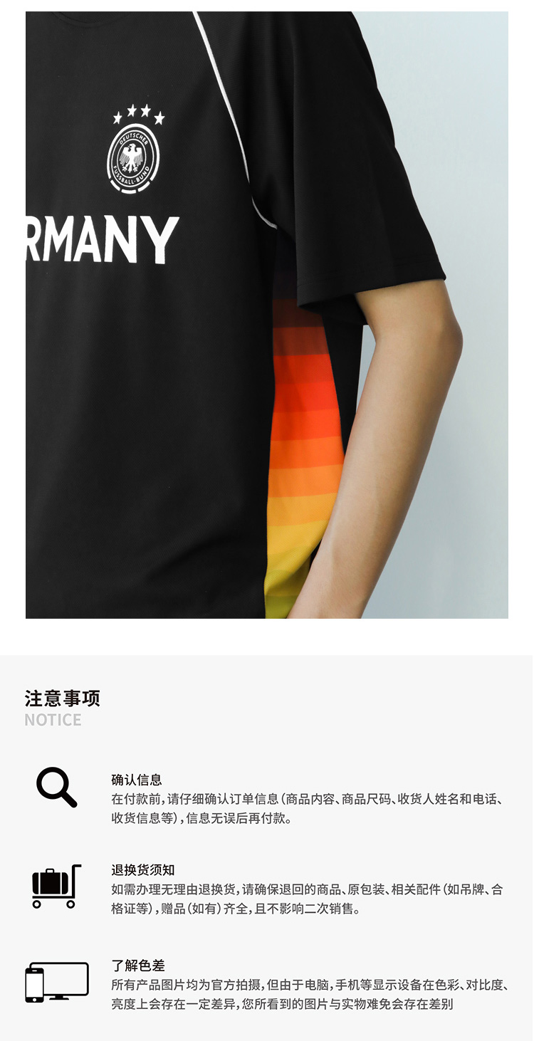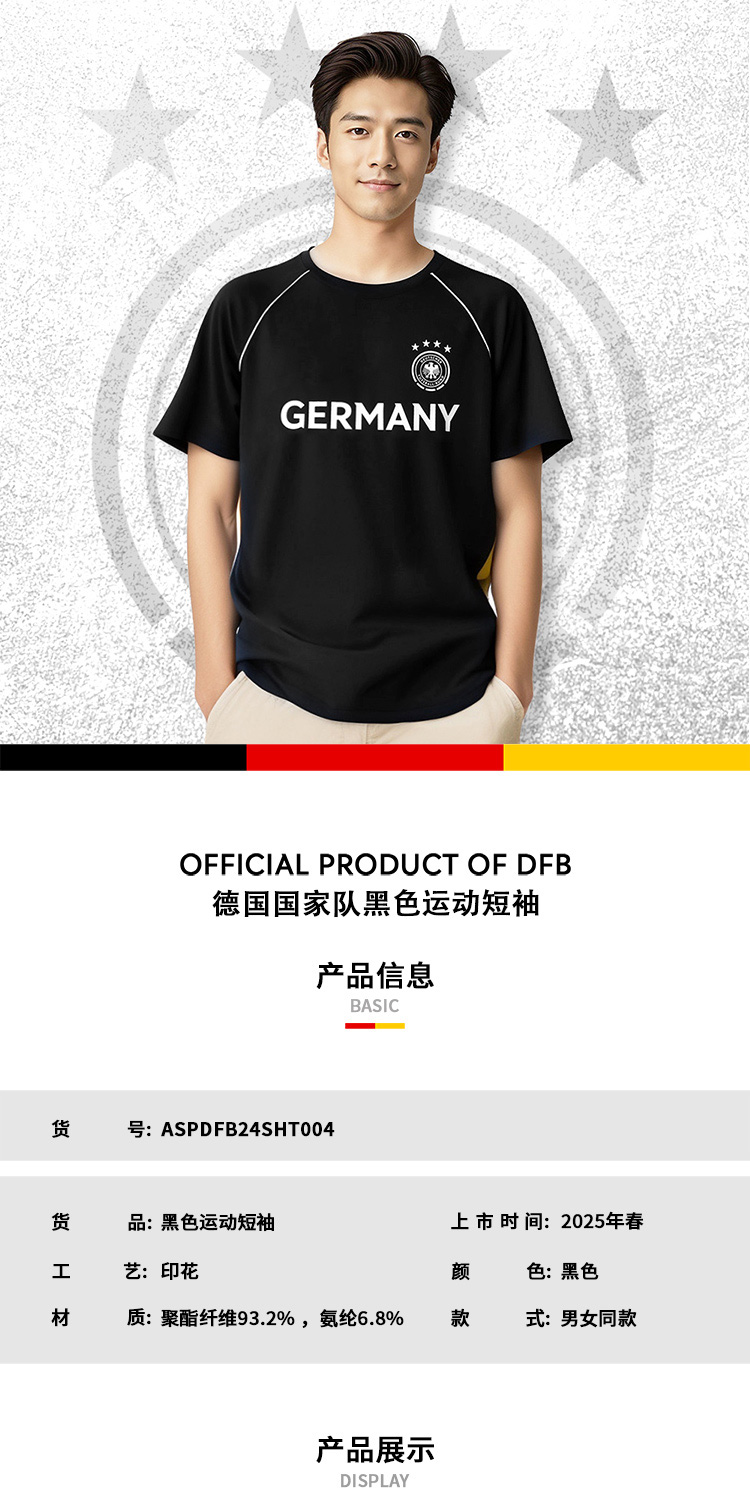 【官方正版】德国国家队 | 速干运动短袖足球迷拼色时尚黑T恤
