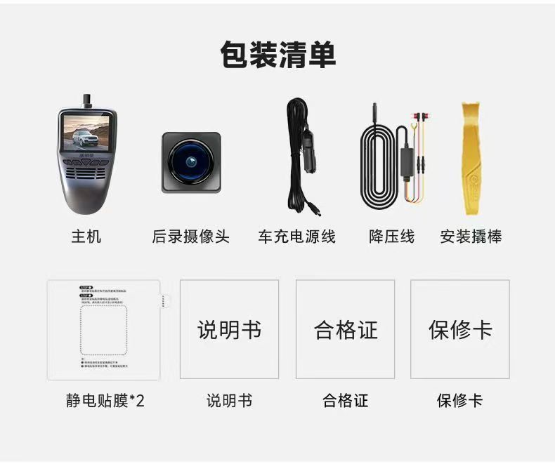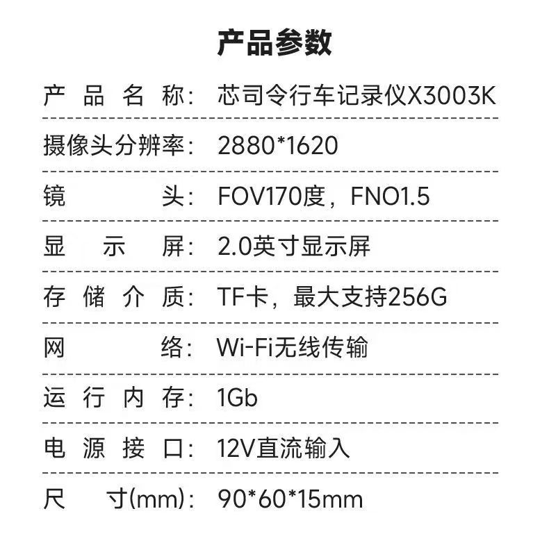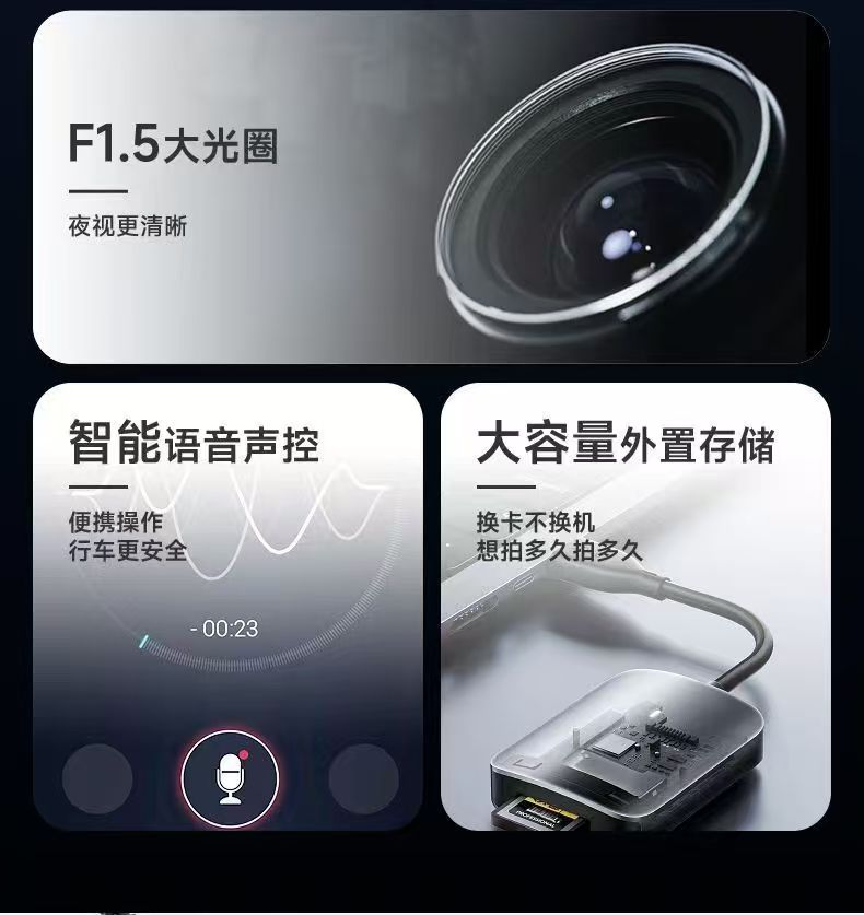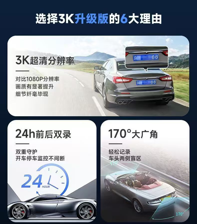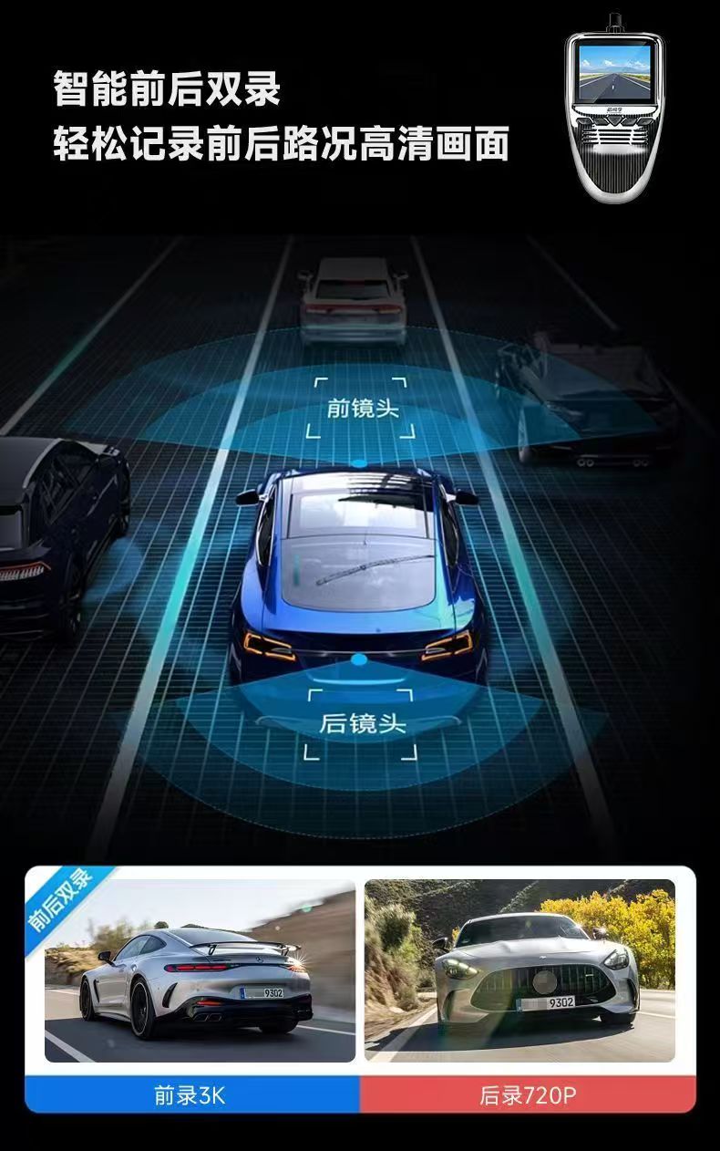 芯司令行车记录仪3K超清声控夜视倒车影像免安装前后录像停车监控