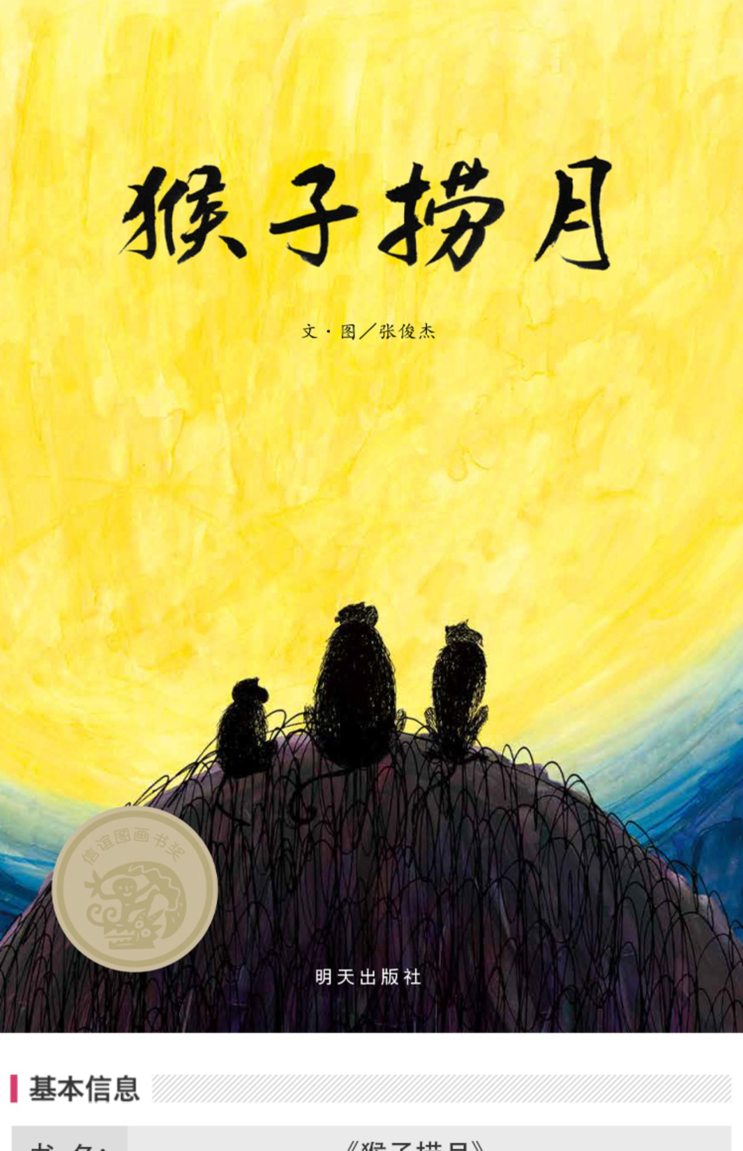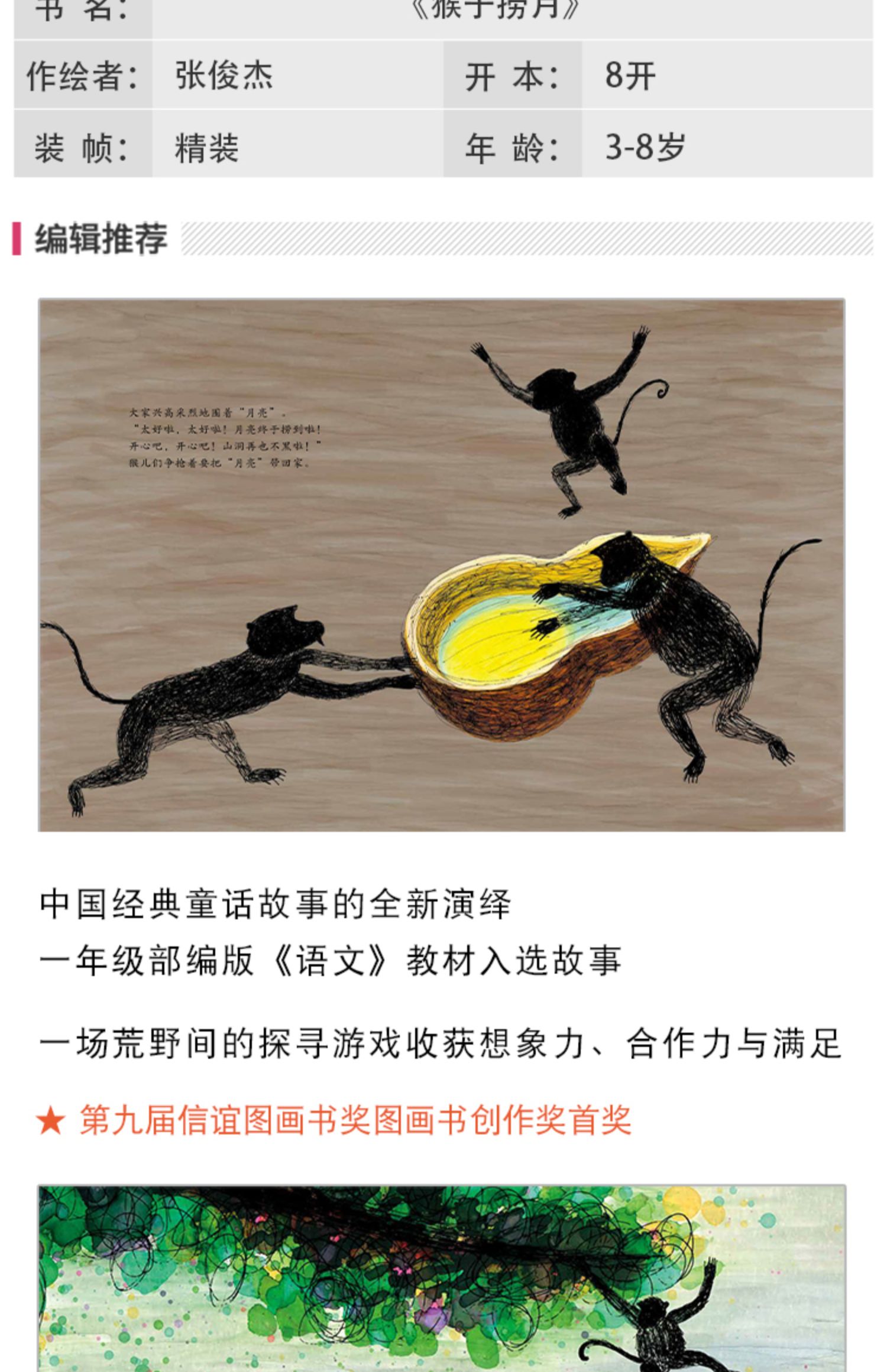 【名师推荐小学1-2年级】信谊图画书奖系列:猴子捞月 绘本精装