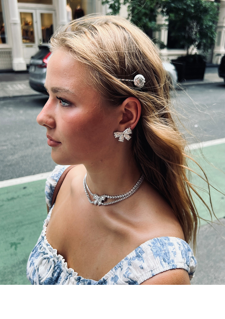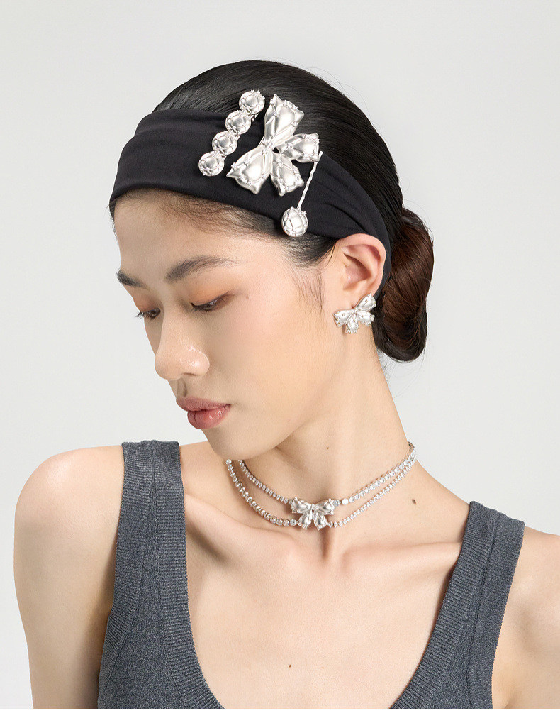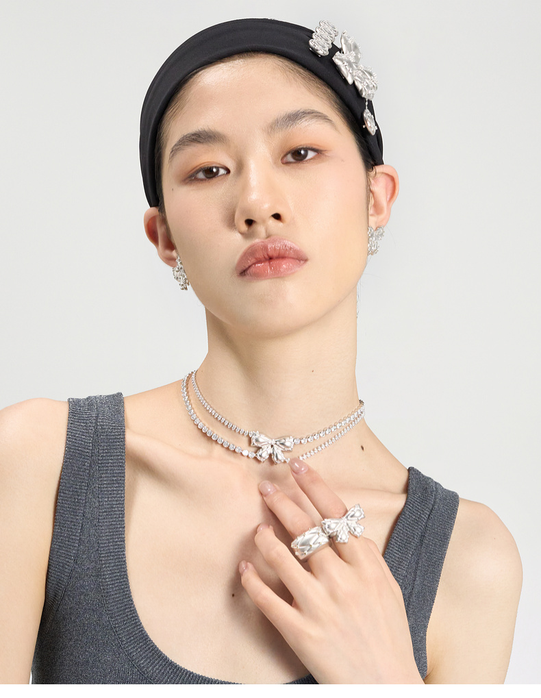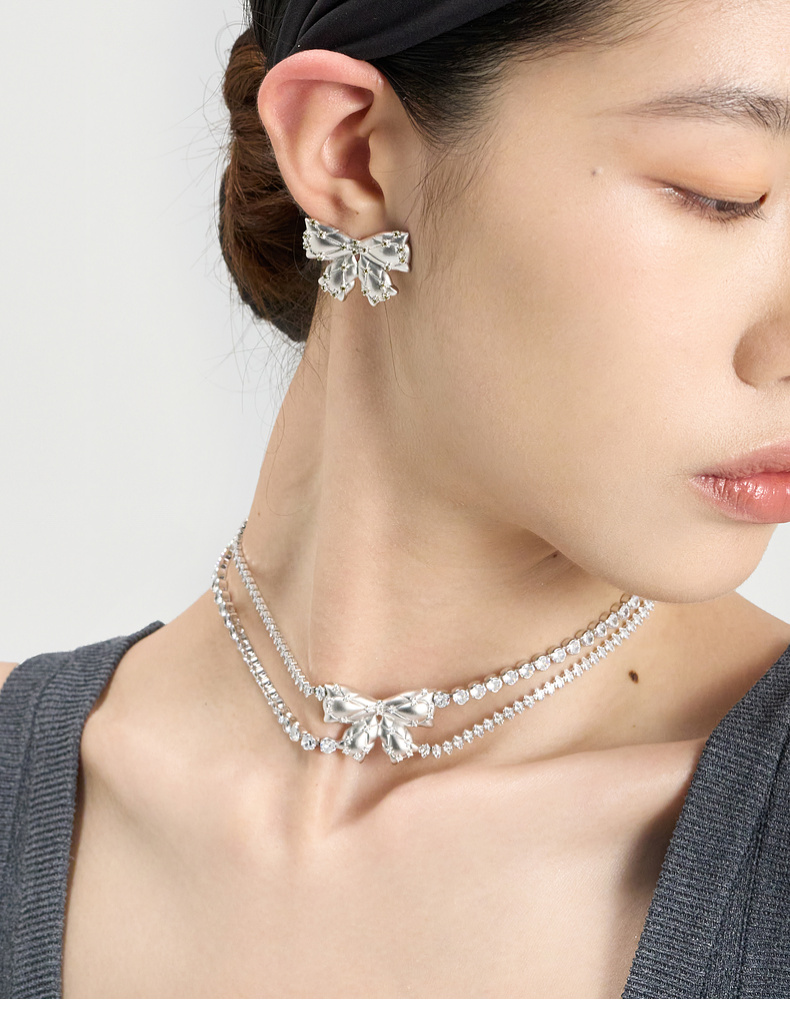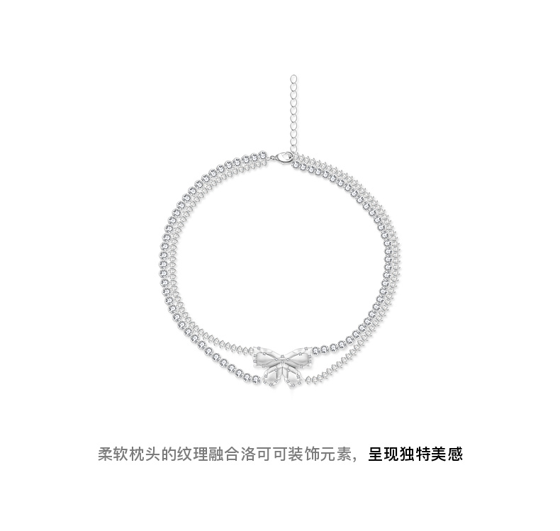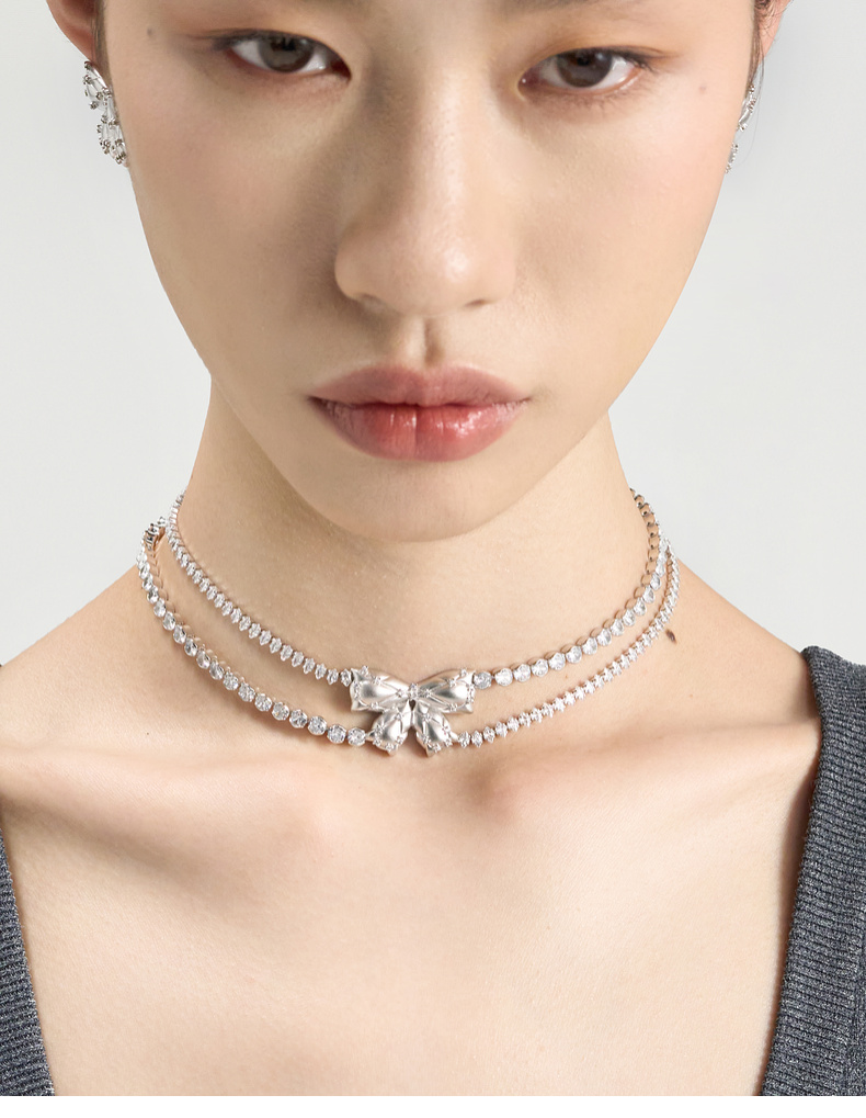lost in echo2024秋季新款膨胀蝴蝶结枕头双层银色chocker项链女