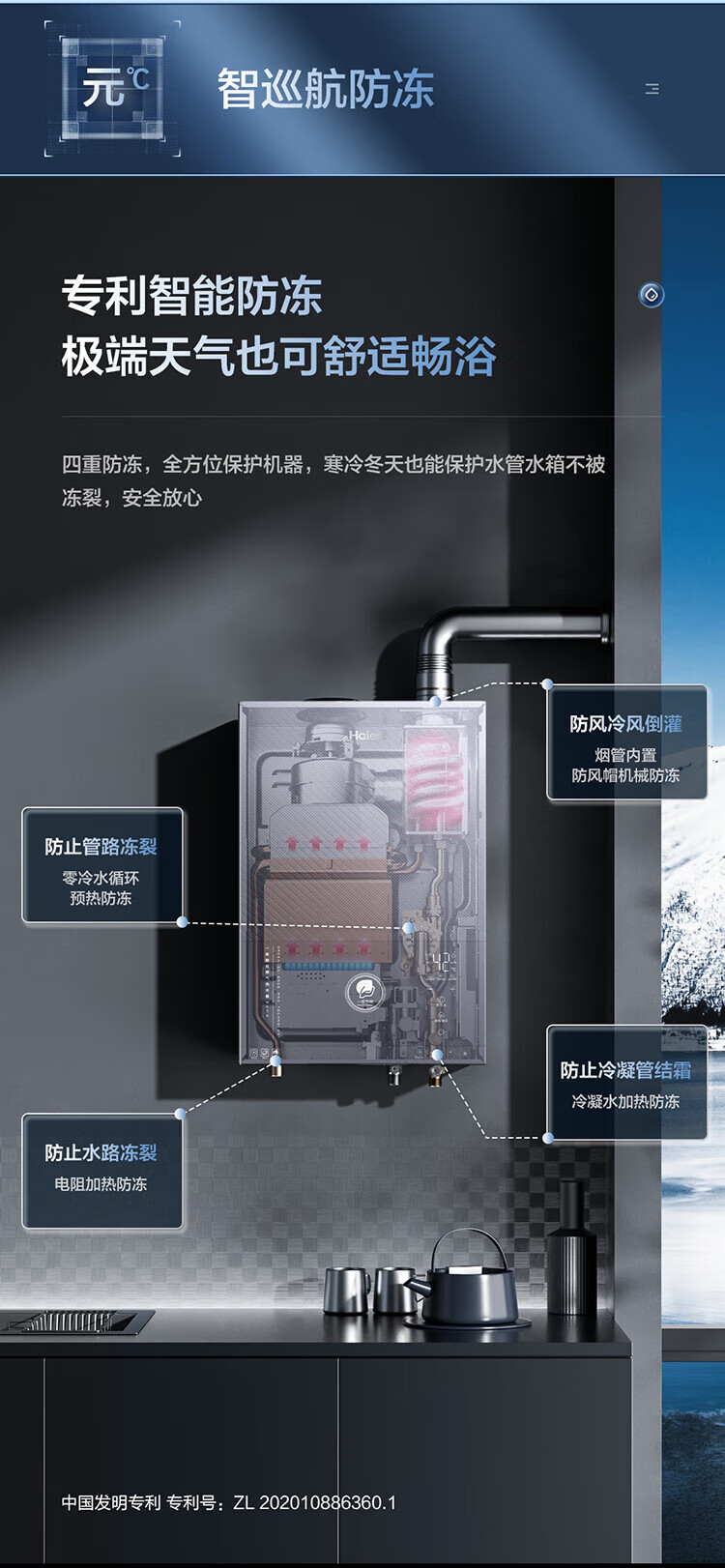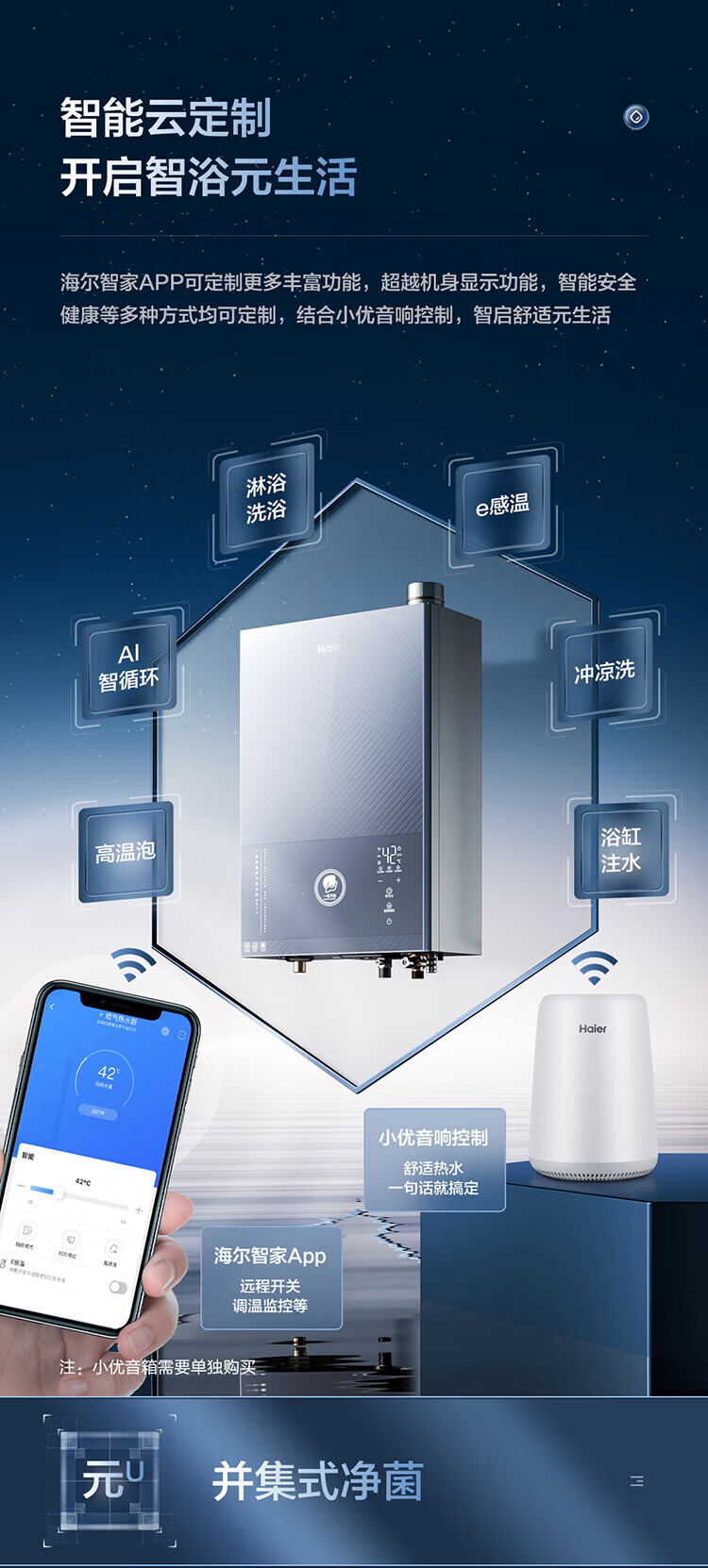 海尔(Haier)燃气热水器天然气家用双增压大水量18升零冷水超一级能效全面彩晶屏静音META JSLQ32-18META-PRO(12T)U1