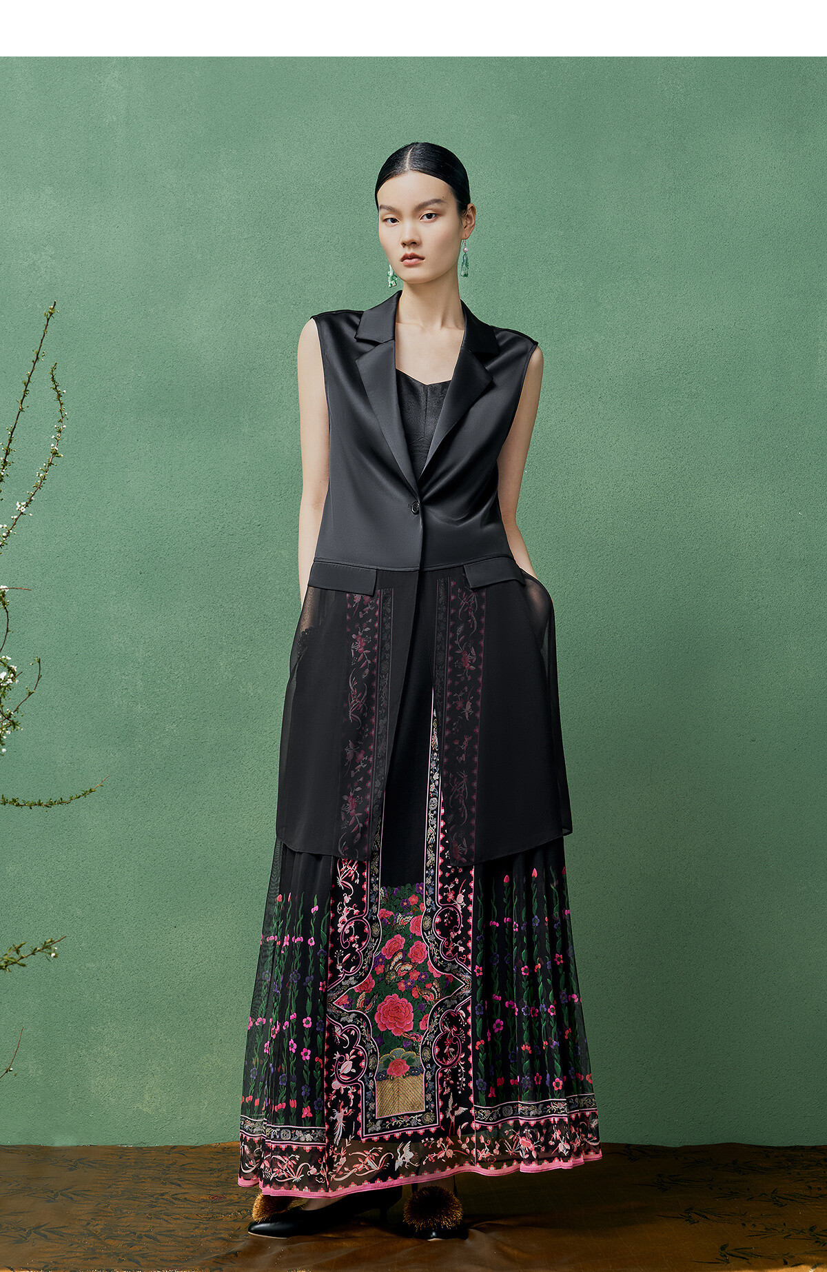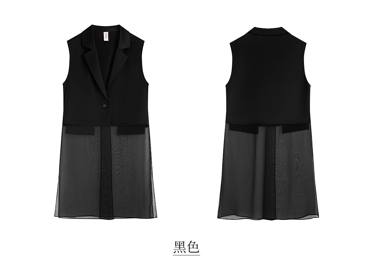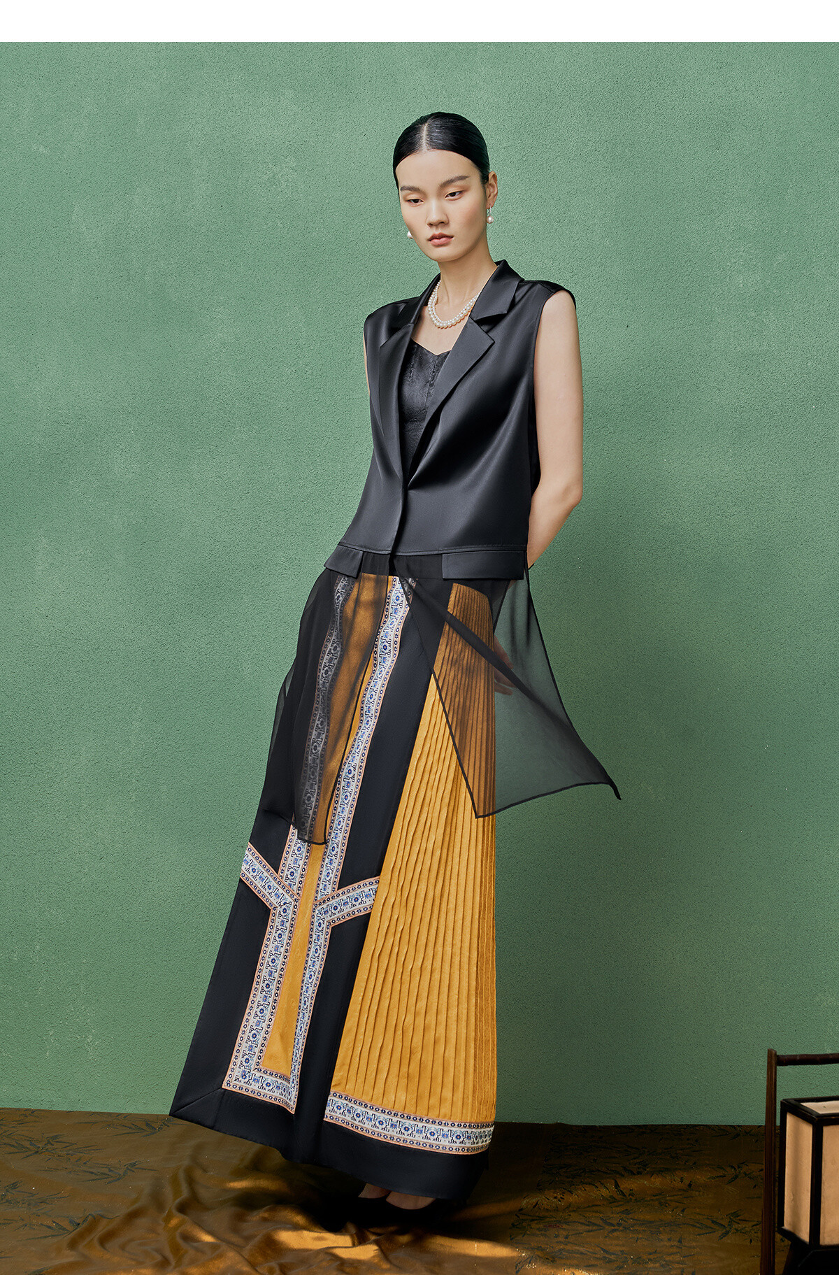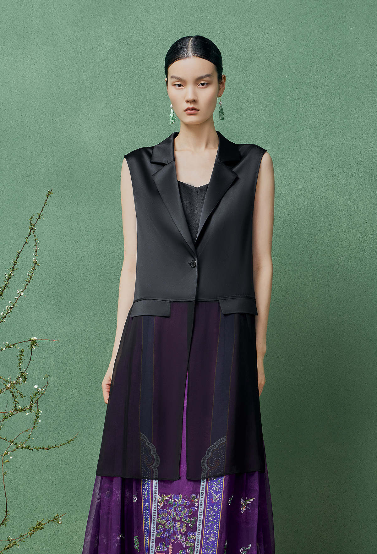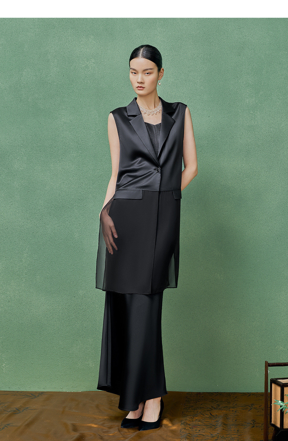 【林栖设计小店】复古优雅马甲拼真丝西装领显瘦2025春夏新品长款上衣女1952023