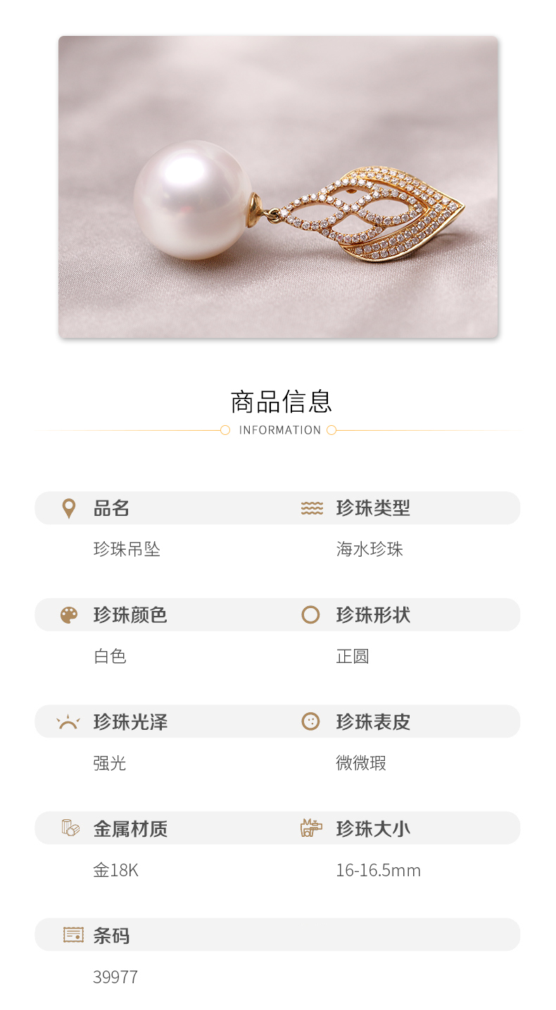 金18K海水珍珠吊坠 16-16.5mm 39977