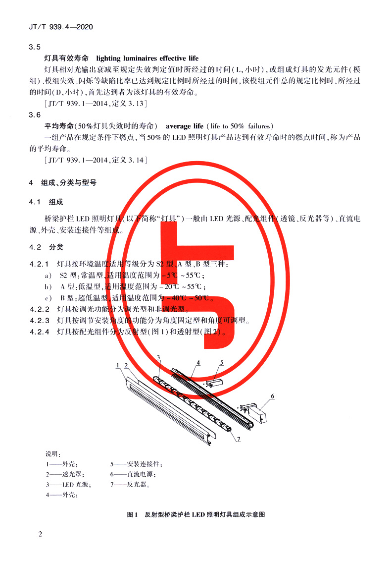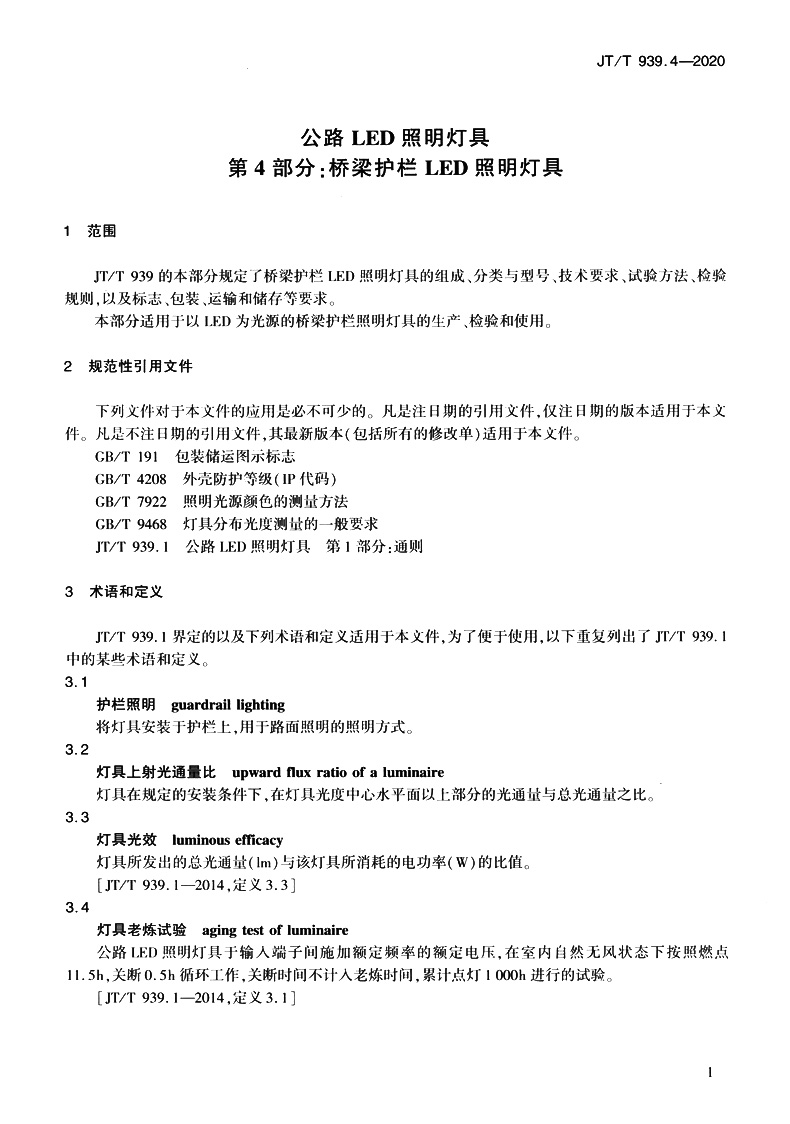 公路LED照明灯具 第4部分:桥梁护栏LED照明灯具(JT/T 939.4—2020)