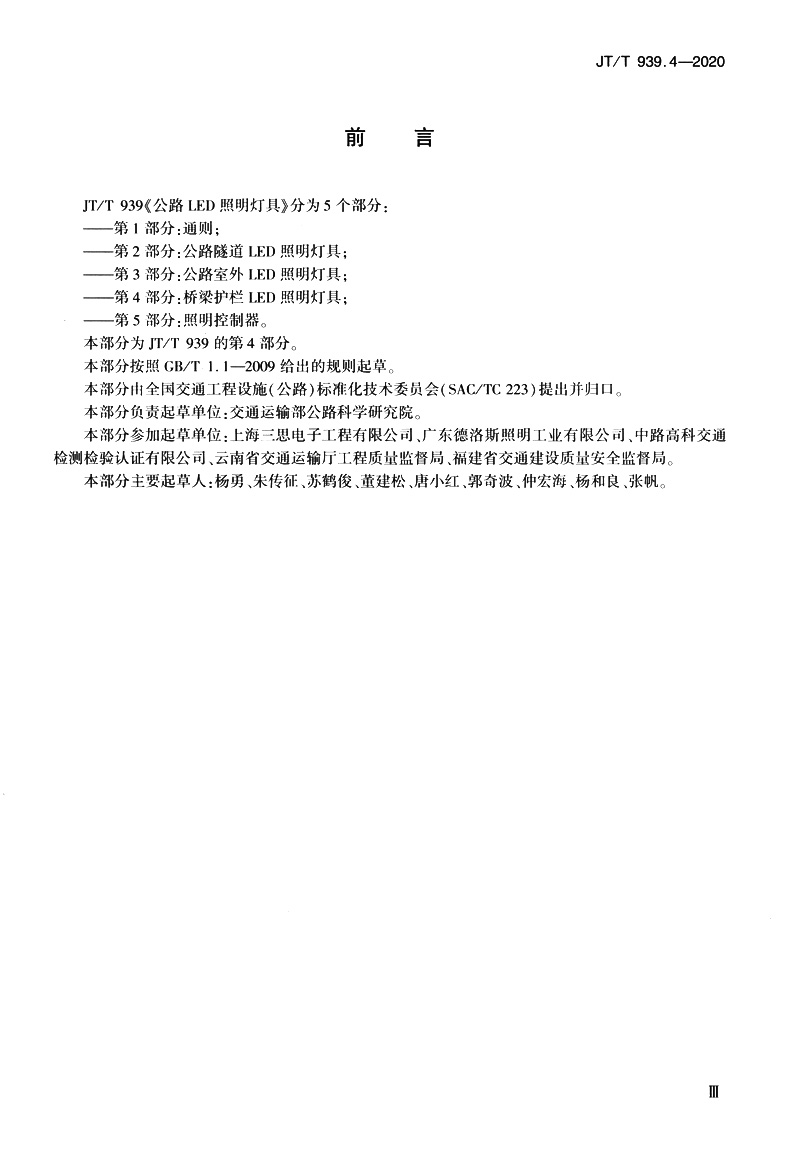 书名:公路LED照明灯具 第4部分:桥梁护栏LED照明灯具(JT/T 939.4—2020)