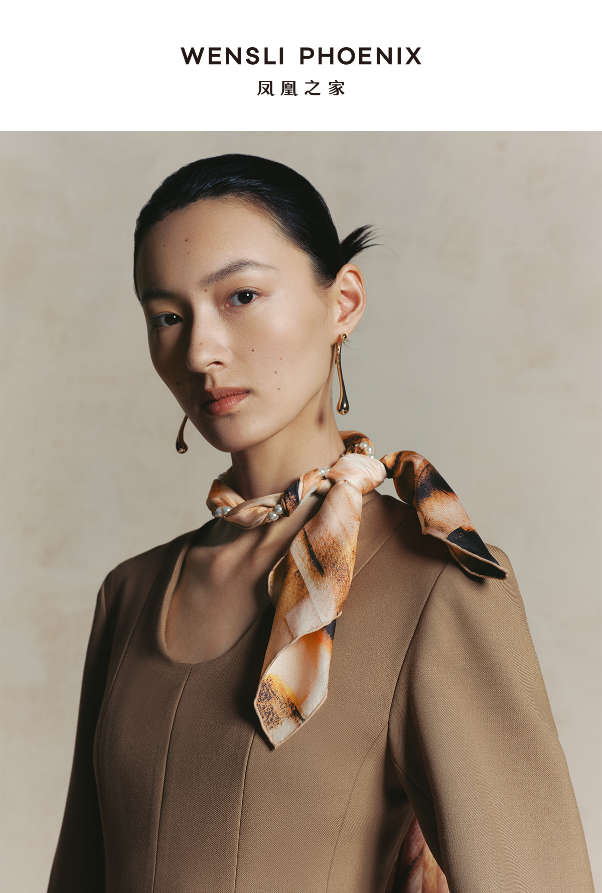 凤凰之家“浮光映城”75厘米双面印花中方巾