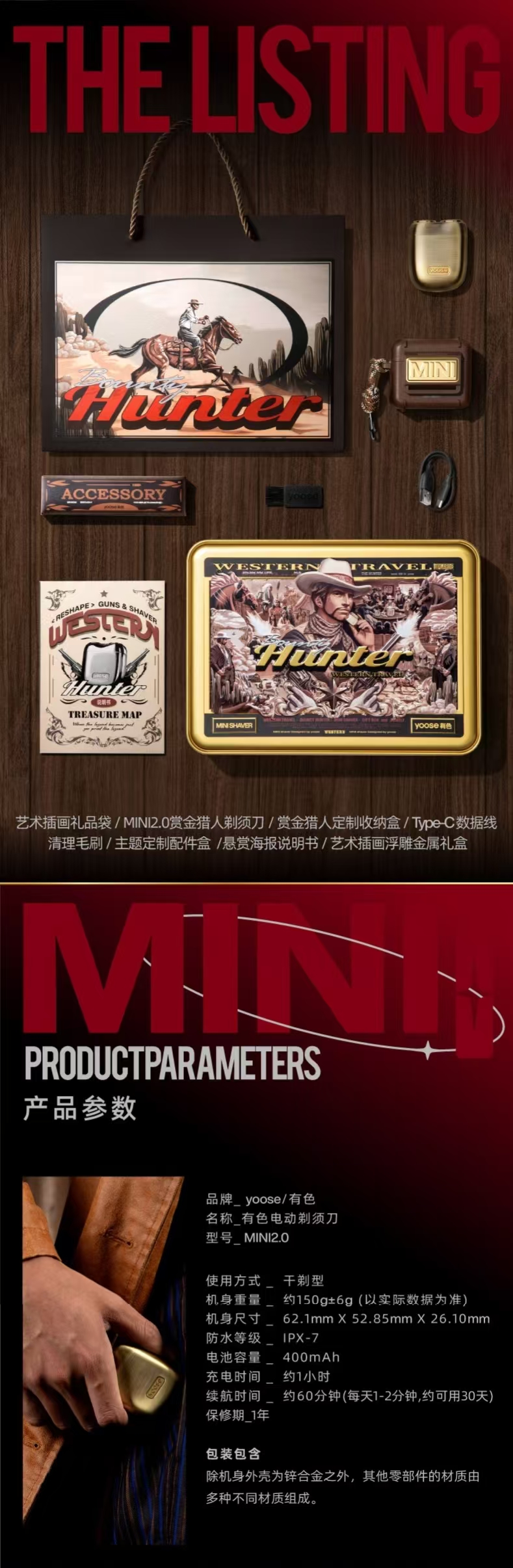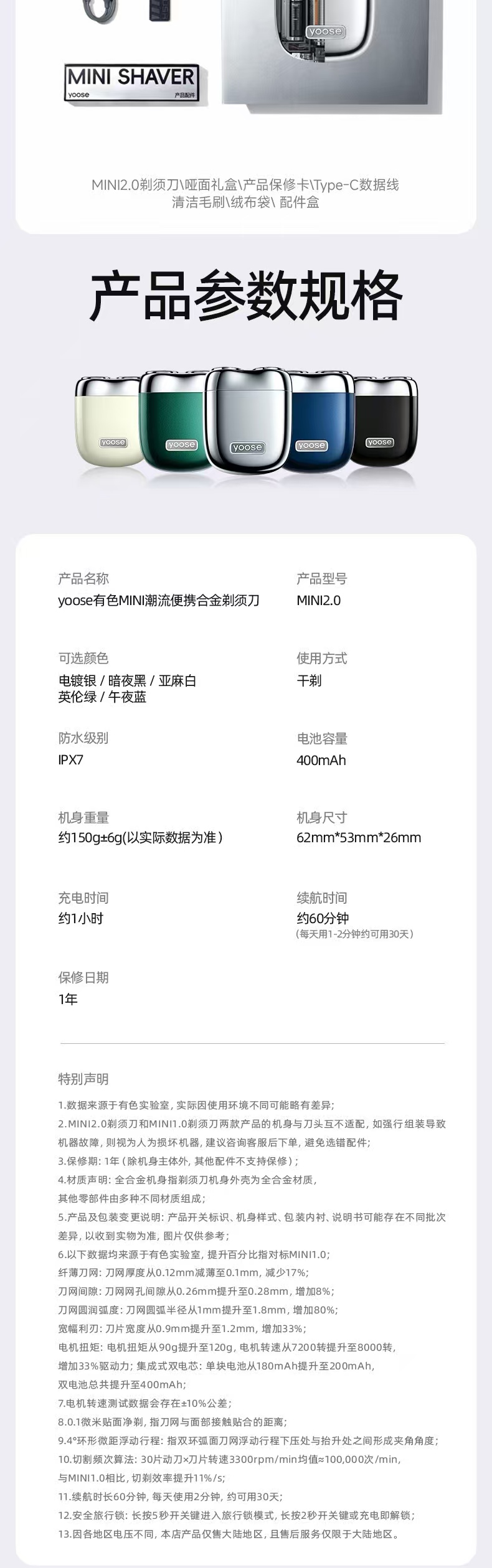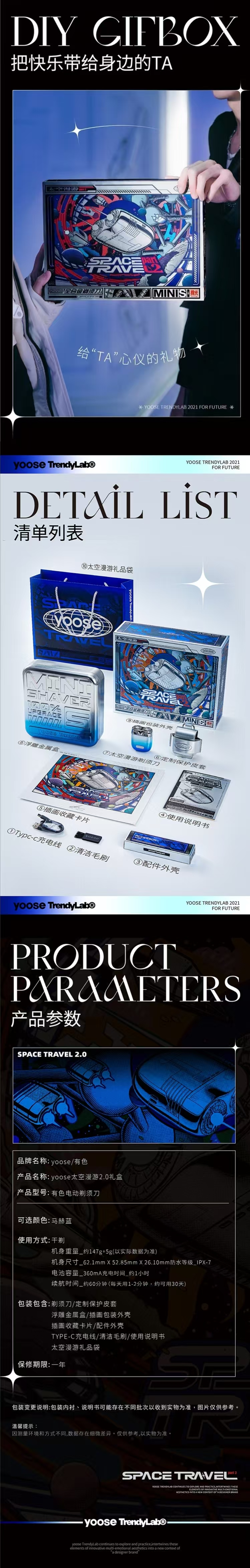 [王一博同款]yoose有色剃须刀电动便携刮胡刀送男友礼物