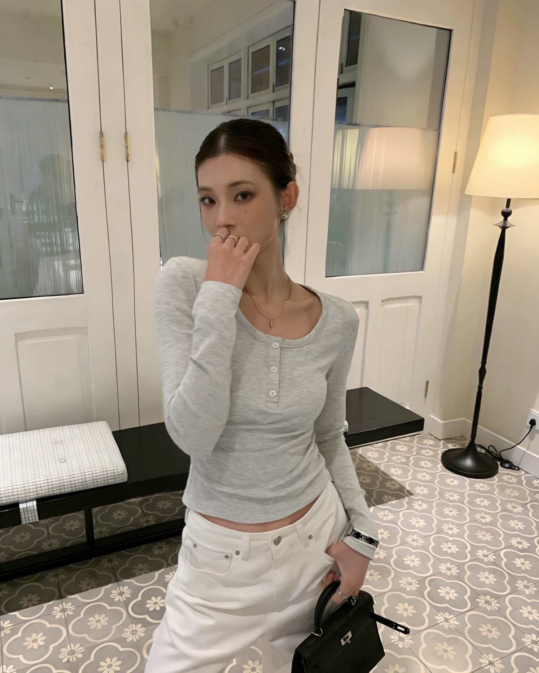 圆领纽扣长袖上衣-纪念日百货门店同款169243260