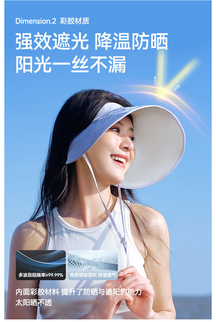 伯希和防晒帽女户外防紫外线彩胶大帽檐空顶帽可折叠全脸遮阳帽16423407