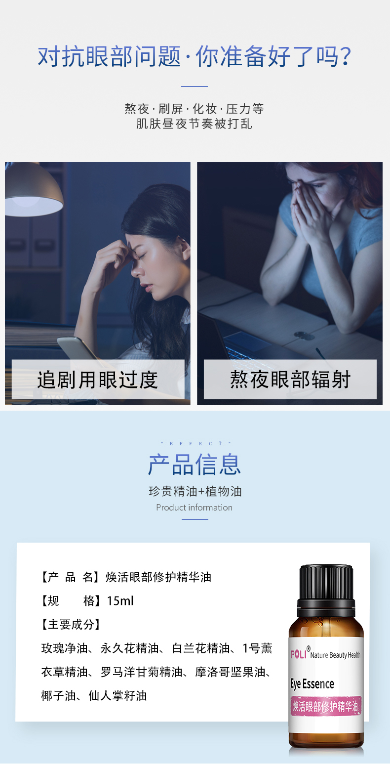 玫瑰紧致焕活眼部修护复方精华油原料 按摩复方精油批发 面部护理精油