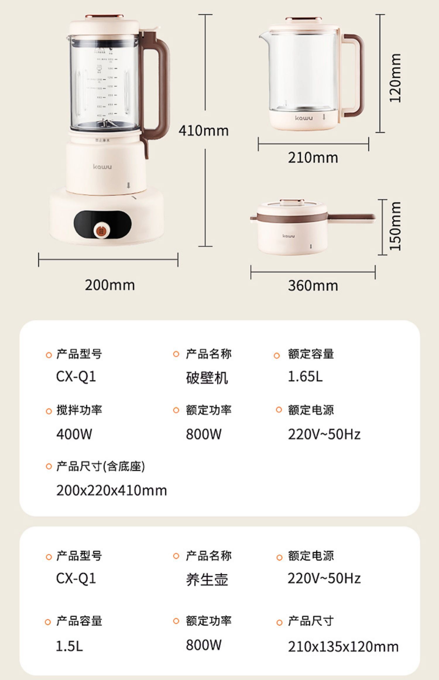 【卡屋三合一破壁机】日本kawu卡屋三合一破壁机家用豆浆机全自动免煮新款电煮锅火锅养生壶