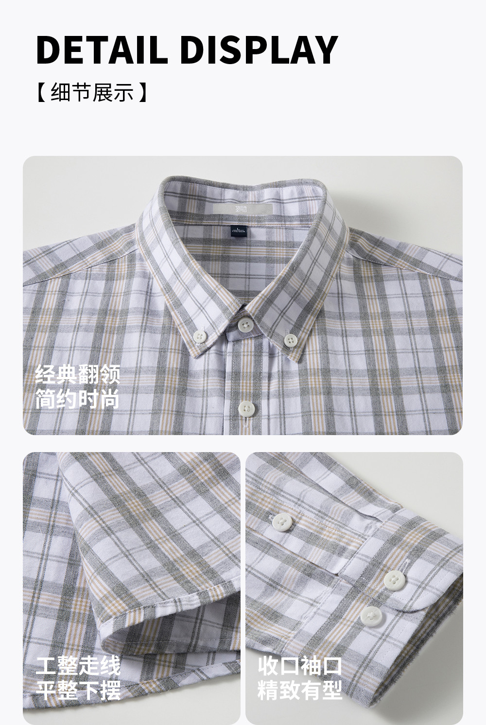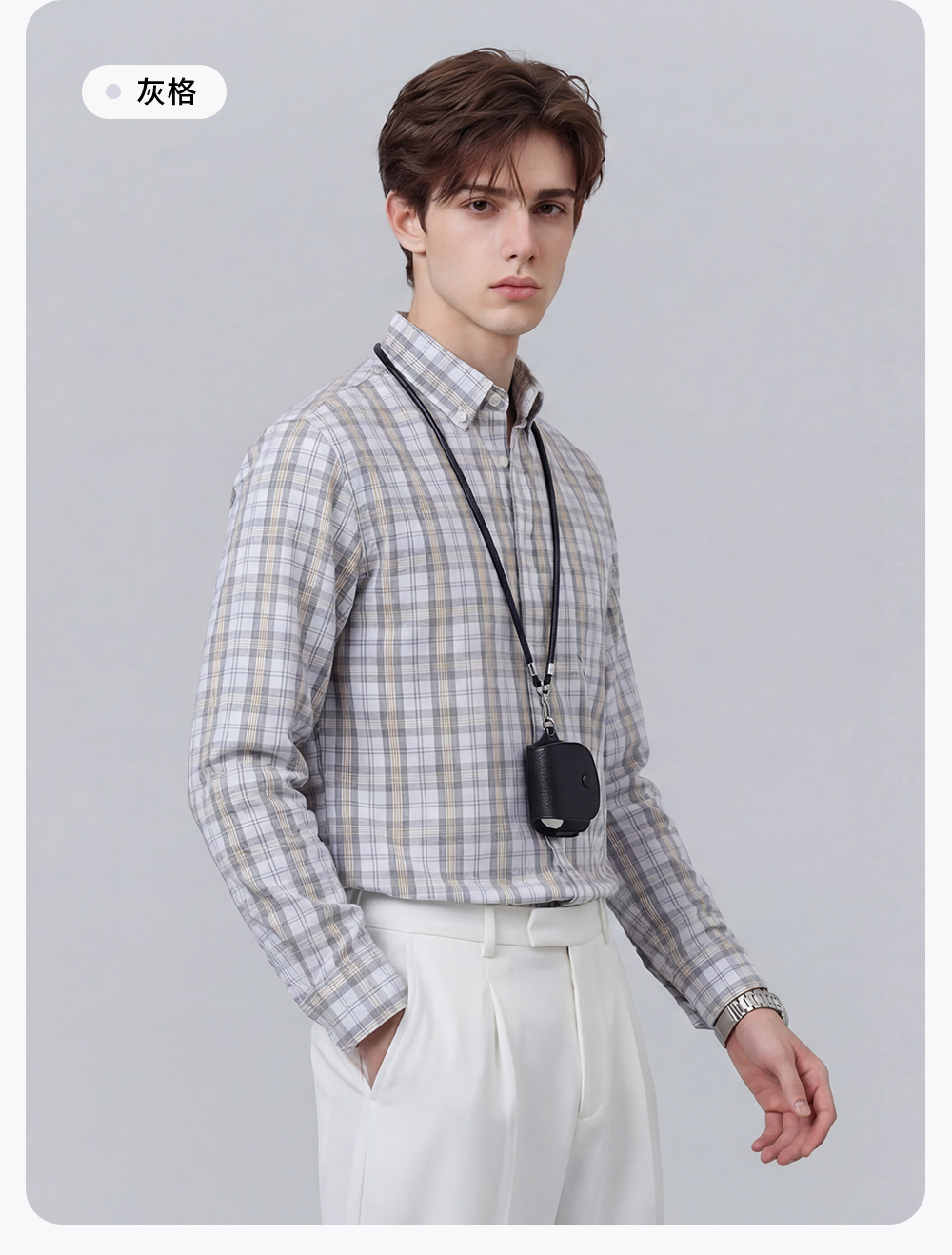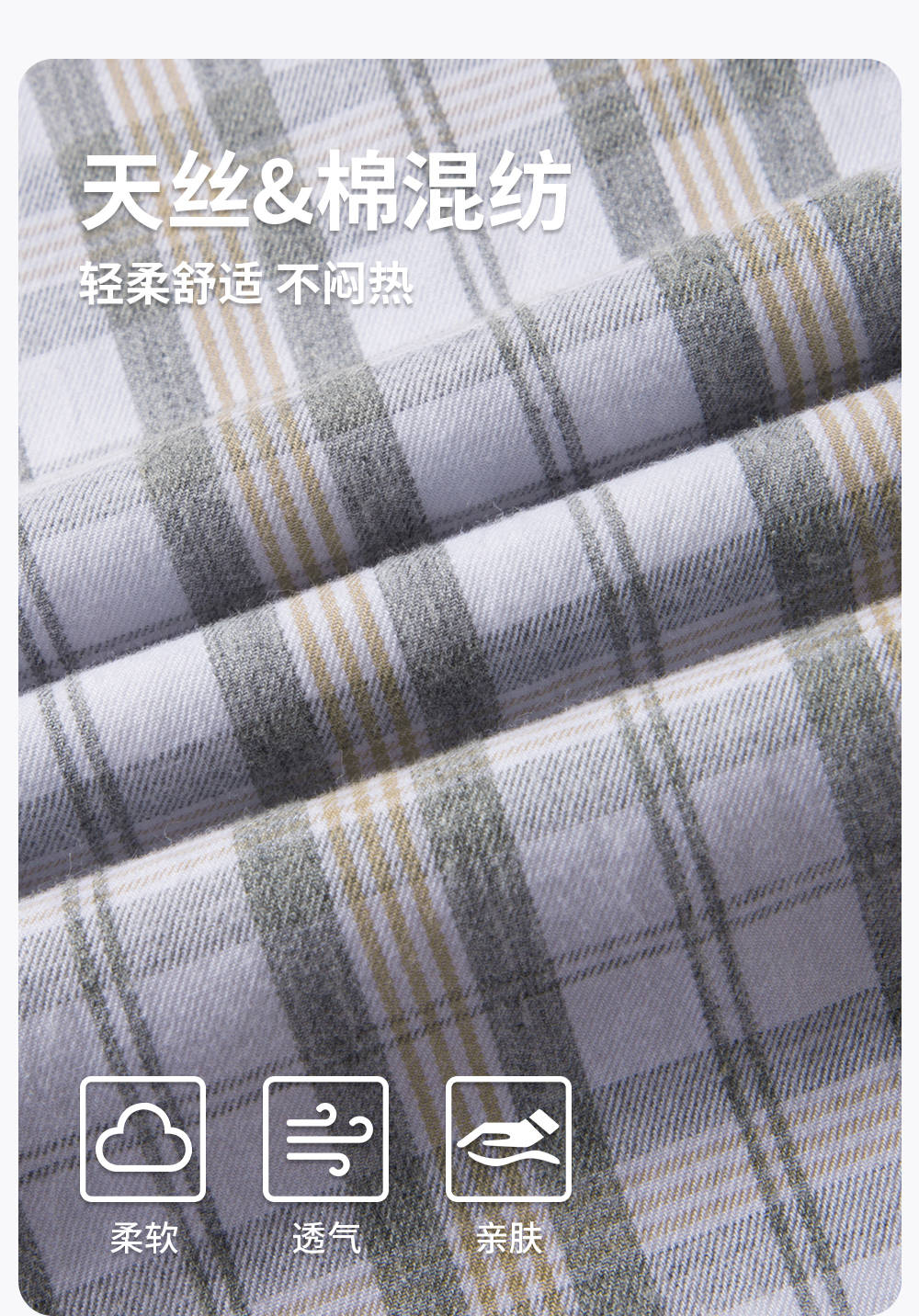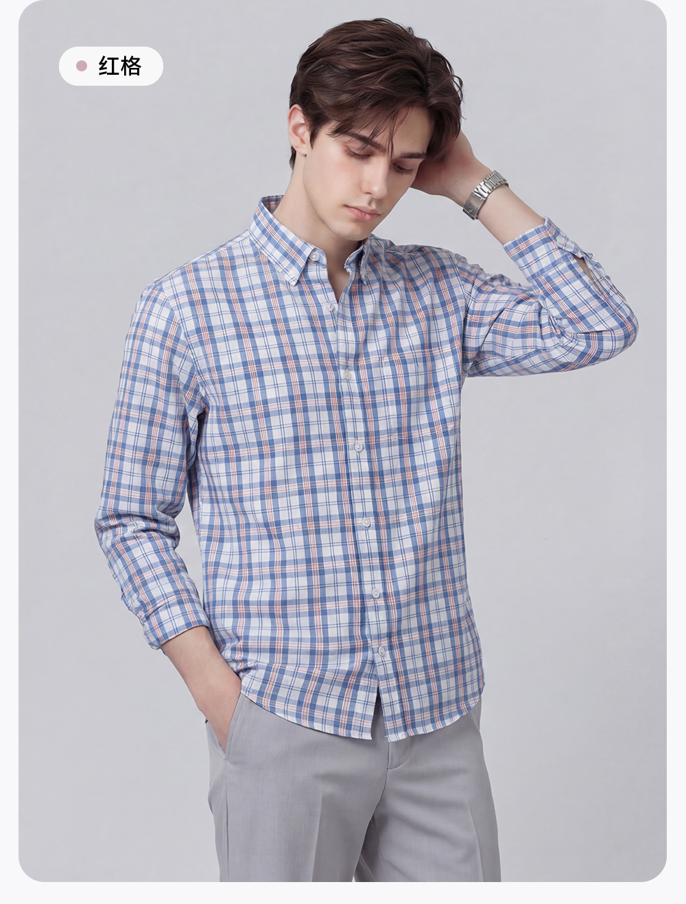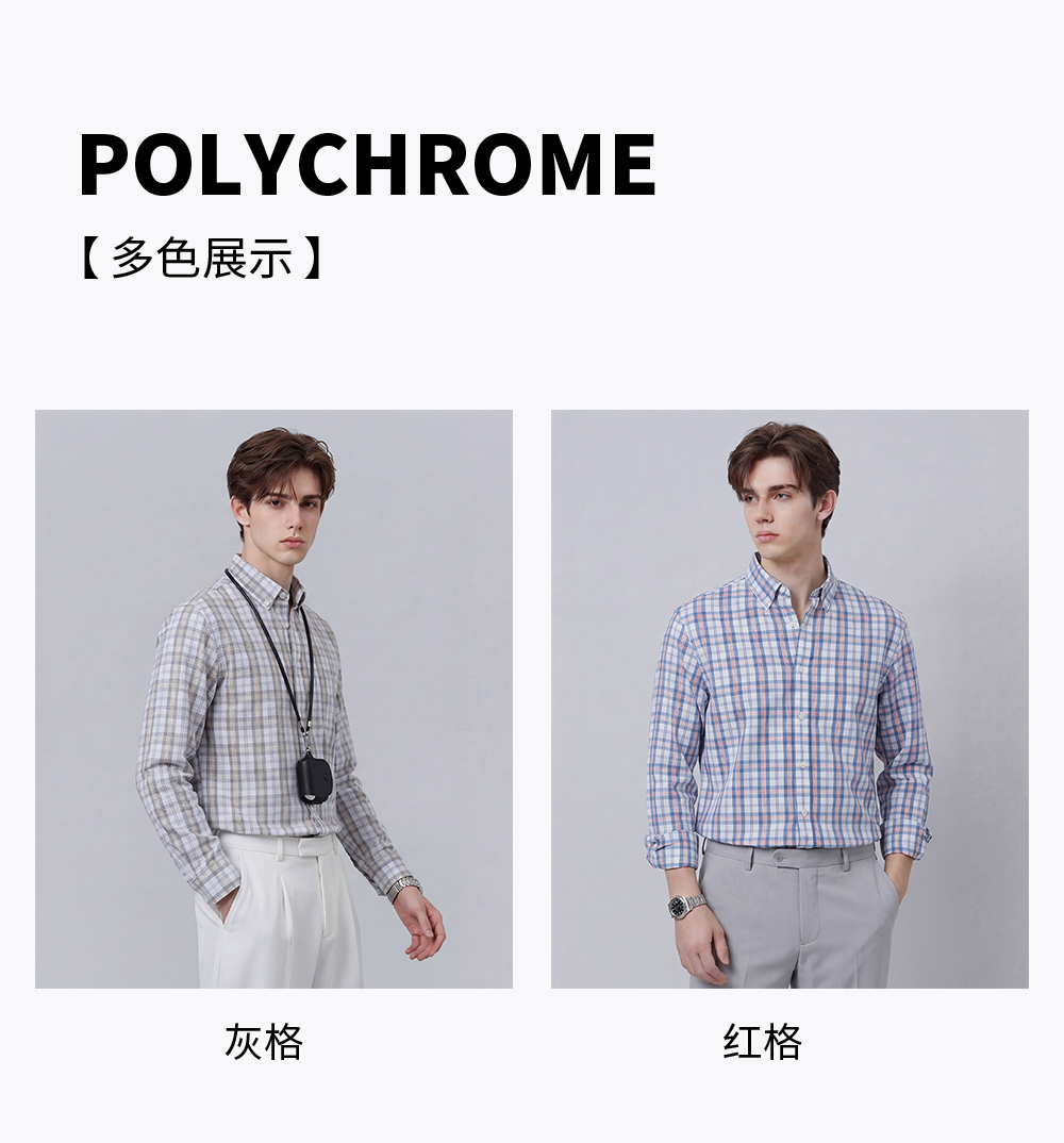 【含棉】圣得西男士衬衫长袖2026新款春季亲肤透气薄款格子上衣