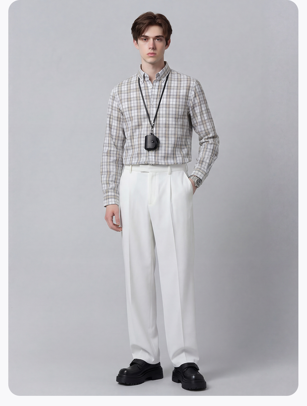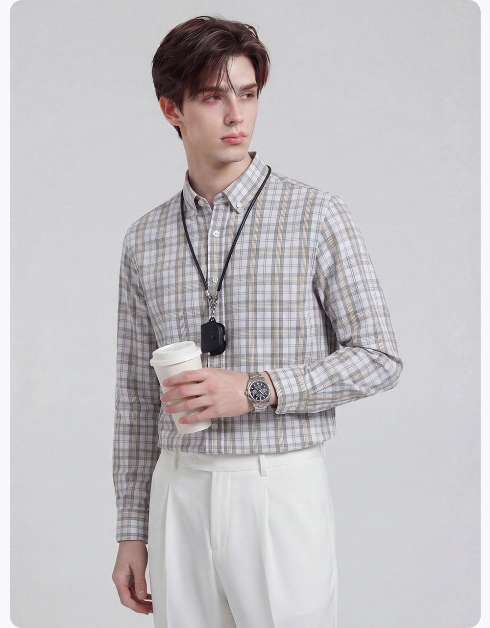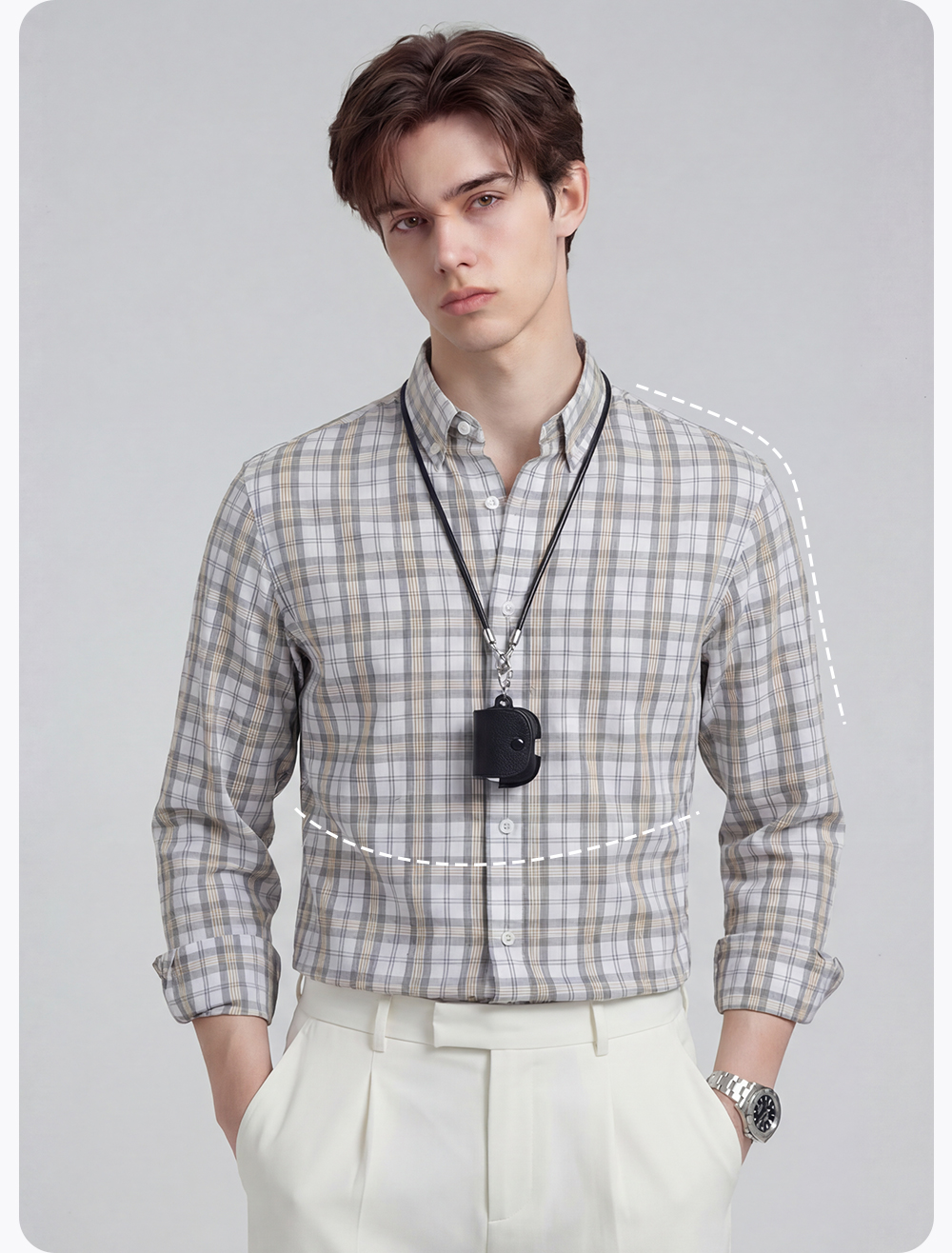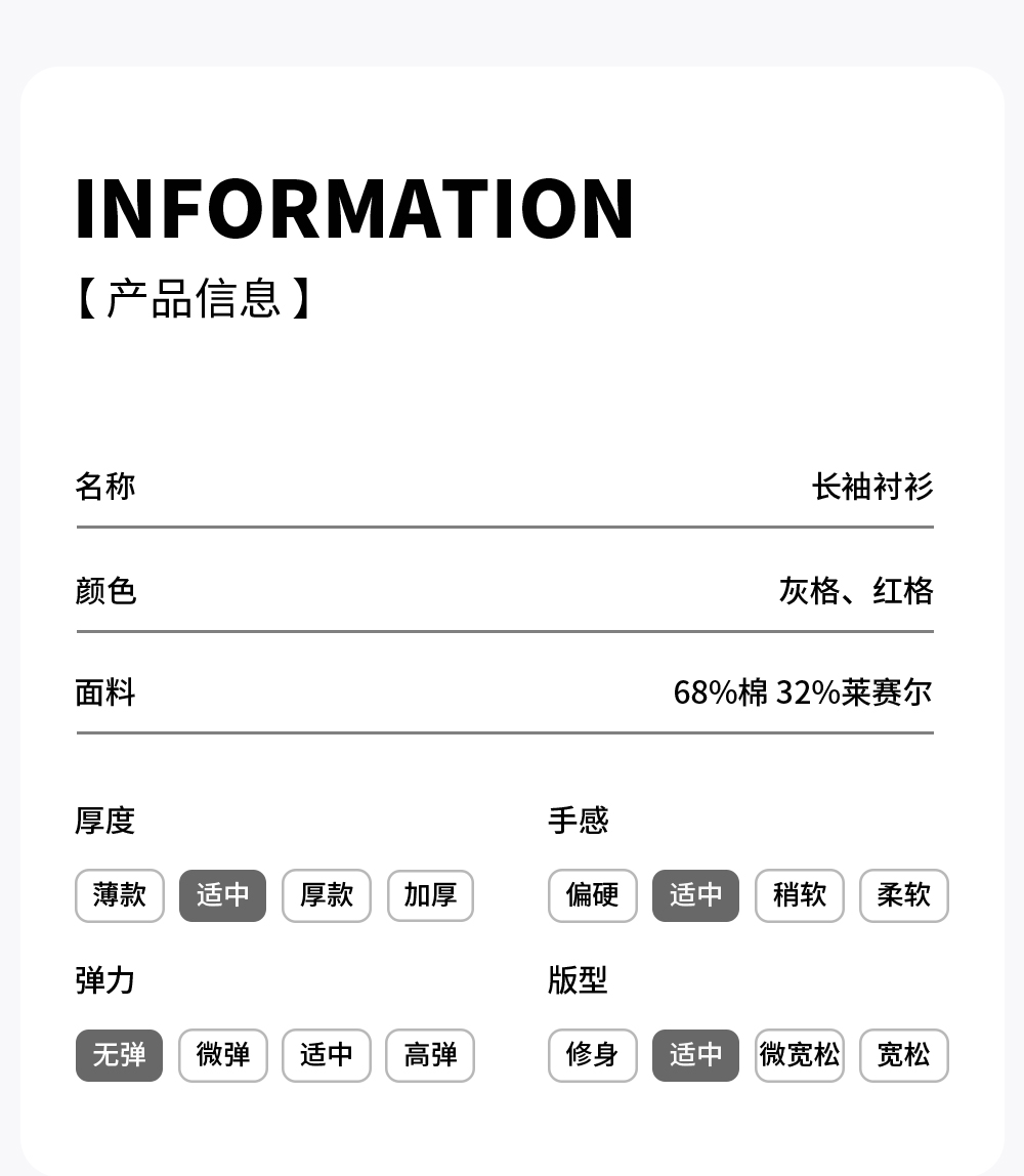 【含棉】圣得西男士衬衫长袖2026新款春季亲肤透气薄款格子上衣