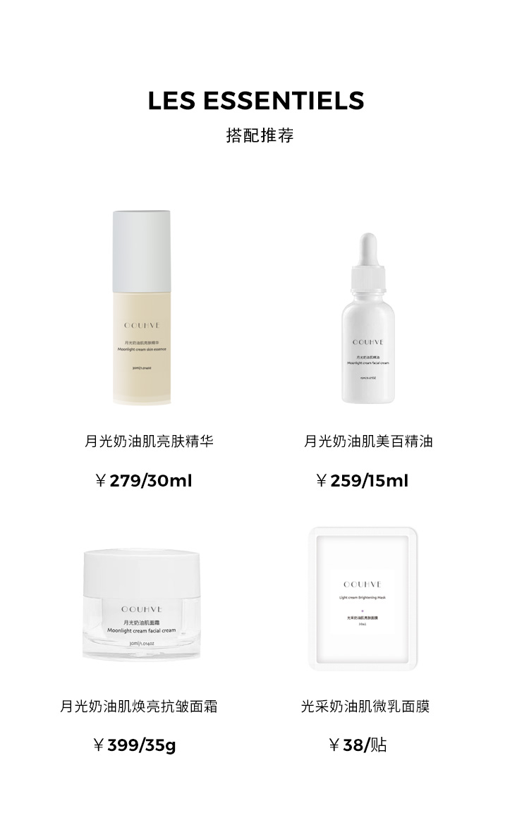 包括:面膜、精华、护肤油、面霜