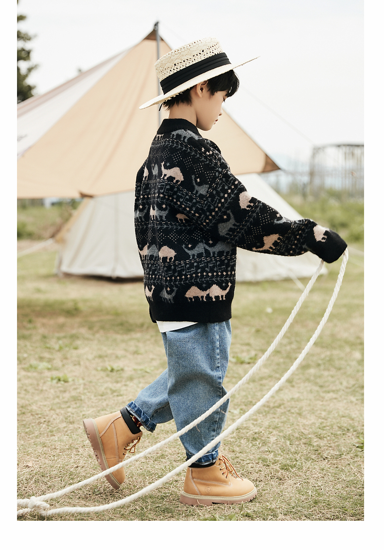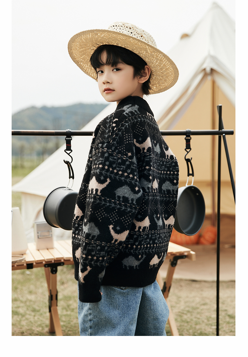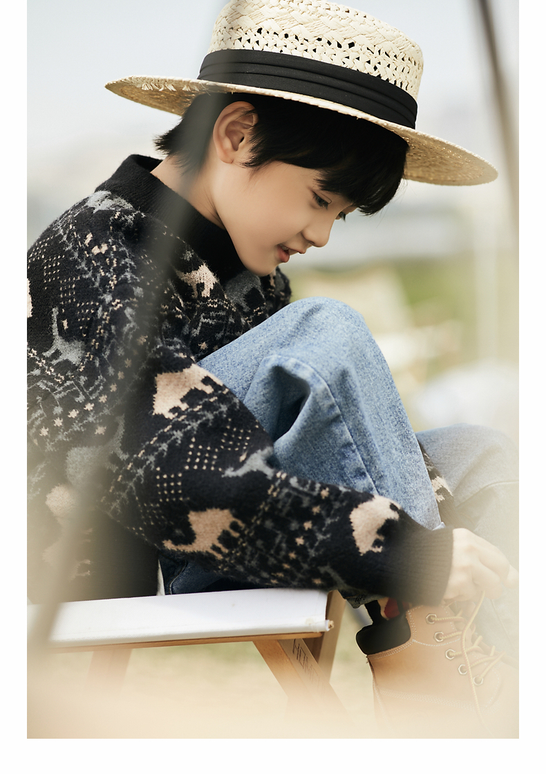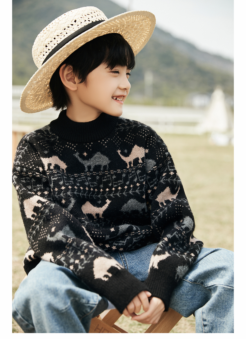 【宠粉专享团购价89.9元】多多家儿童毛衣秋冬装新款男童上衣半高领黑色套头针织衫韩版百搭1142
