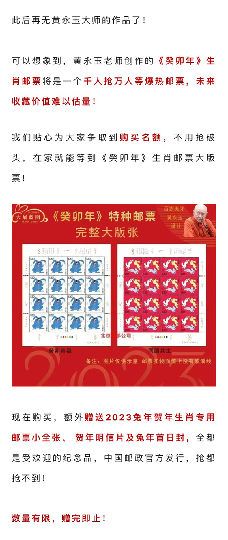 【72小时内发货】中国邮政《癸卯年》兔年生肖邮票大版票!“猴票之父”黄永玉的封山之作!