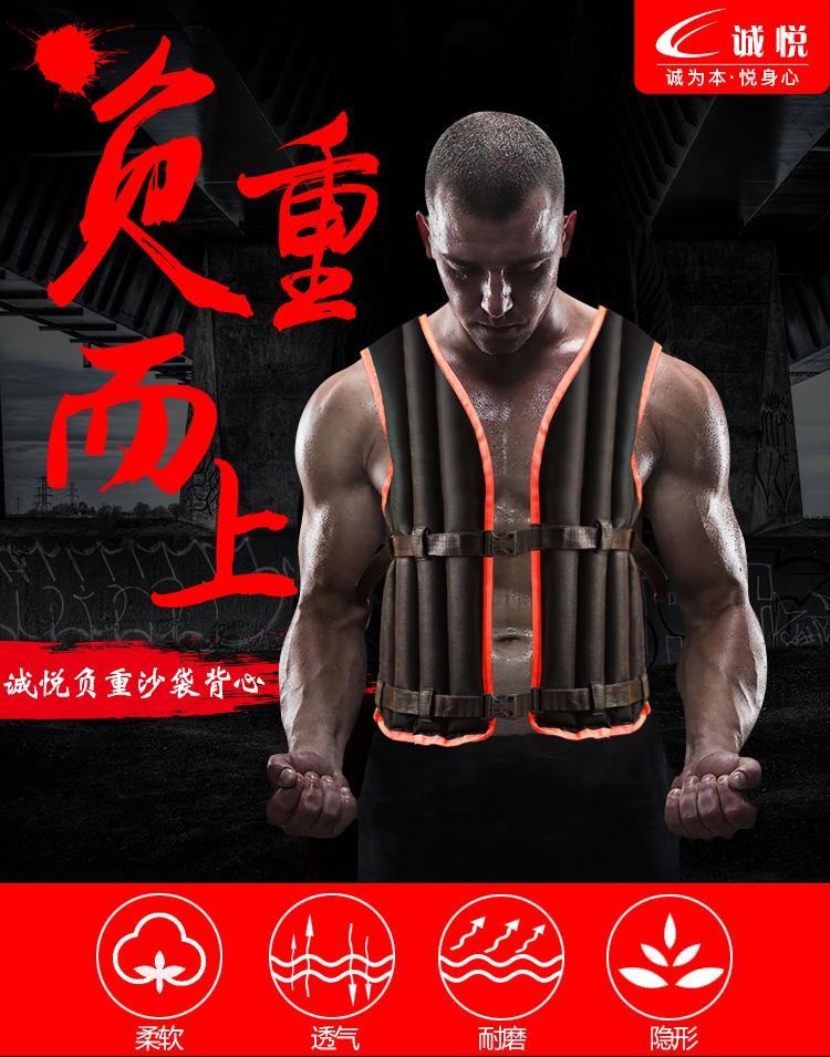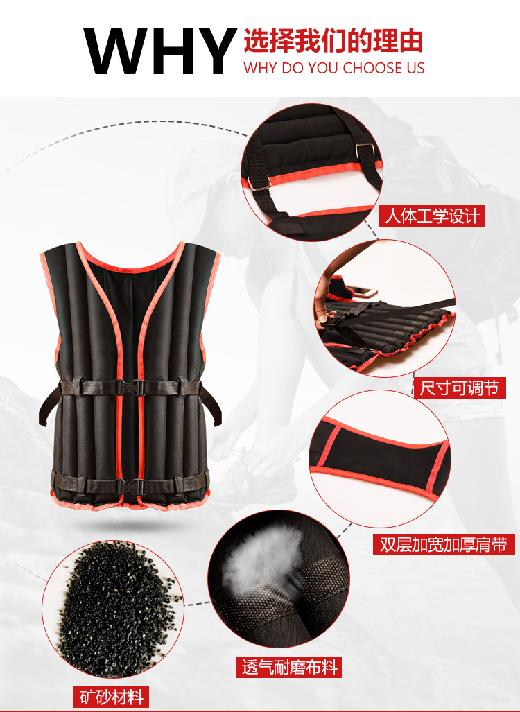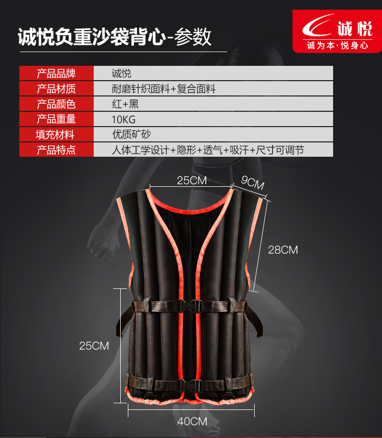 诚悦负重沙袋背心隐形薄款男女健身训练装备套装运动跑步沙衣黑色(红色包边)10kgCY-283