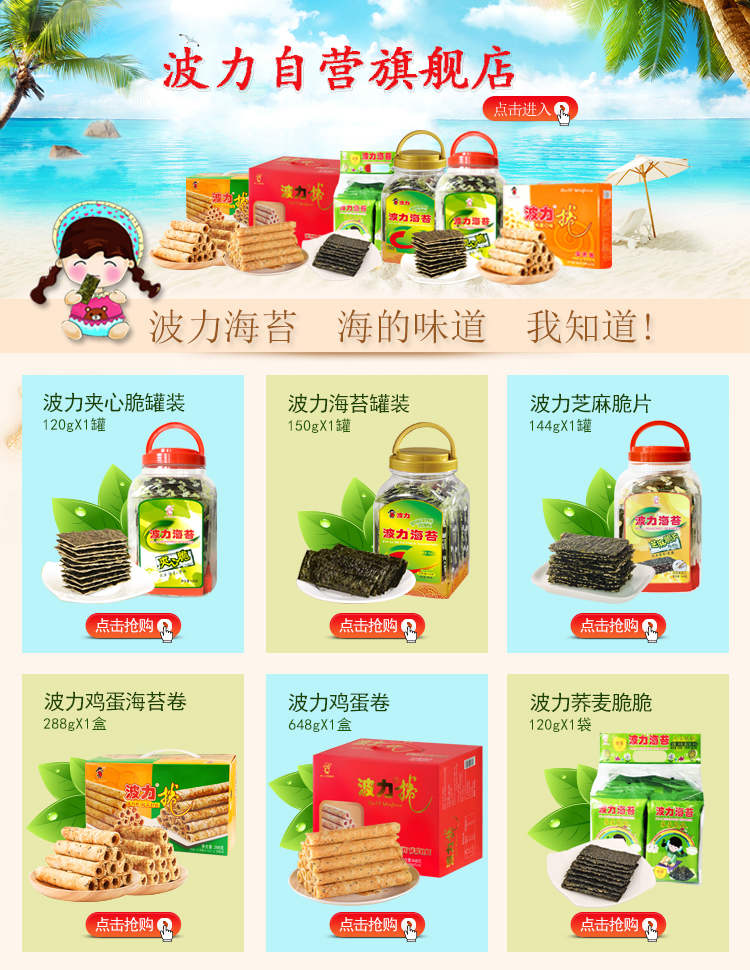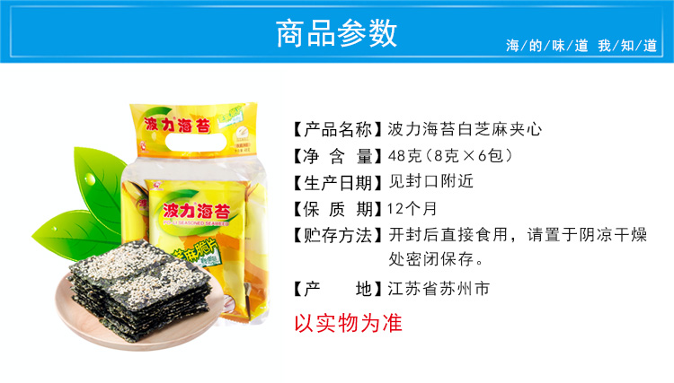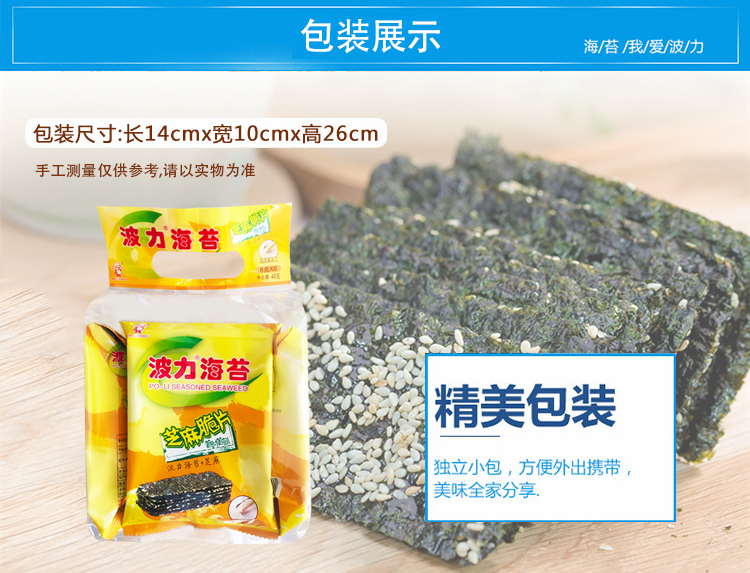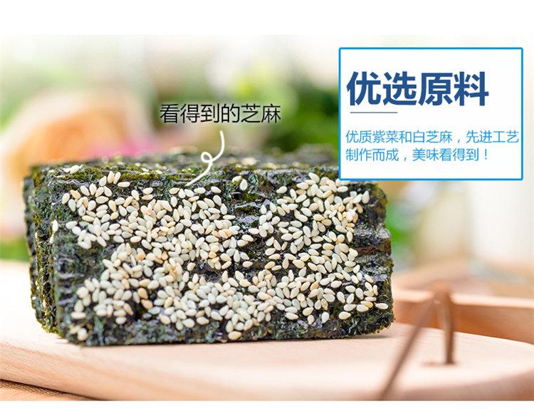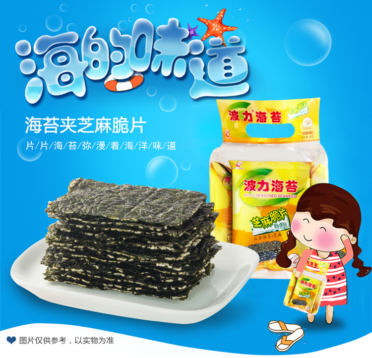 波力夹心海苔 休闲零食 紫菜脆片 芝麻夹心脆48克(8克*6包) 儿童零食