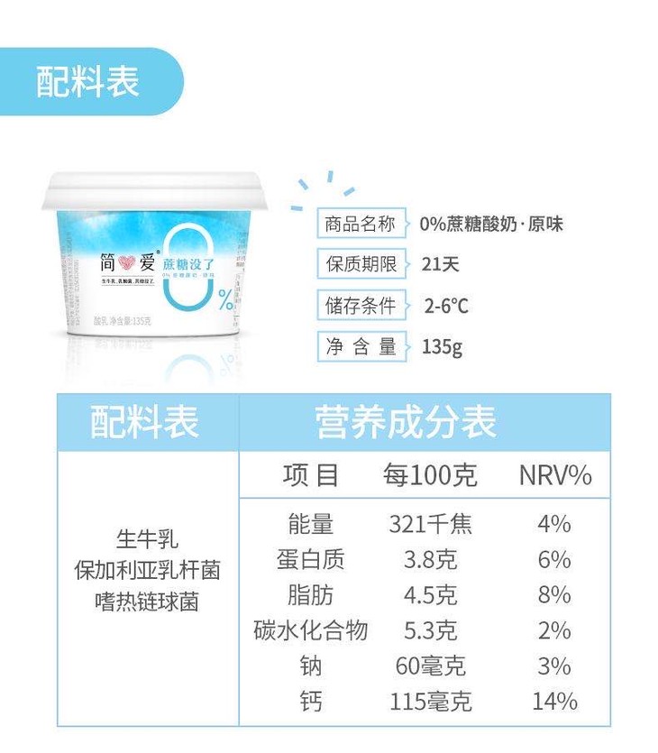 (超值)【每周一、二冷链直供】简爱·0%蔗糖裸酸奶 0蔗糖0添加 适合健身代餐孕妇儿童 135g 【新老包装随机发货 生鲜产品无质量问题不退不换】